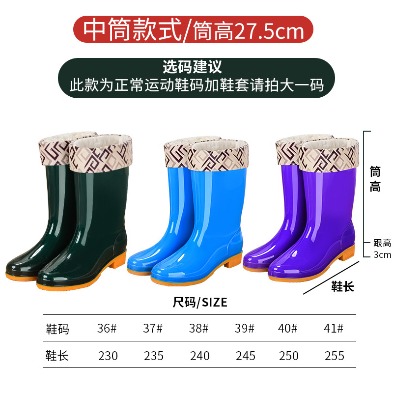 고층 4 계절 우화 여성용 장화 워터 부츠 비 슬립 워터 슈즈 기모 따뜻한 작업 고무 신발 오버 슈즈 노동 보호 신발 도매