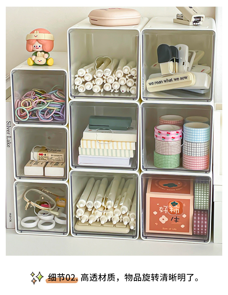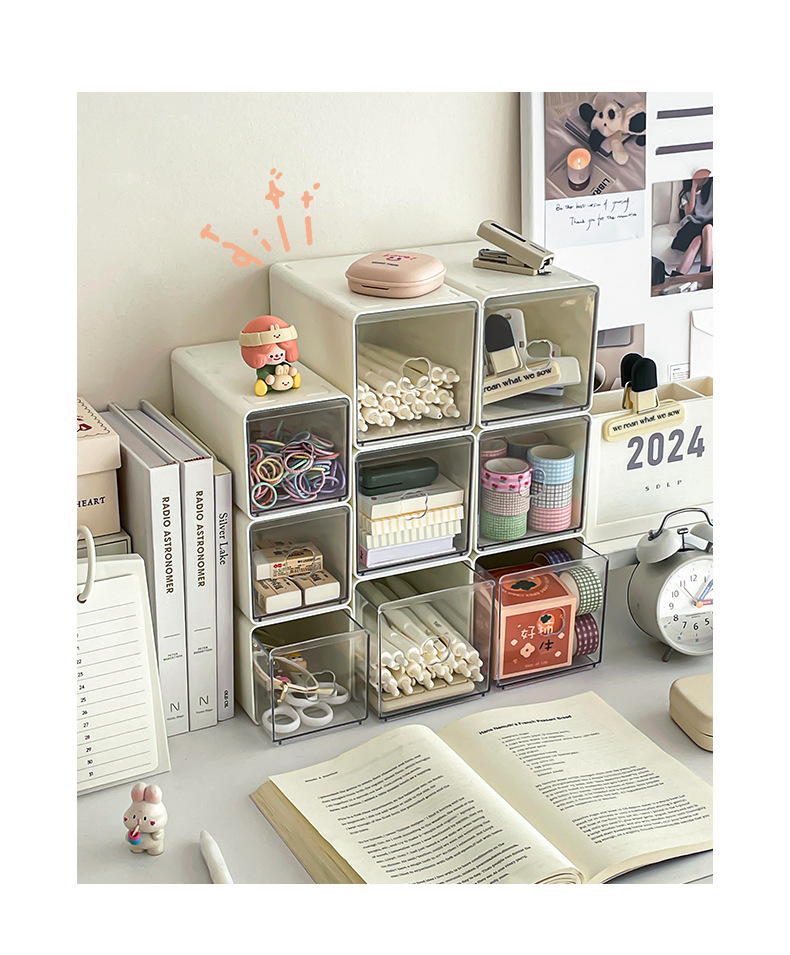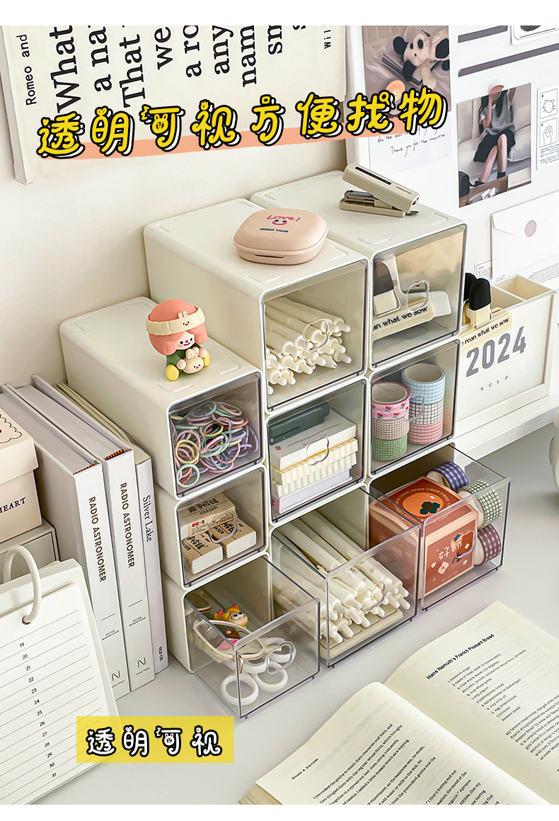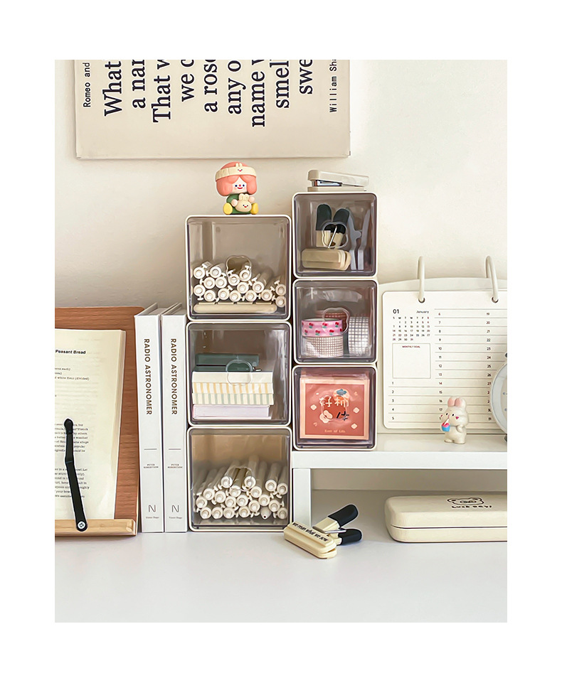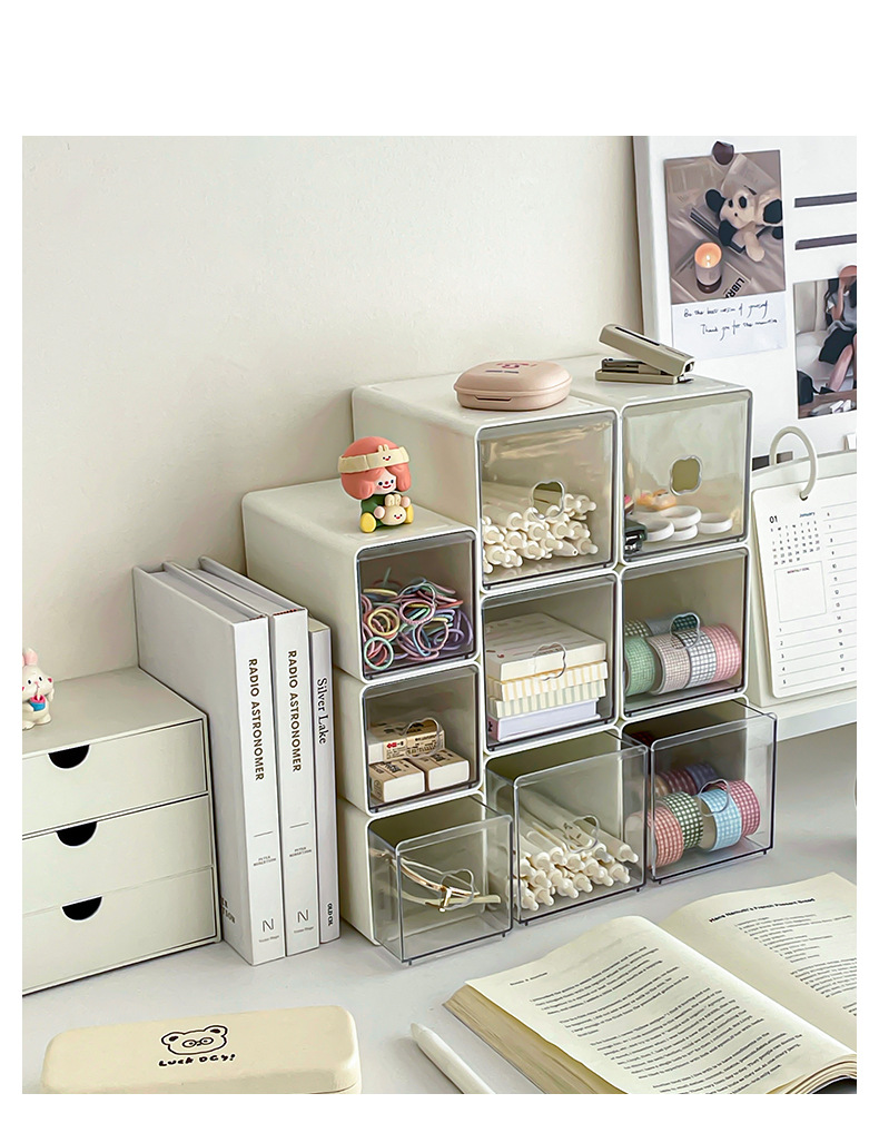 Yum 데스크탑 저장 상자 아크릴 서랍 형 투명 문구 학생 책상 간격 작은 물체 저장 유물스토어 가기