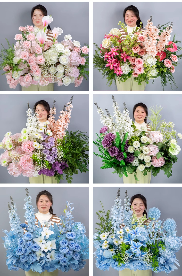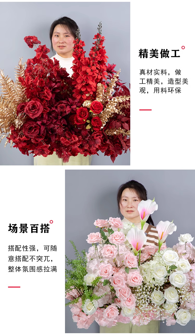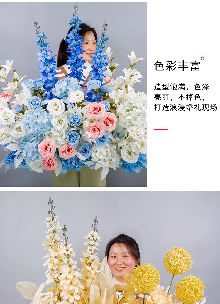 결혼식 꽃 배열 진한 베이지 결혼식 연회 꽃 배열 Luyin 결혼식 강당 무대 테이블 꽃 결혼식 꽃 배열 시뮬레이션 꽃 배열
