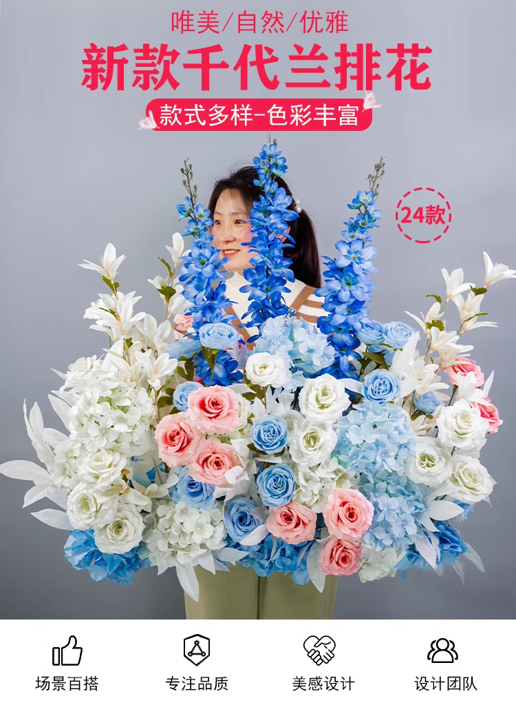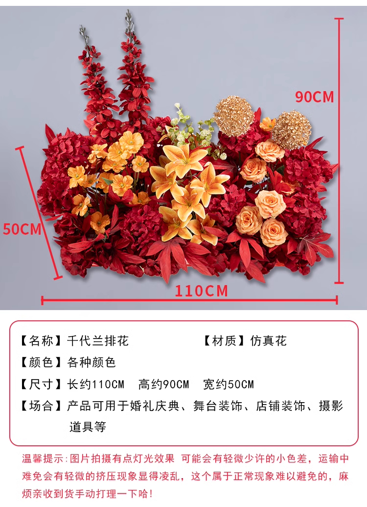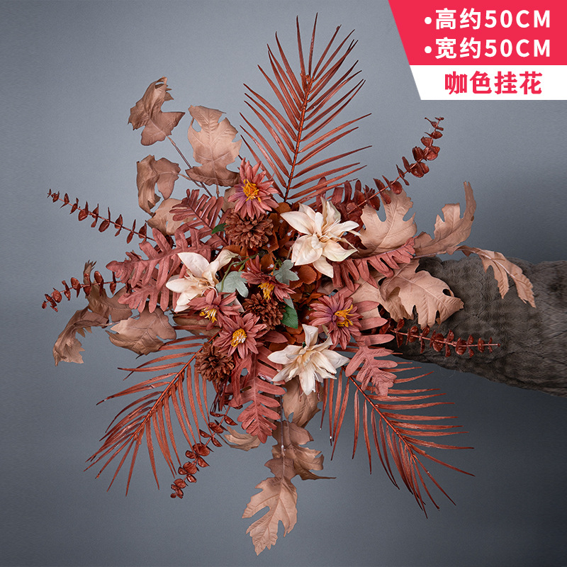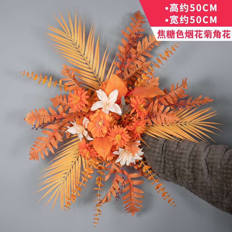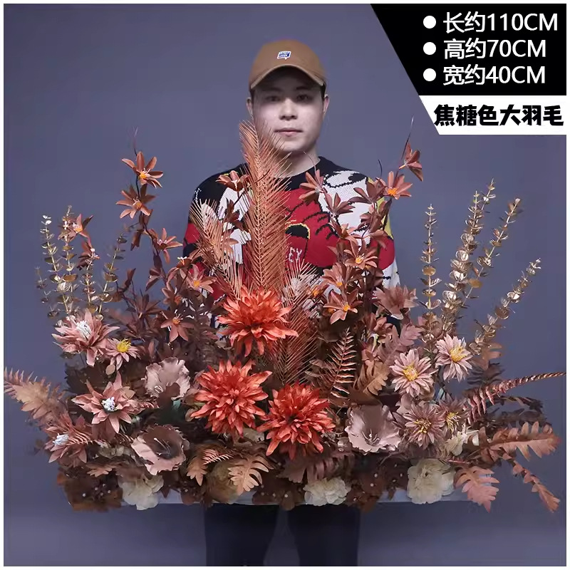 婚庆地排花焦糖色订婚宴花艺布置路引婚礼堂舞台台花婚庆排仿真花