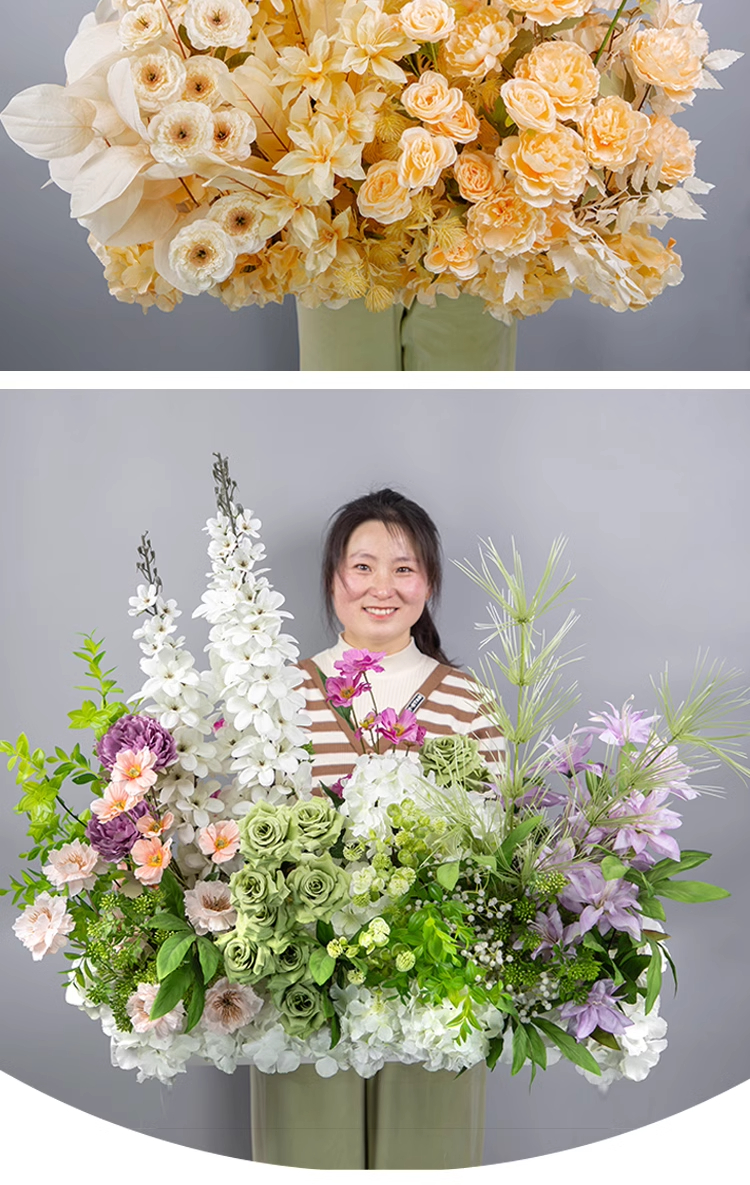 결혼식 꽃 배열 진한 베이지 결혼식 연회 꽃 배열 Luyin 결혼식 강당 무대 테이블 꽃 결혼식 꽃 배열 시뮬레이션 꽃 배열스토어 가기
