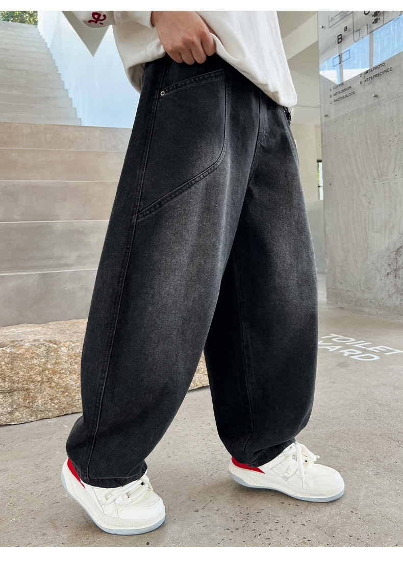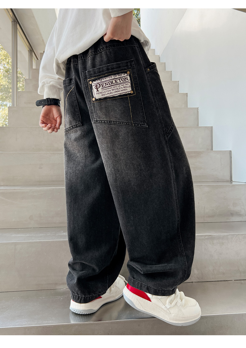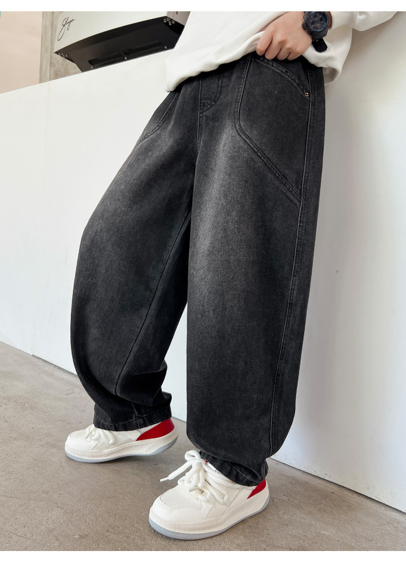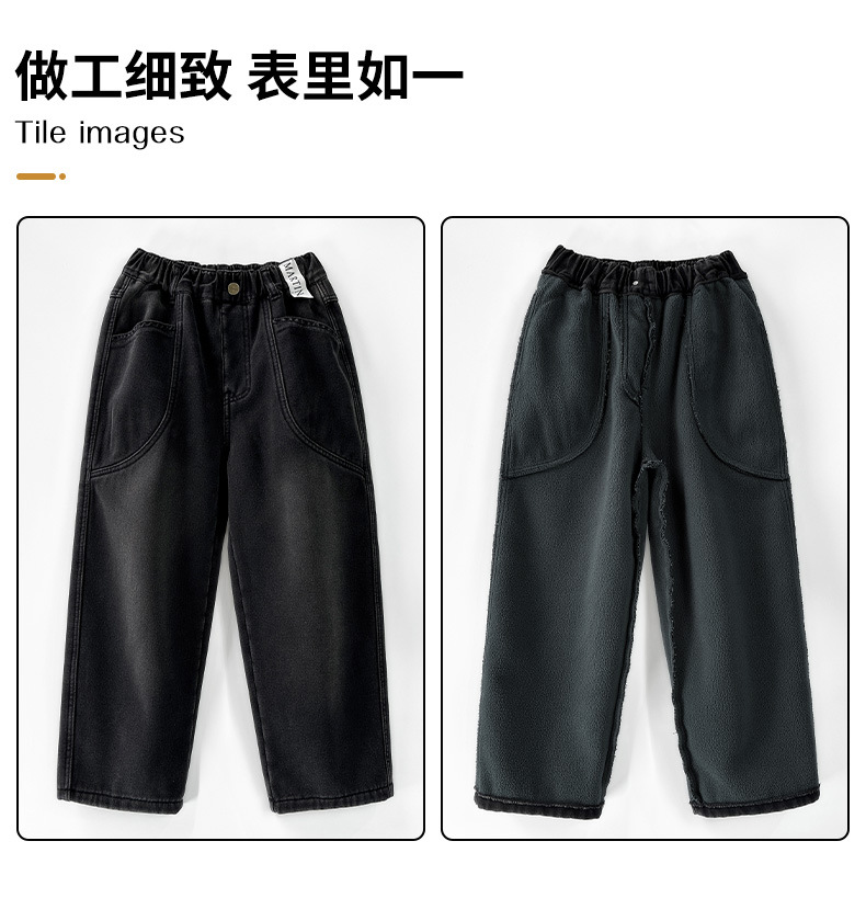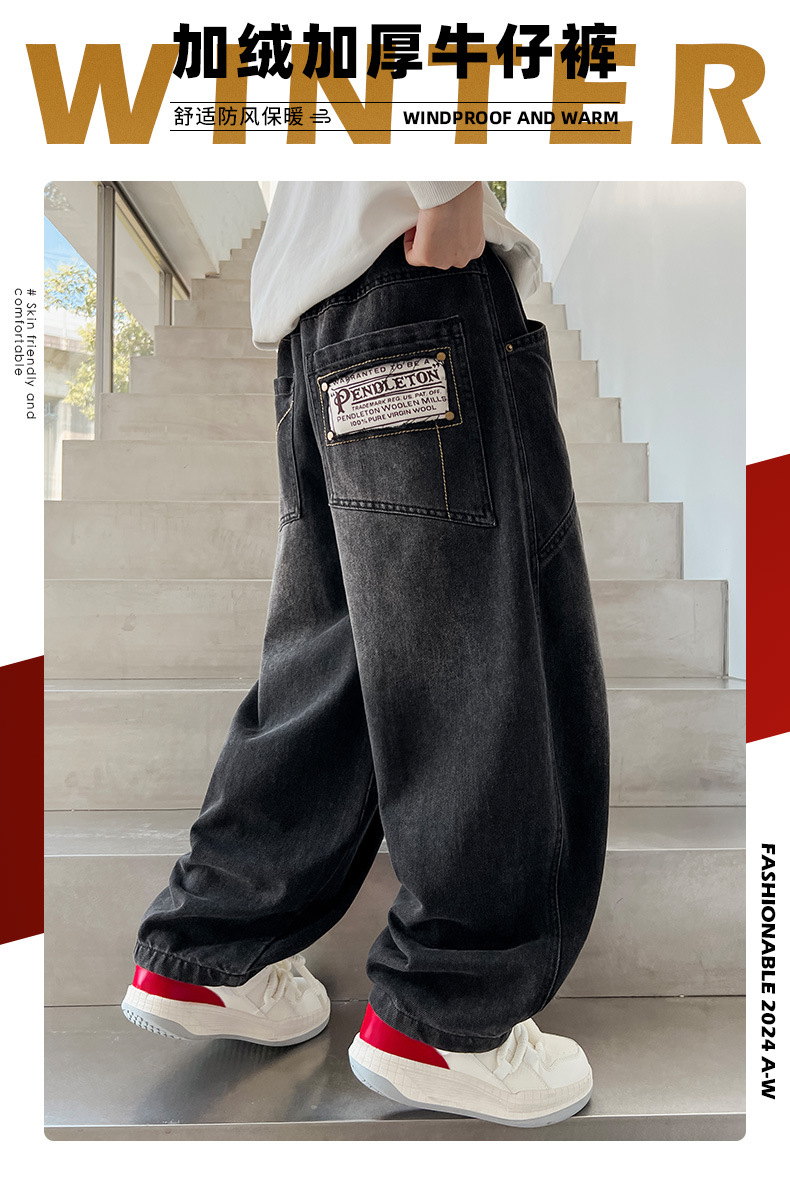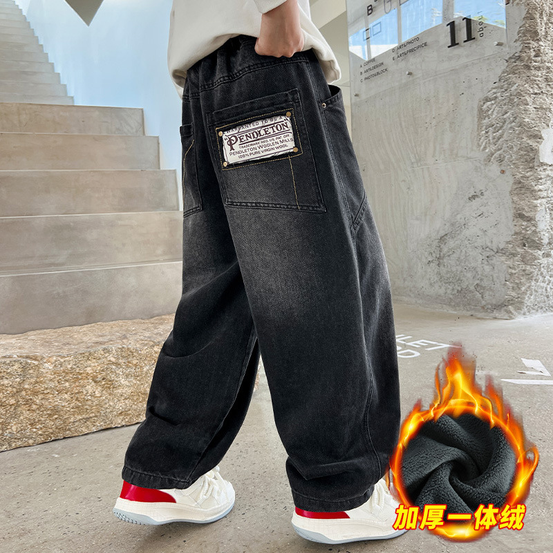 Z1305 원피스 벨벳 얼리 양 소년의 겨울 기모 느슨한 긴 바지 큰 소년의 청바지 유행 유행스토어 가기