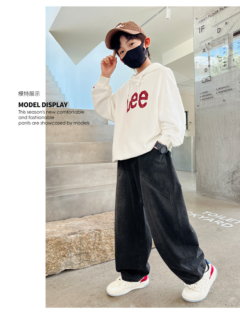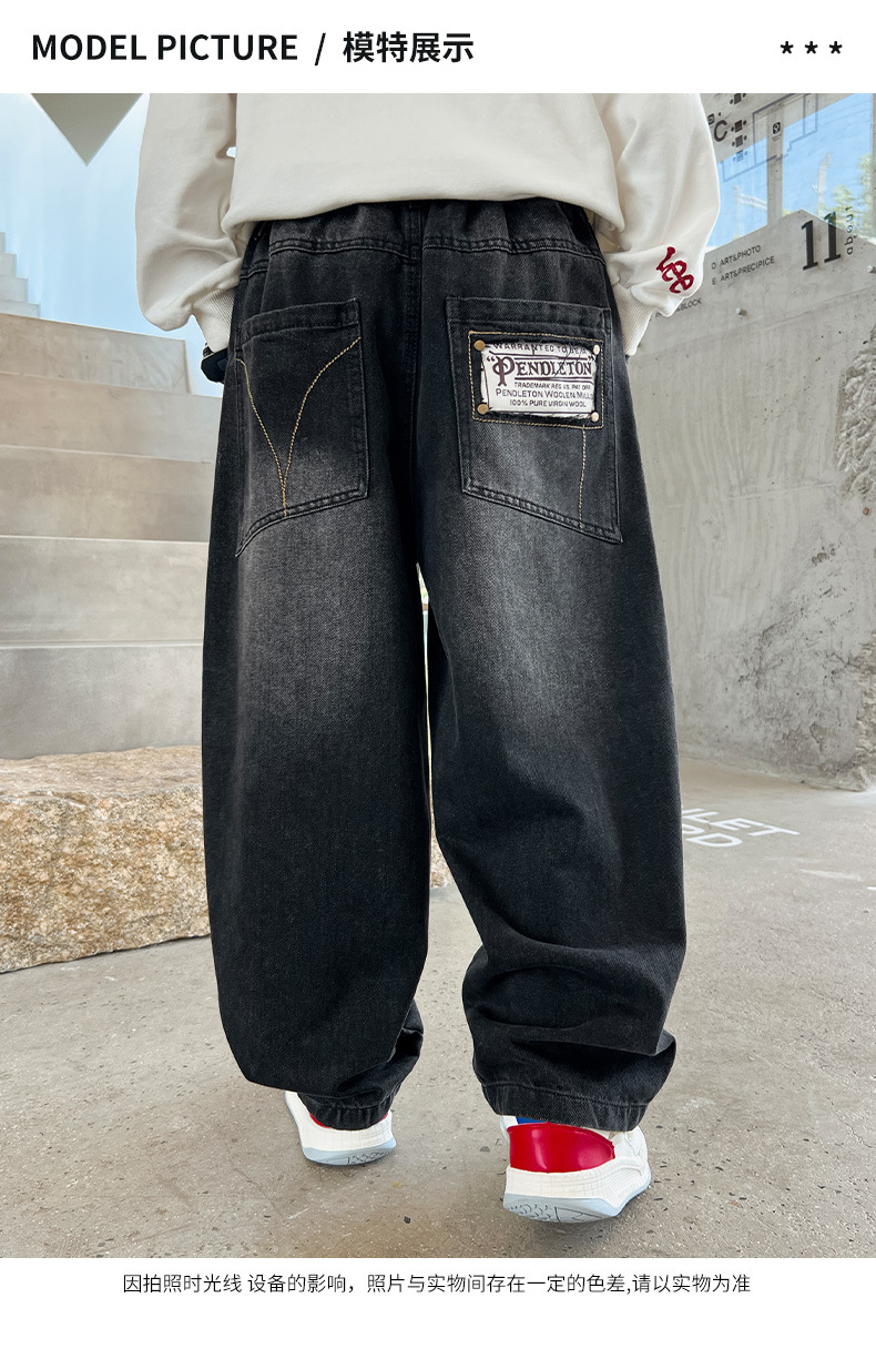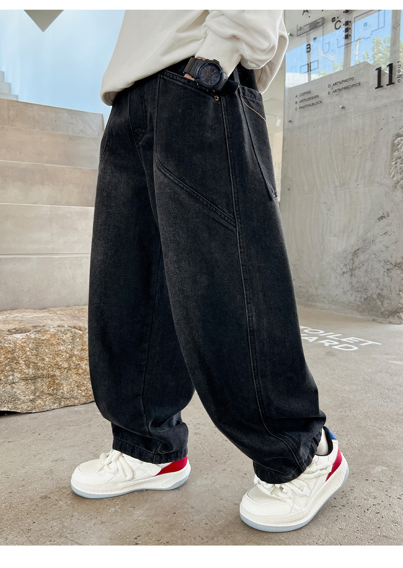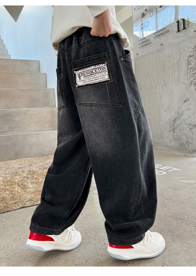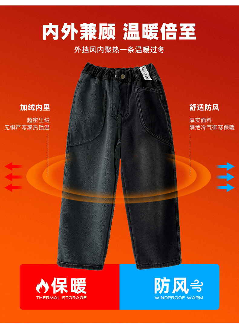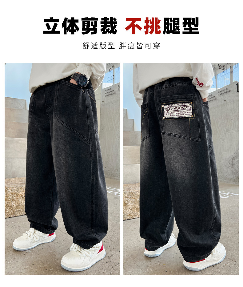 Z1305 원피스 벨벳 얼리 양 소년의 겨울 기모 느슨한 긴 바지 큰 소년의 청바지 유행 유행스토어 가기