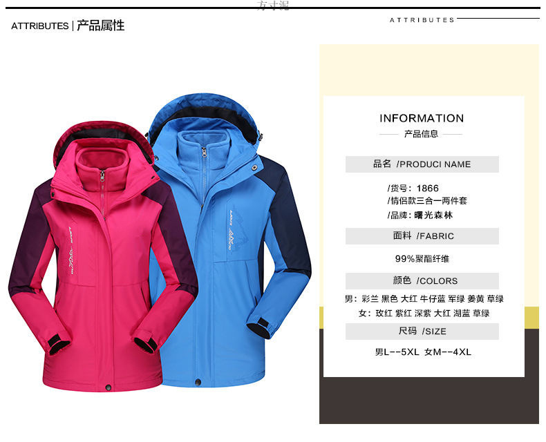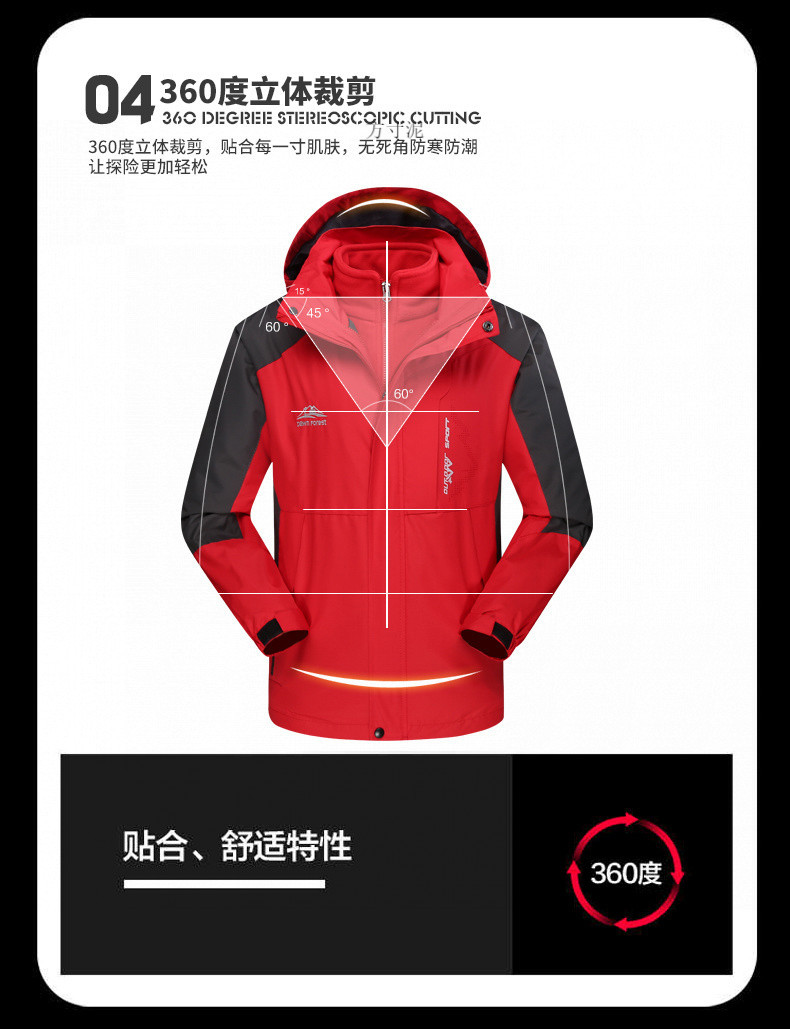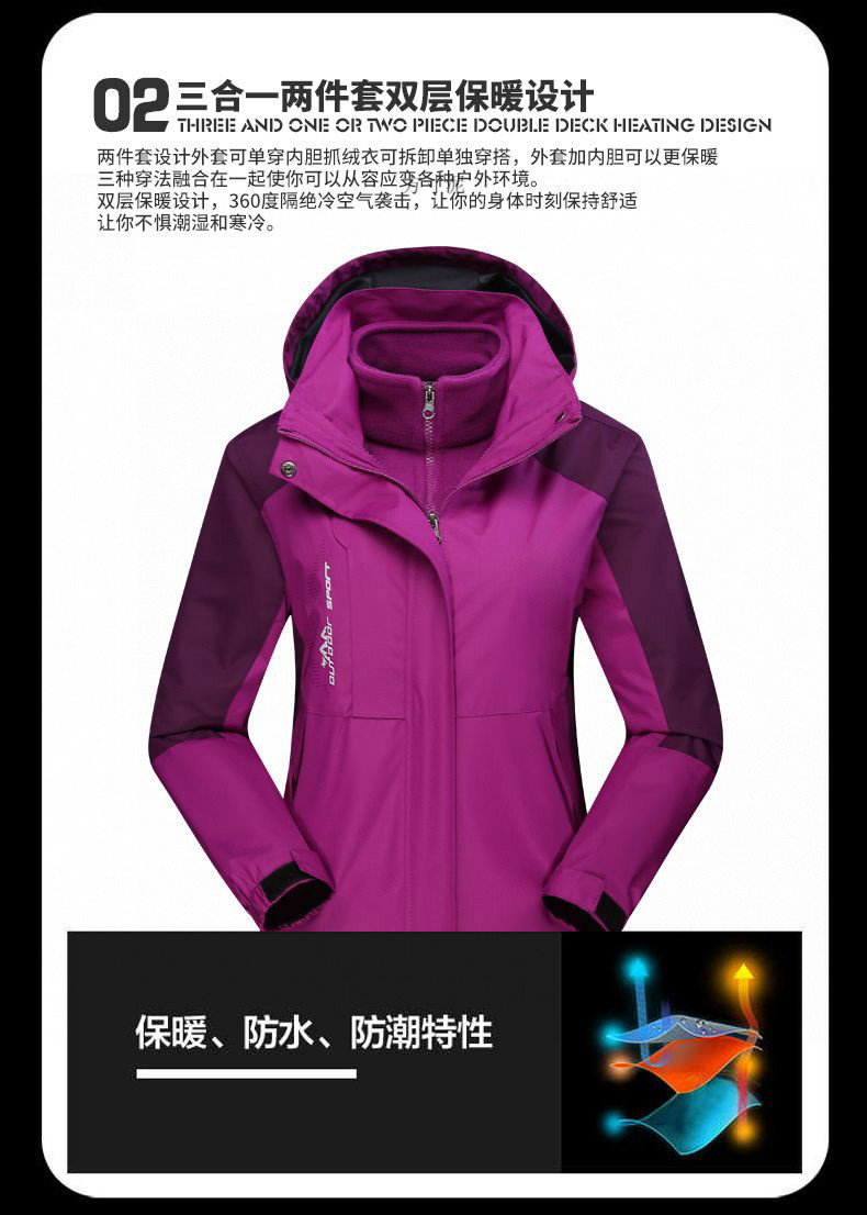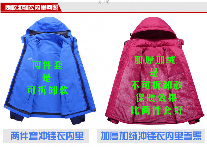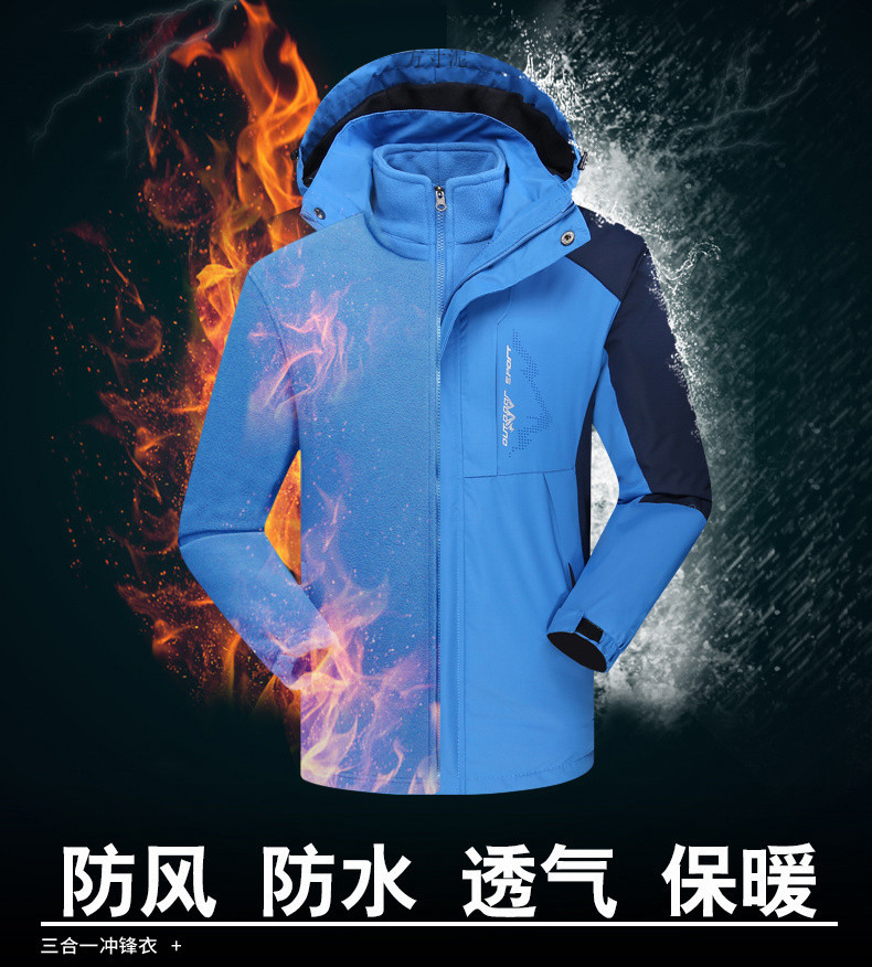 남성과 여성을위한 투피스 재킷 3 대 1 탈착식 겨울 기모 두꺼운 따뜻한 코트 방풍 등산 공급