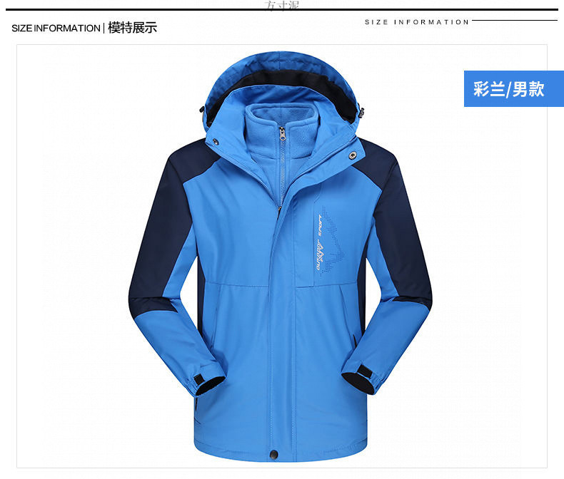 남성과 여성을위한 투피스 재킷 3 대 1 탈착식 겨울 기모 두꺼운 따뜻한 코트 방풍 등산 공급스토어 가기