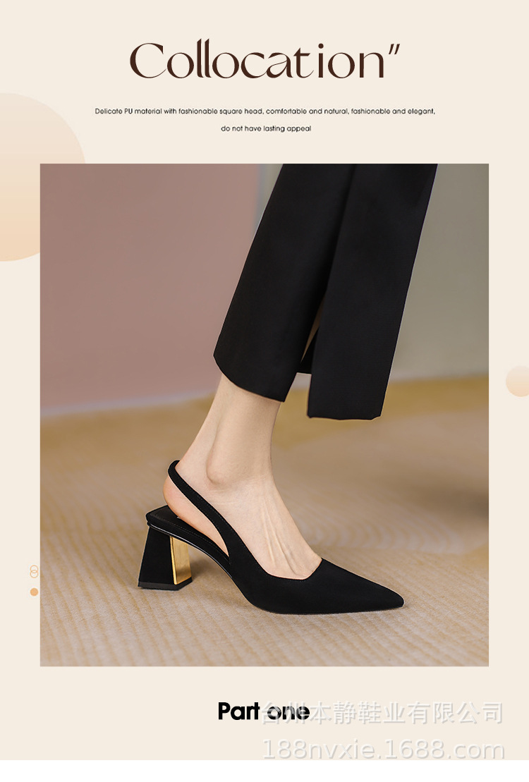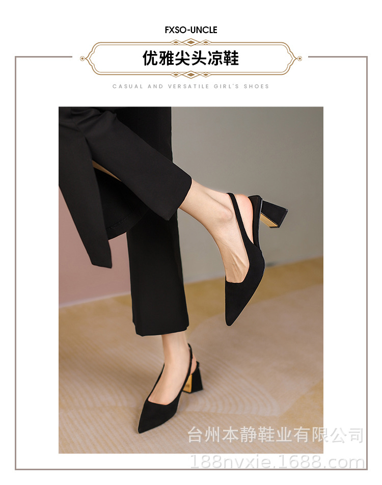 프랑스 레트로 하이힐 2024 봄 새로운 간단한 유행 포인팅 두꺼운 힐 오픈 힐 여성용 발가락 샌들스토어 가기