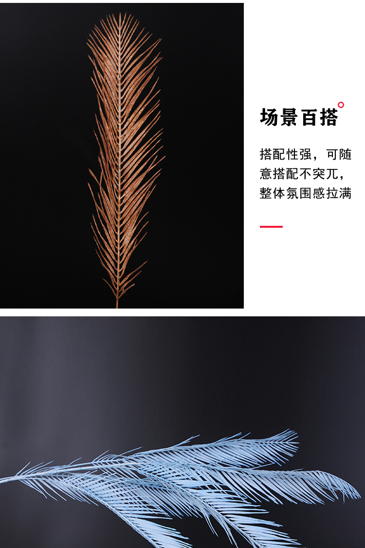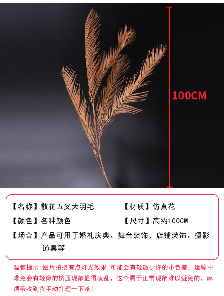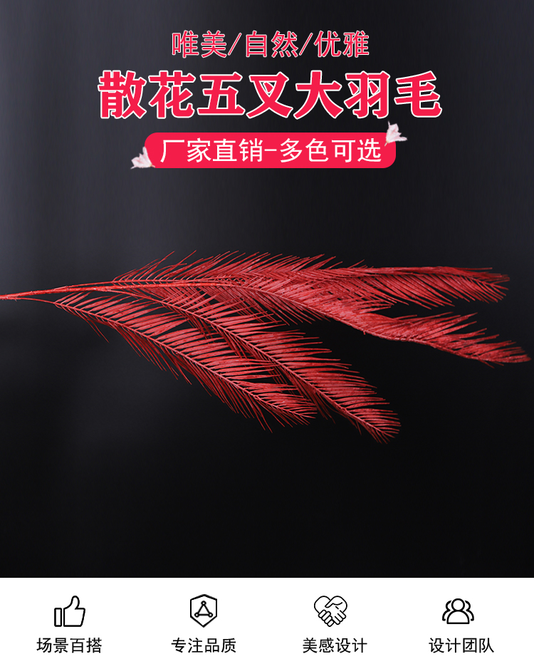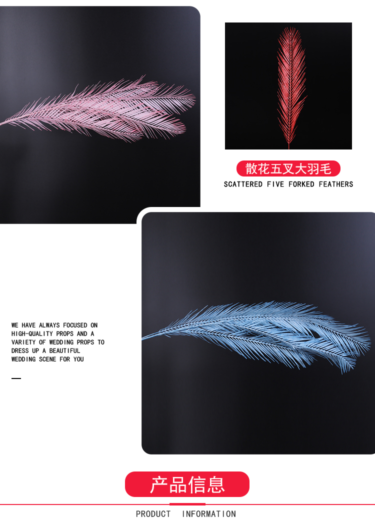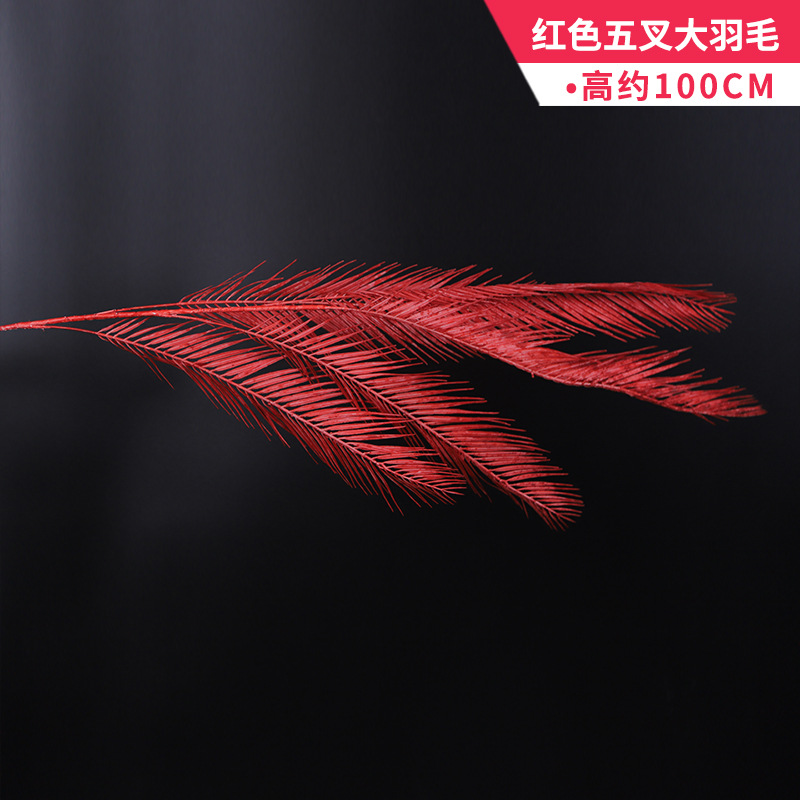 森系花材拱门地排路引花五叉大羽毛婚庆单支仿真花材假花红色插花