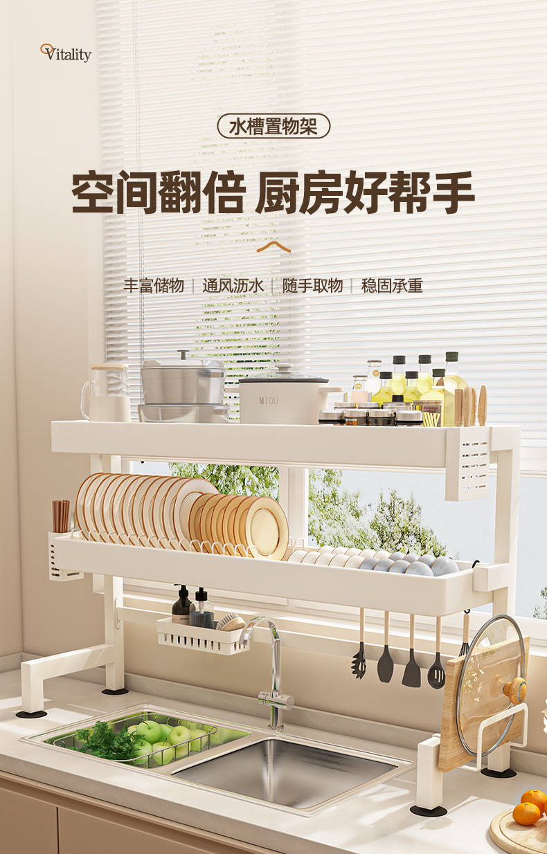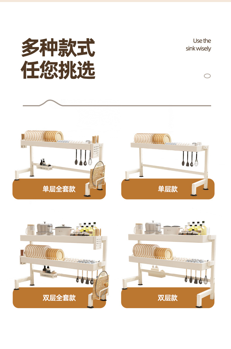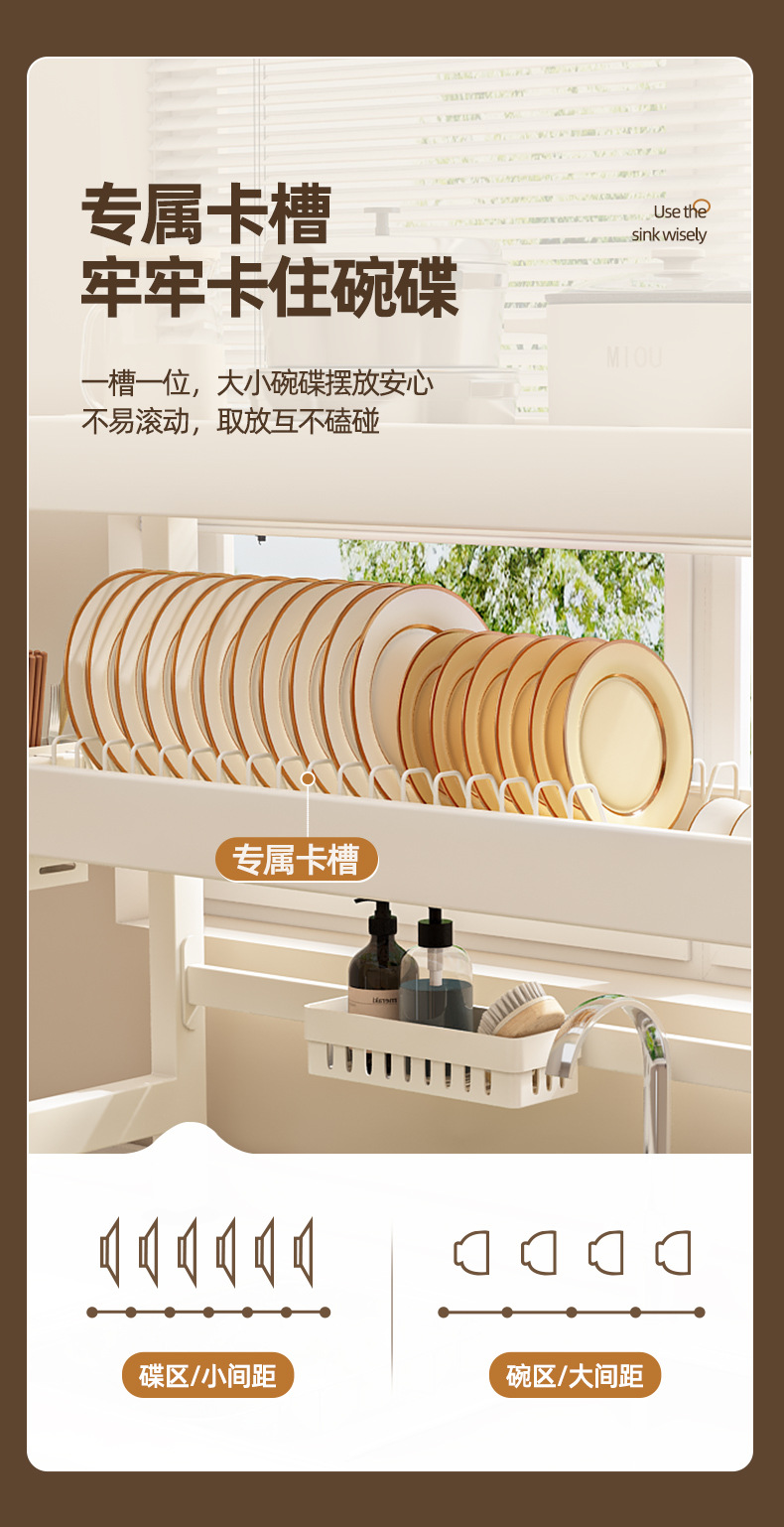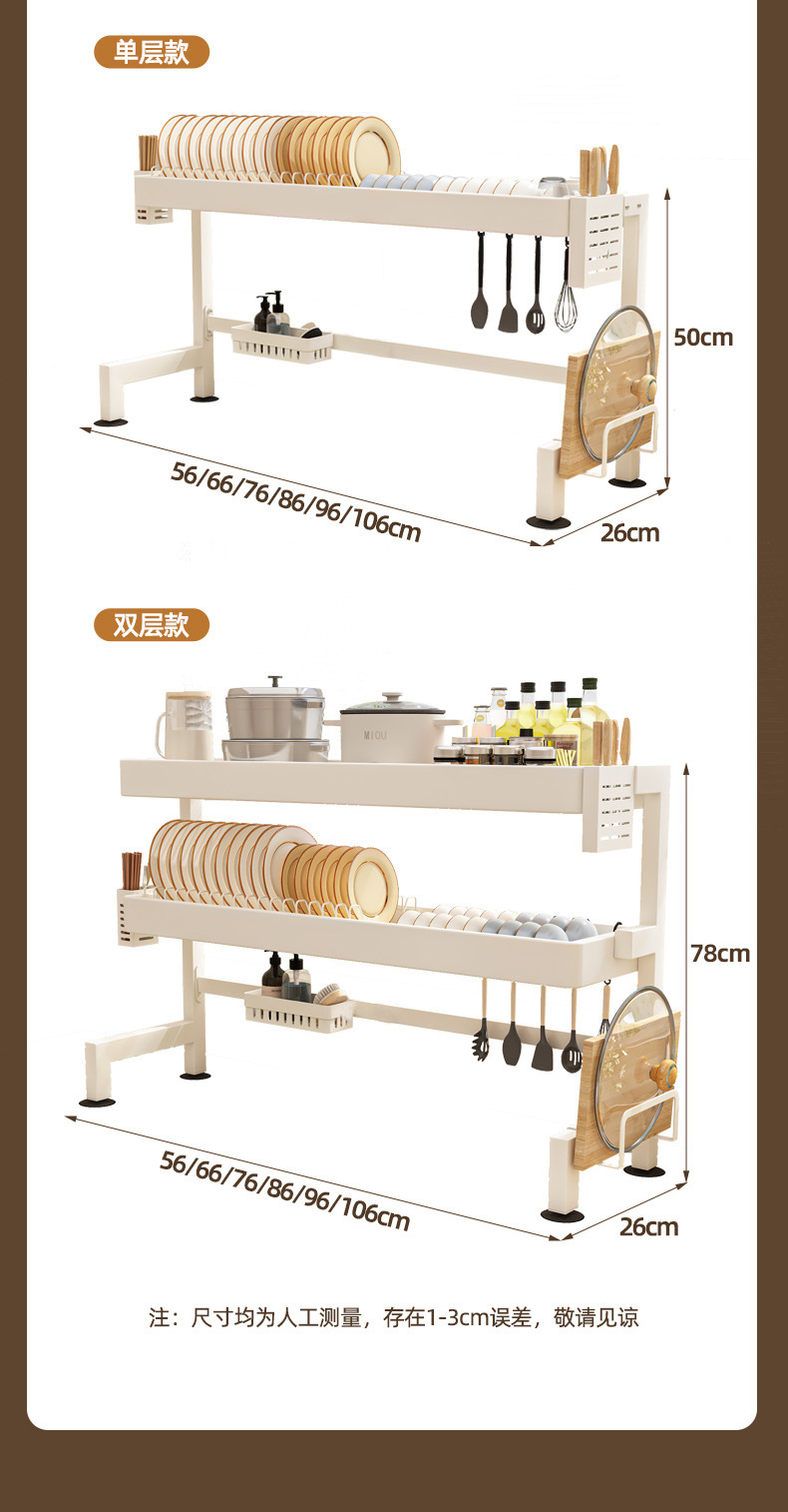 주방 싱크 스토리지 랙 카운터 탑 그릇 및 접시 저장 랙 다기능 싱크 접시 랙 드레인 랙 크림 스타일