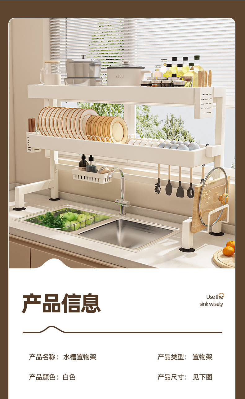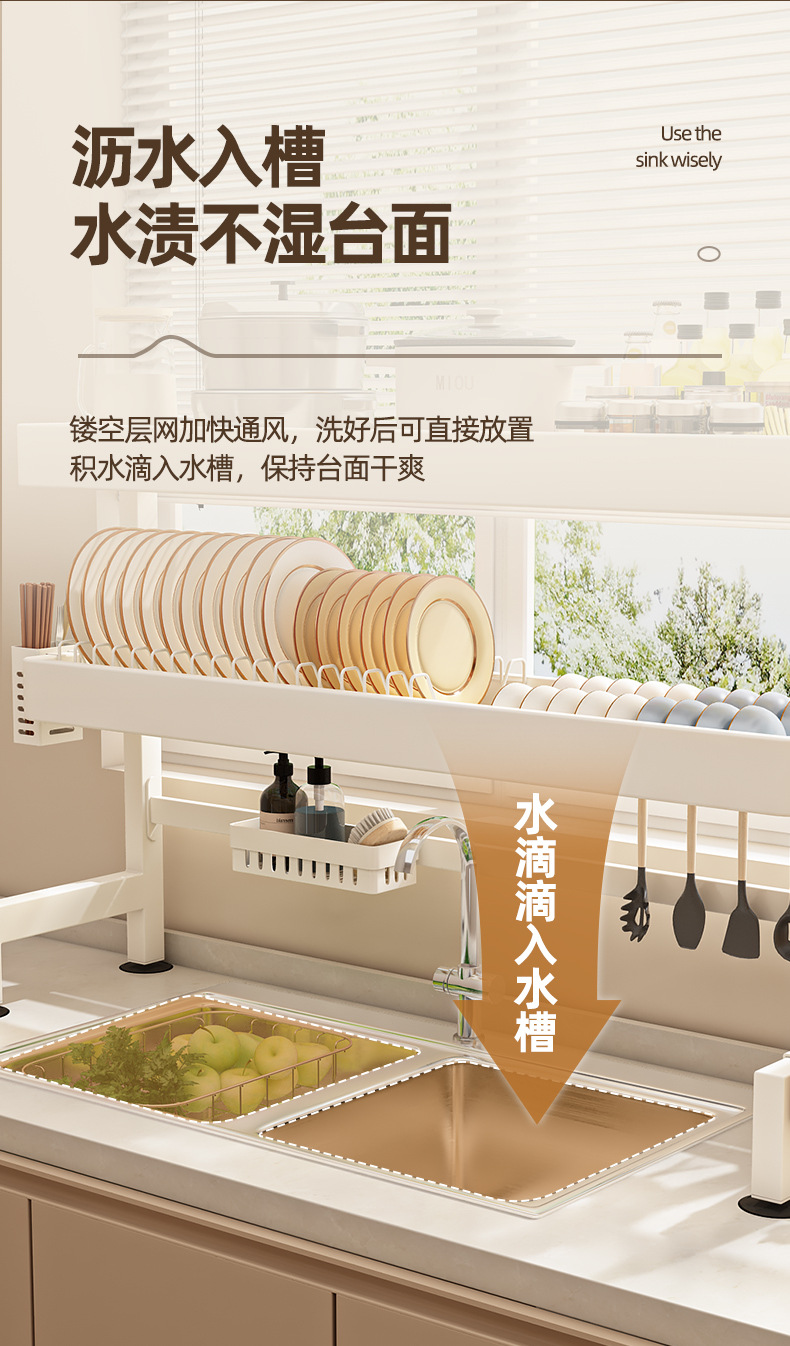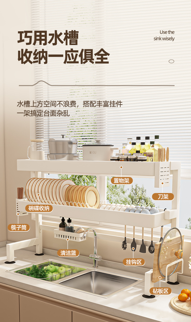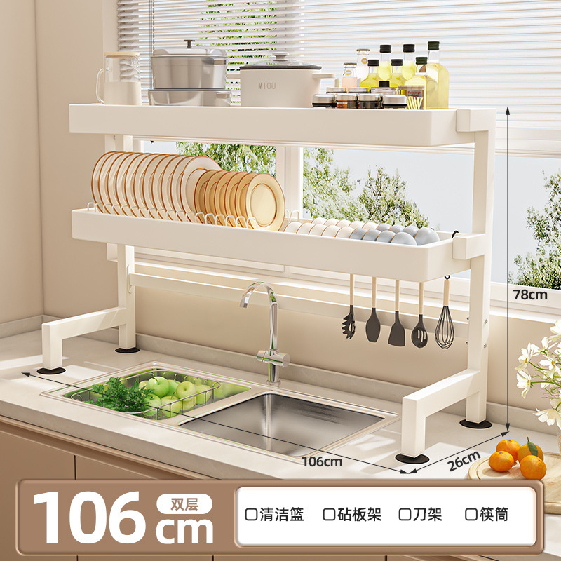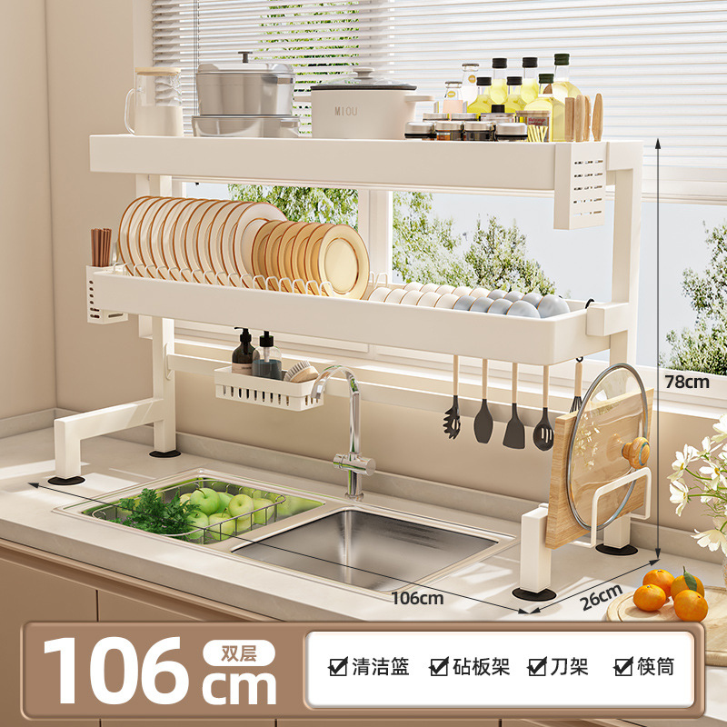 주방 싱크 스토리지 랙 카운터 탑 그릇 및 접시 저장 랙 다기능 싱크 접시 랙 드레인 랙 크림 스타일스토어 가기