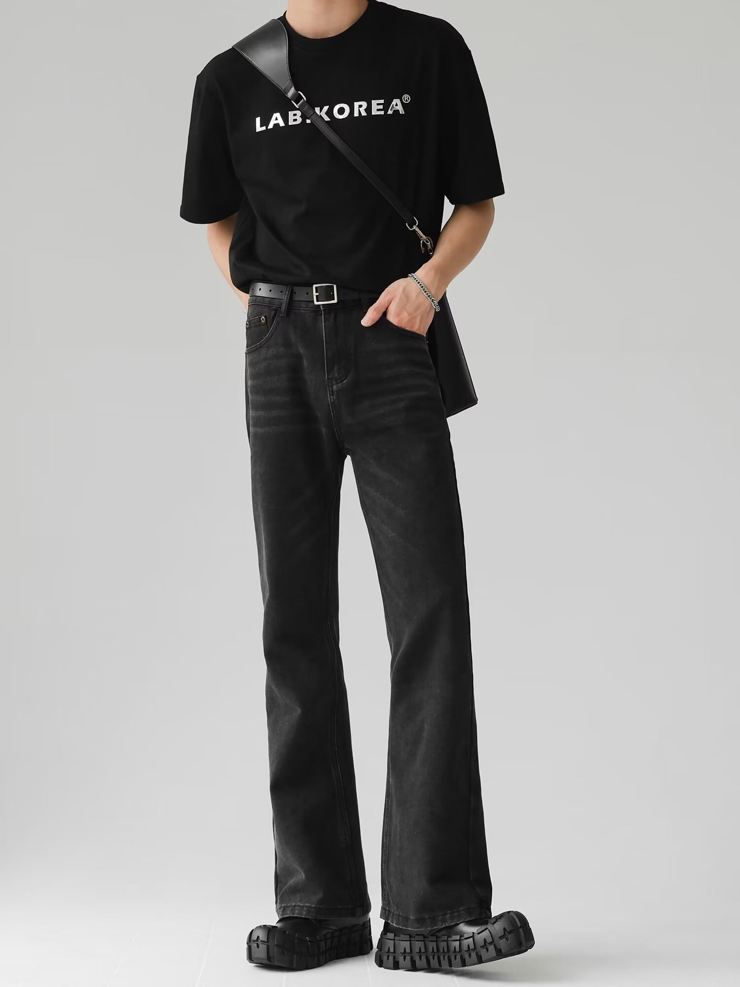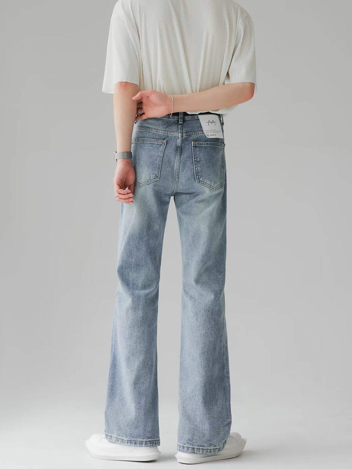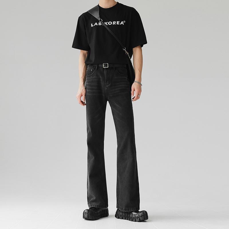 하이 엔드 센스 마이크로 플레어 팬츠 남녀 딥 청바지 레트로 와시 모 팬츠 루즈 올 매치 트렌디 팬츠