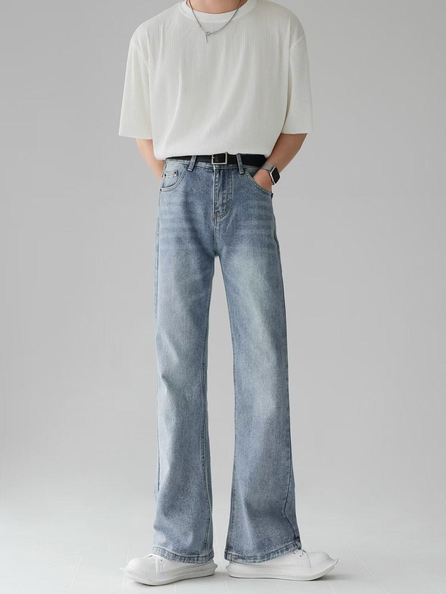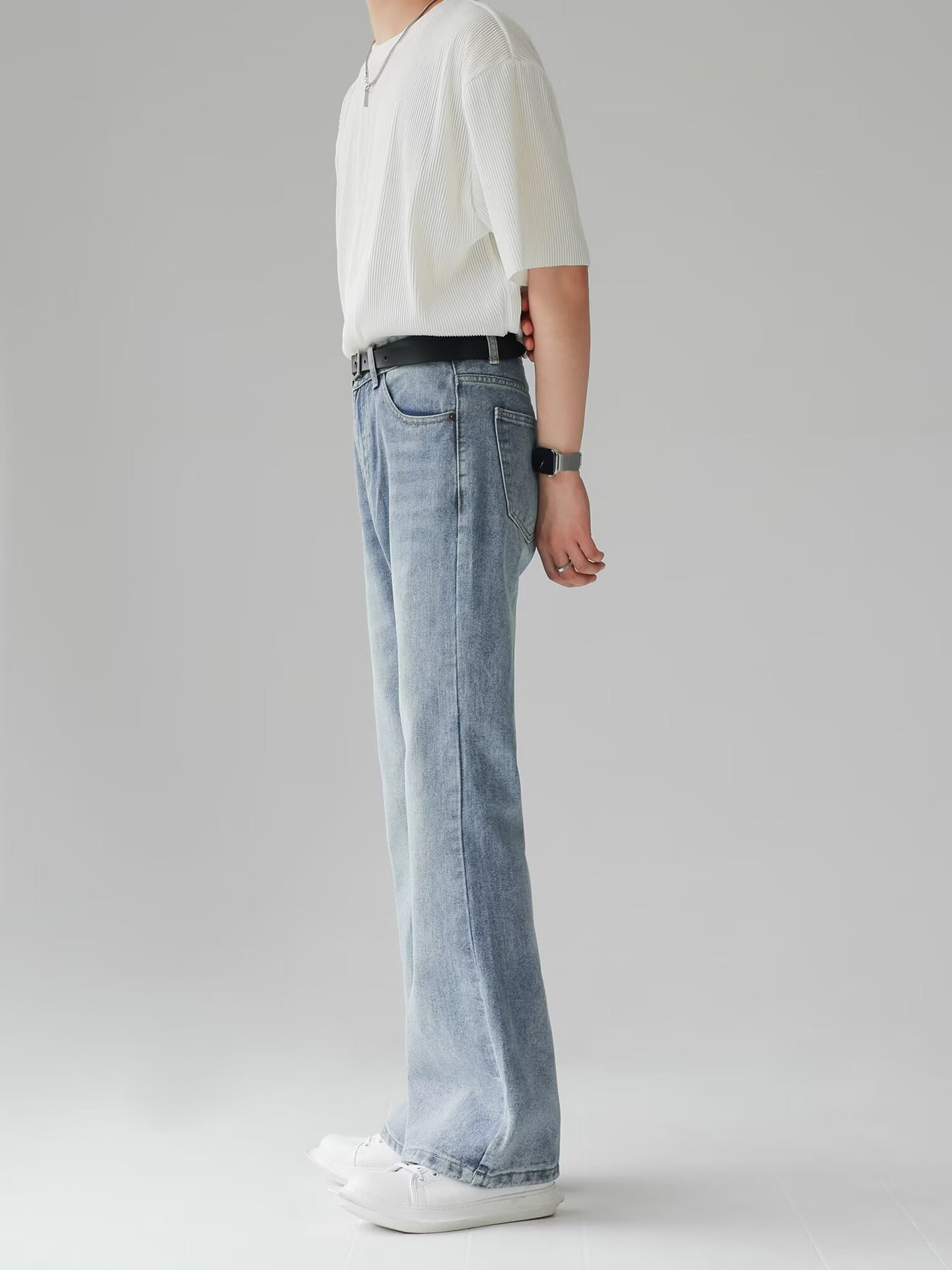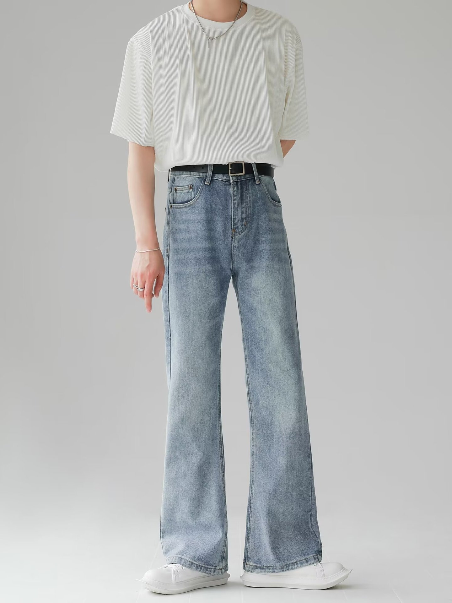 하이 엔드 센스 마이크로 플레어 팬츠 남녀 딥 청바지 레트로 와시 모 팬츠 루즈 올 매치 트렌디 팬츠