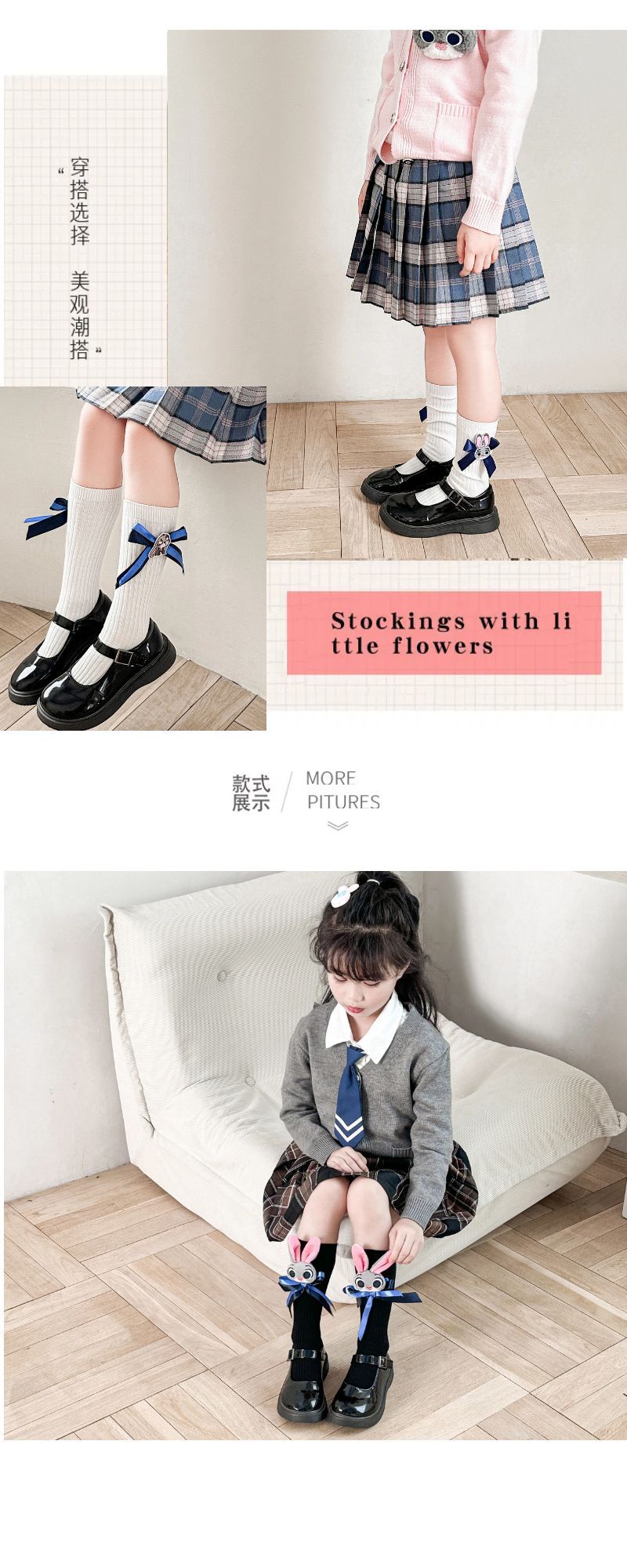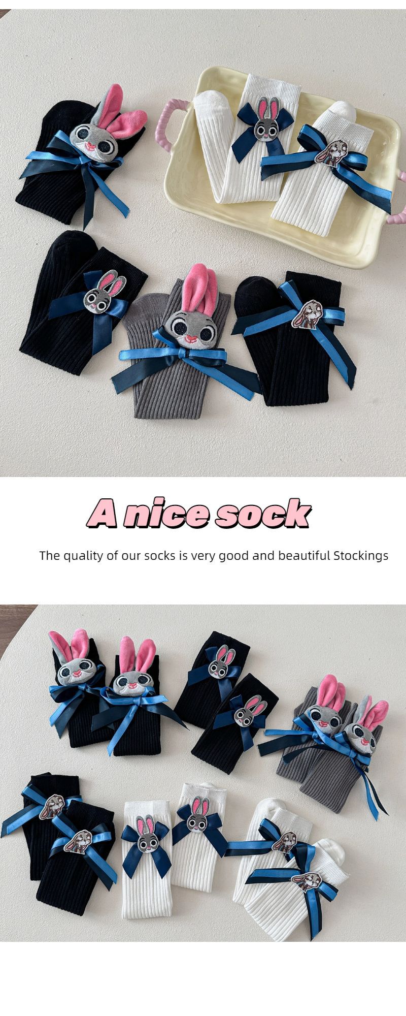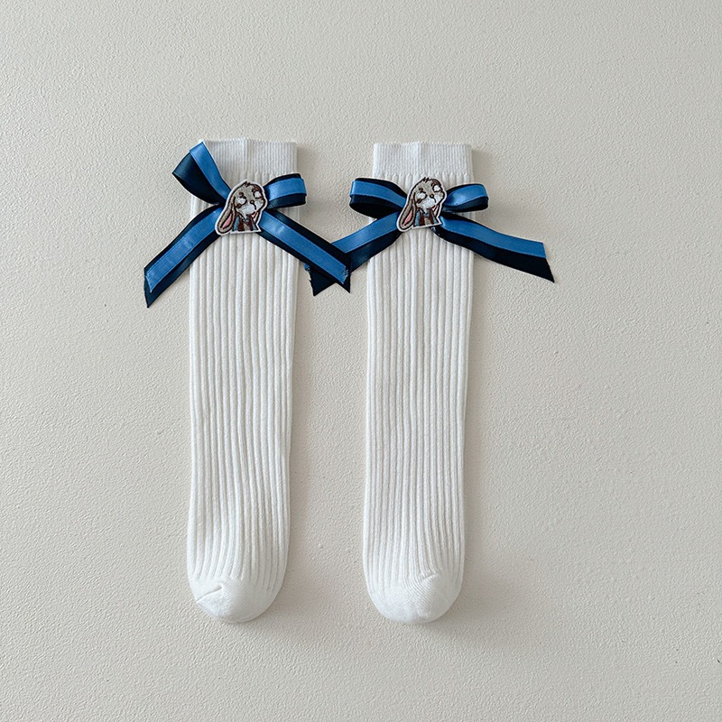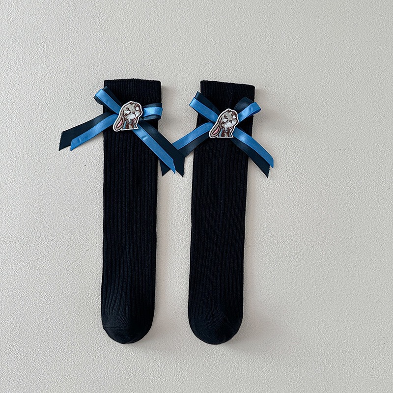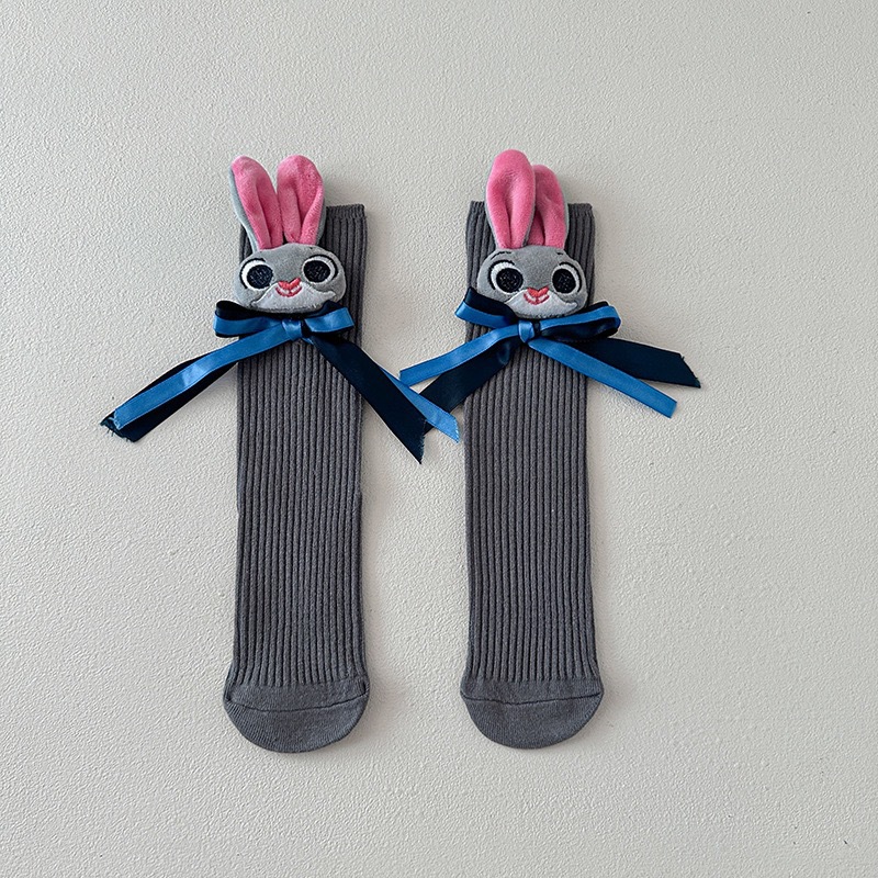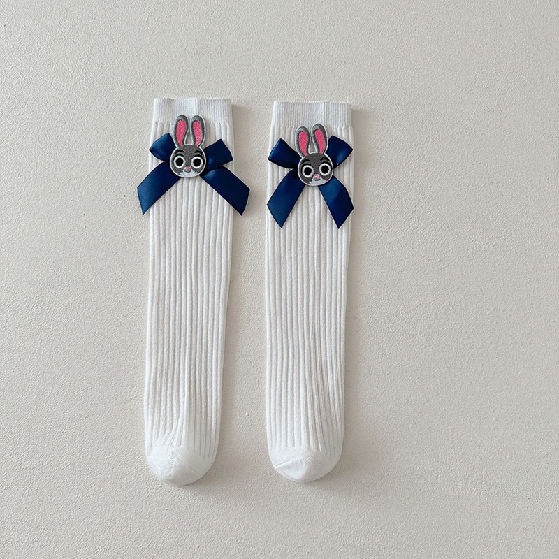 어린이 토끼 경찰관 양말 여자 아기 면화 양말 주디 Bowknot 쌓인 양말 미드 튜브 양말 어린이 미드 튜브 양말