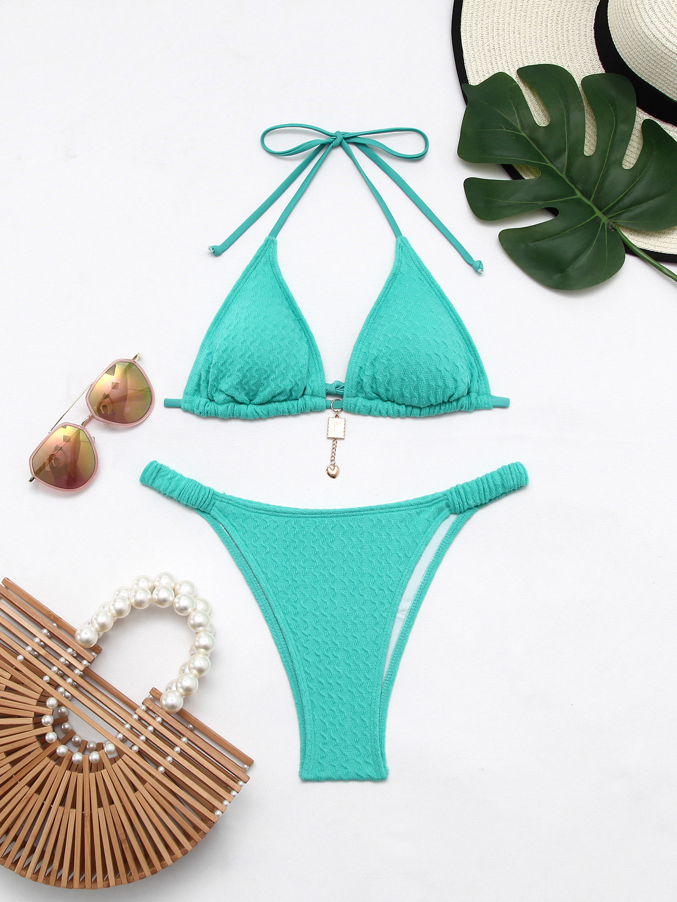 유럽과 미국의 새로운 스타일 여성 수영복, 고급 단색 섹시 홀터넥 비키니, 빈티지 투피스 세트, 해변 수영복스토어 가기