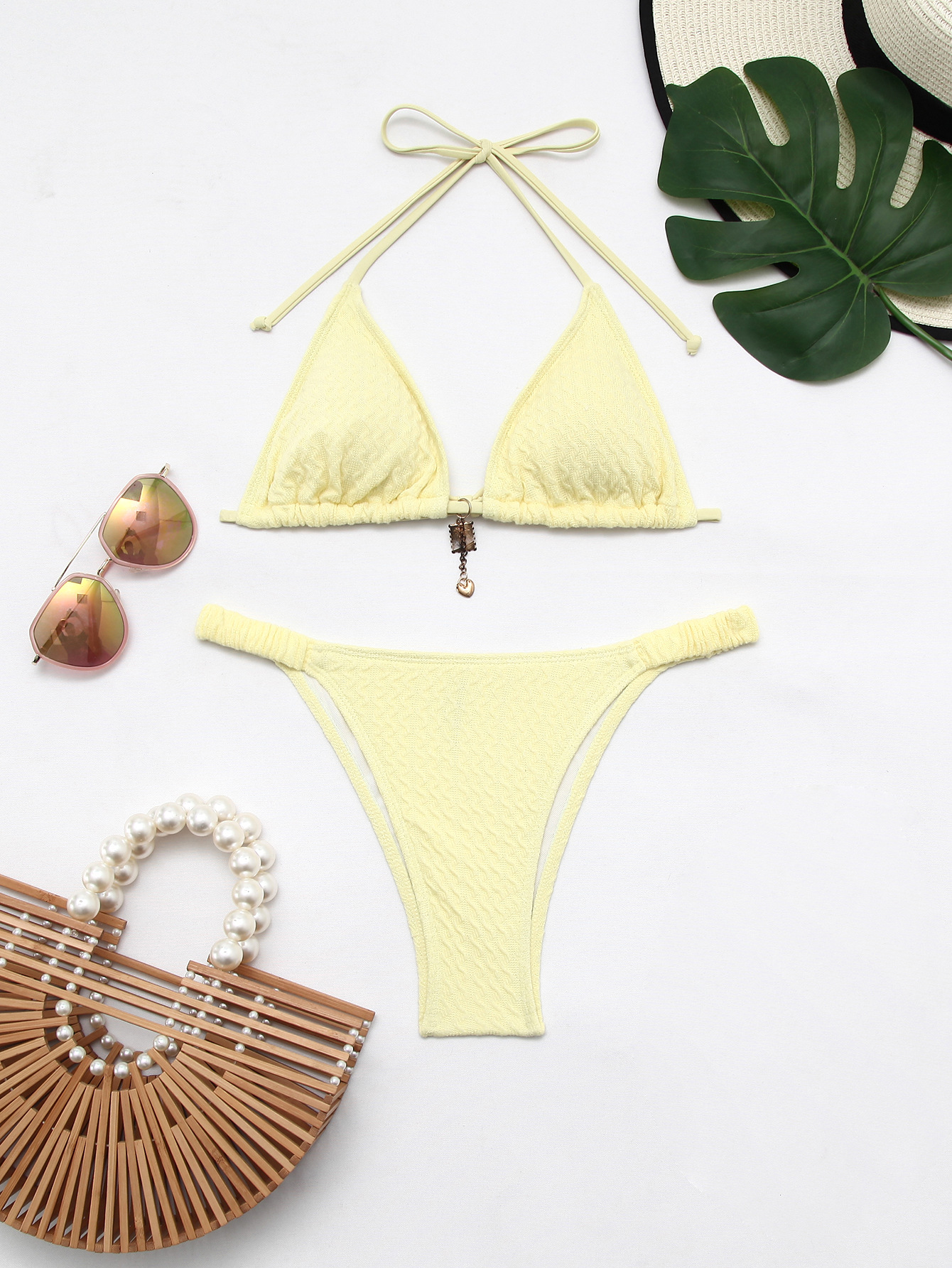 유럽과 미국의 새로운 스타일 여성 수영복, 고급 단색 섹시 홀터넥 비키니, 빈티지 투피스 세트, 해변 수영복