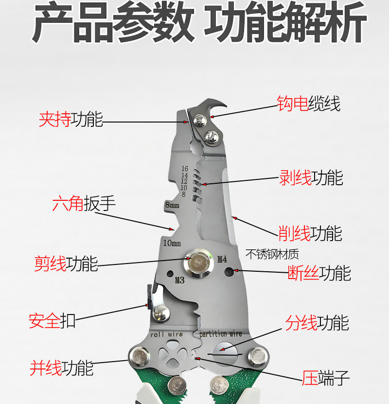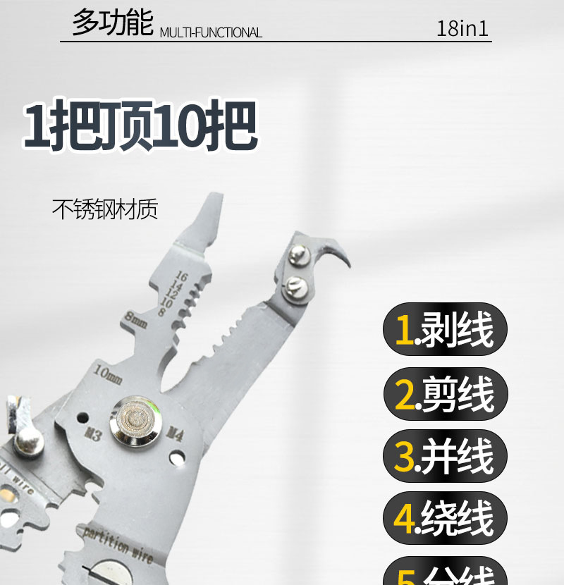 여러 기능을 갖춘 전기 기술자를위한 18-in -1 와이어 스트립 펜치스토어 가기