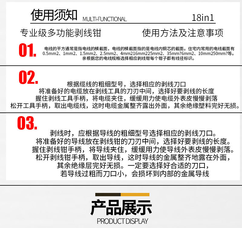 여러 기능을 갖춘 전기 기술자를위한 18-in -1 와이어 스트립 펜치