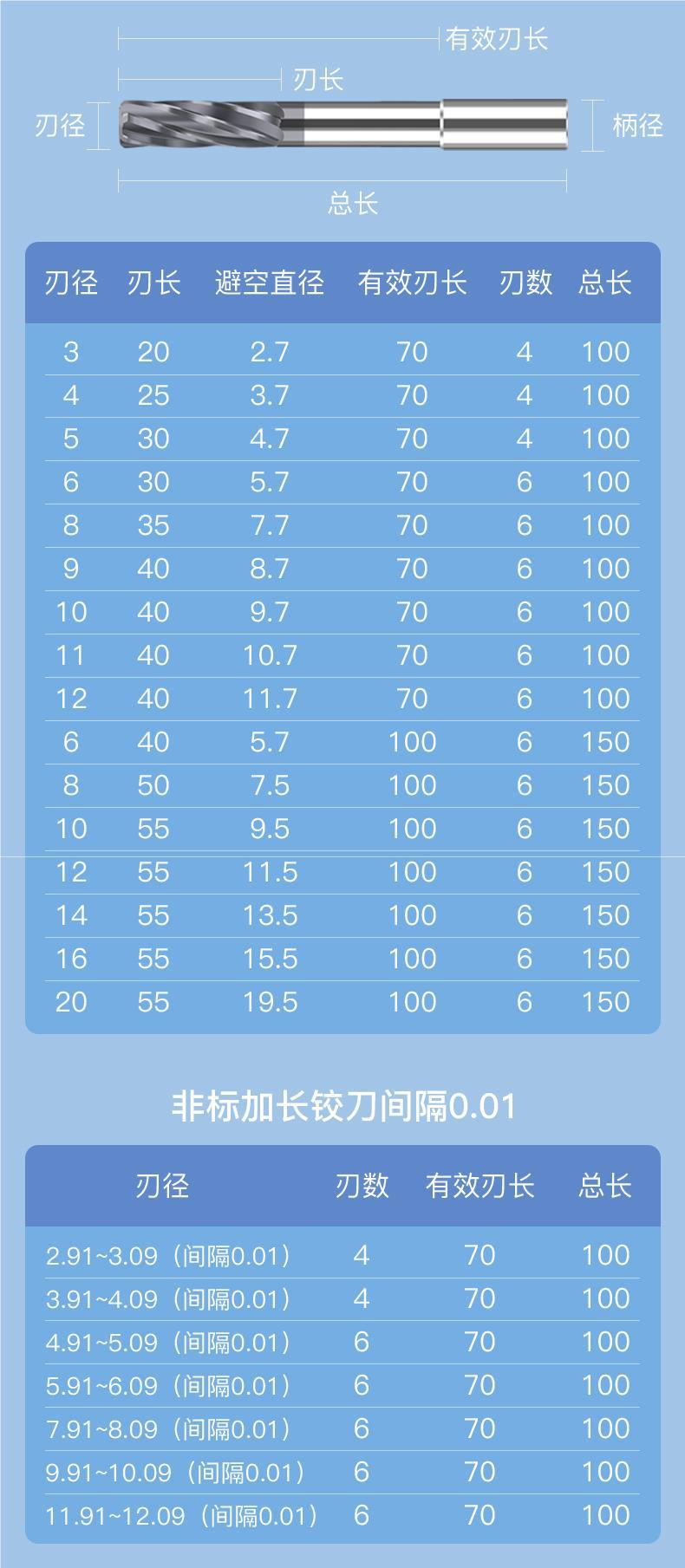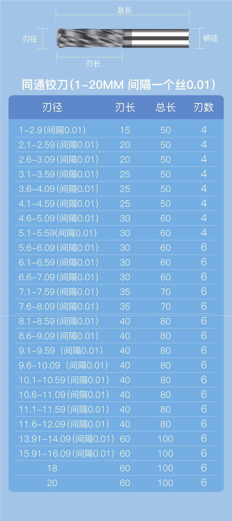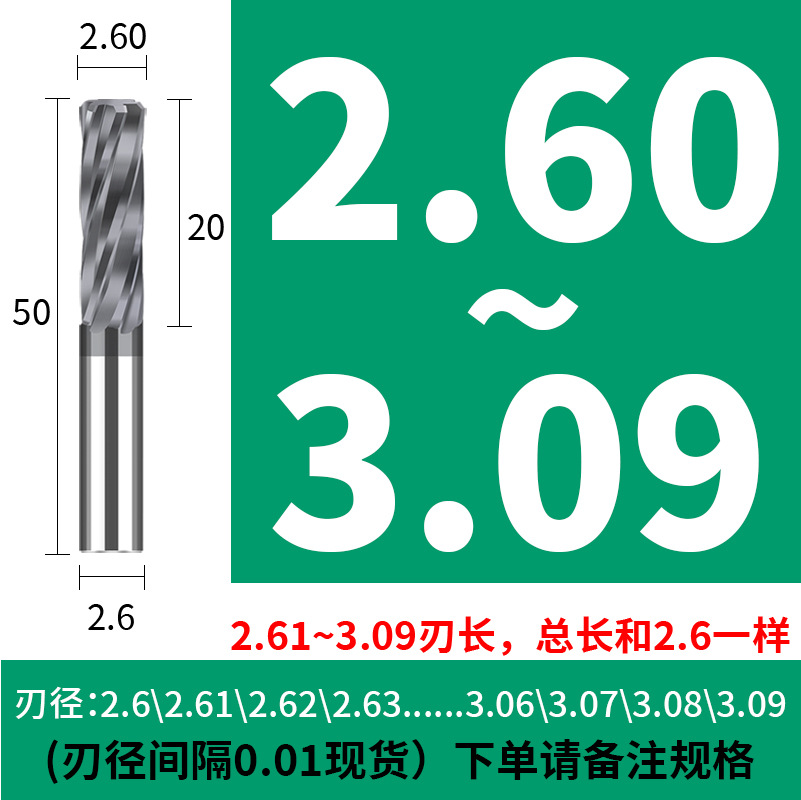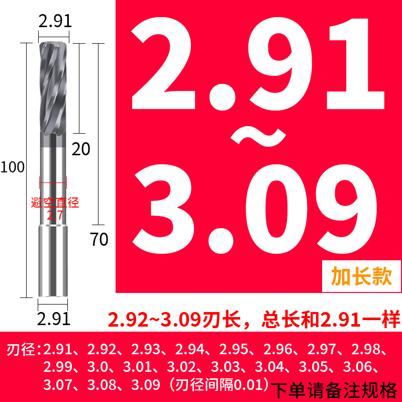 • (0.91-1.3 간격 0.01) 3.0 생크 직경*10*50L