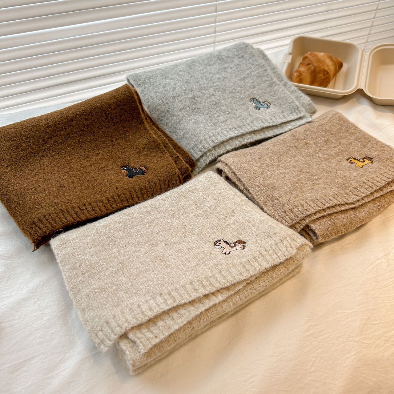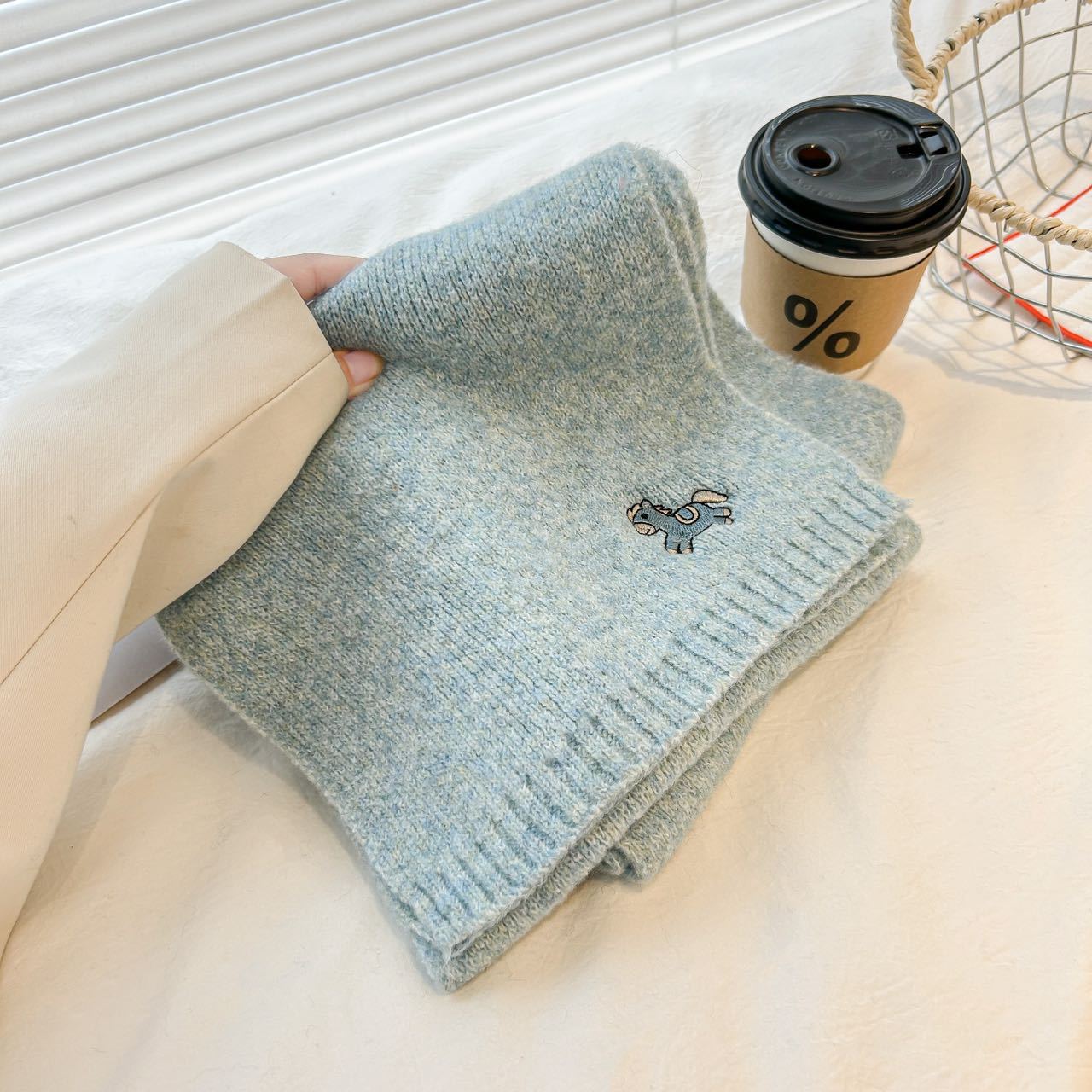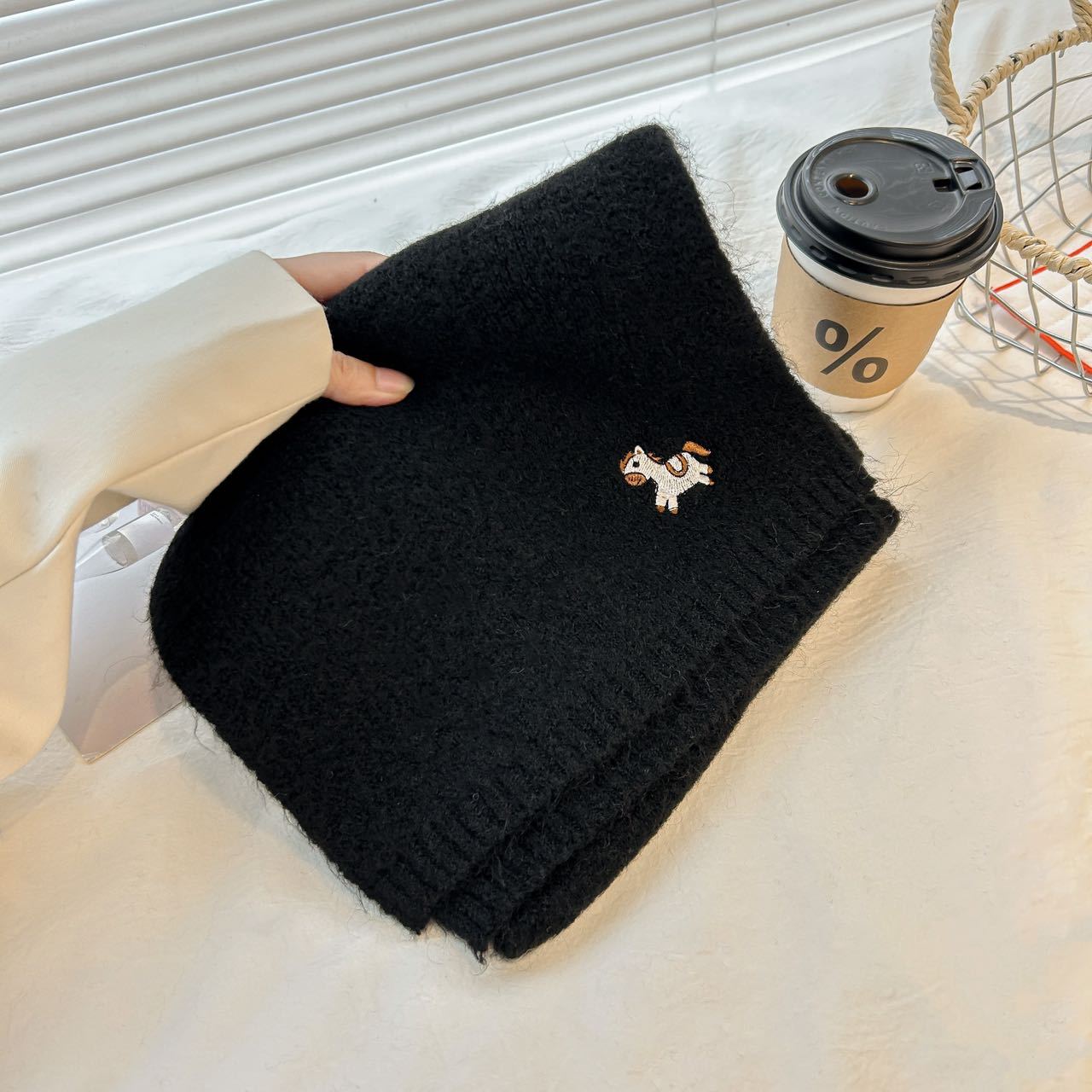 한국 스타일 귀여운 자수 포니 니트 스카프 여성의 가을과 겨울 따뜻한 한랭 패션 올 매치 하이 엔드 커플 스카프스토어 가기