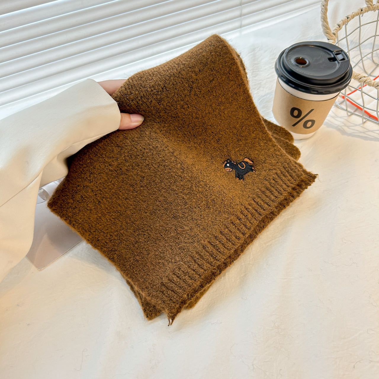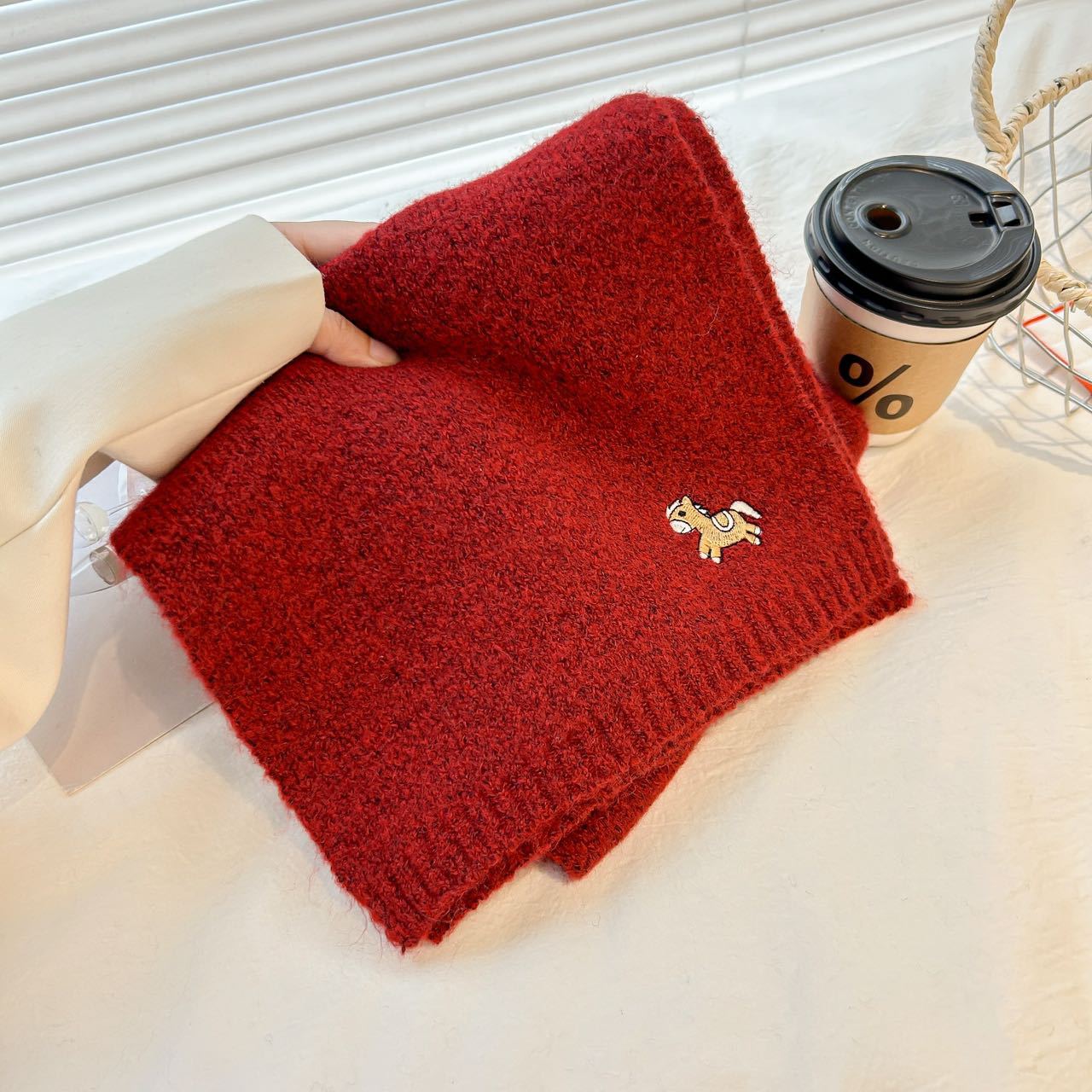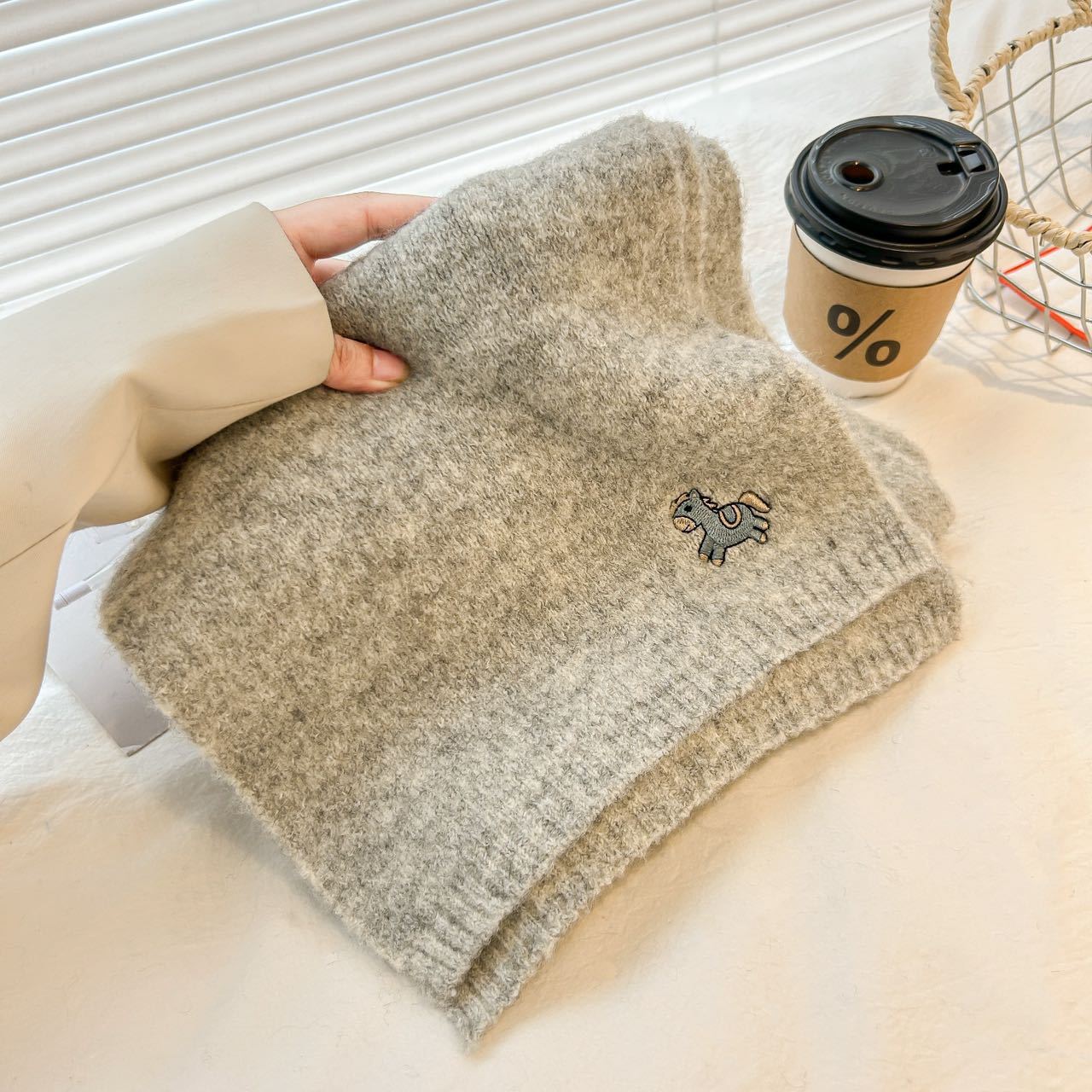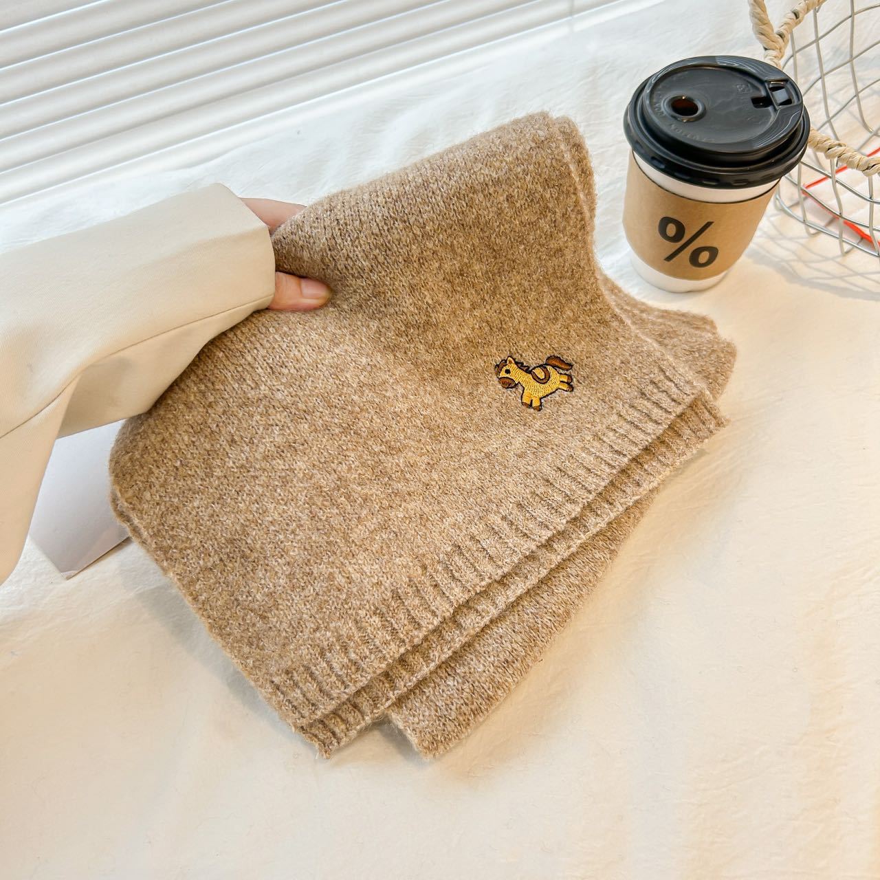 한국 스타일 귀여운 자수 포니 니트 스카프 여성의 가을과 겨울 따뜻한 한랭 패션 올 매치 하이 엔드 커플 스카프스토어 가기