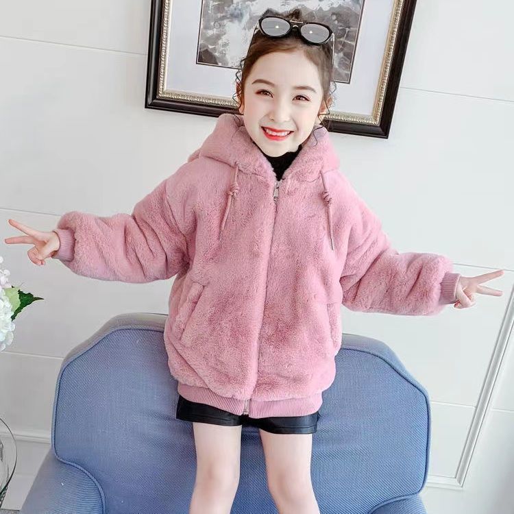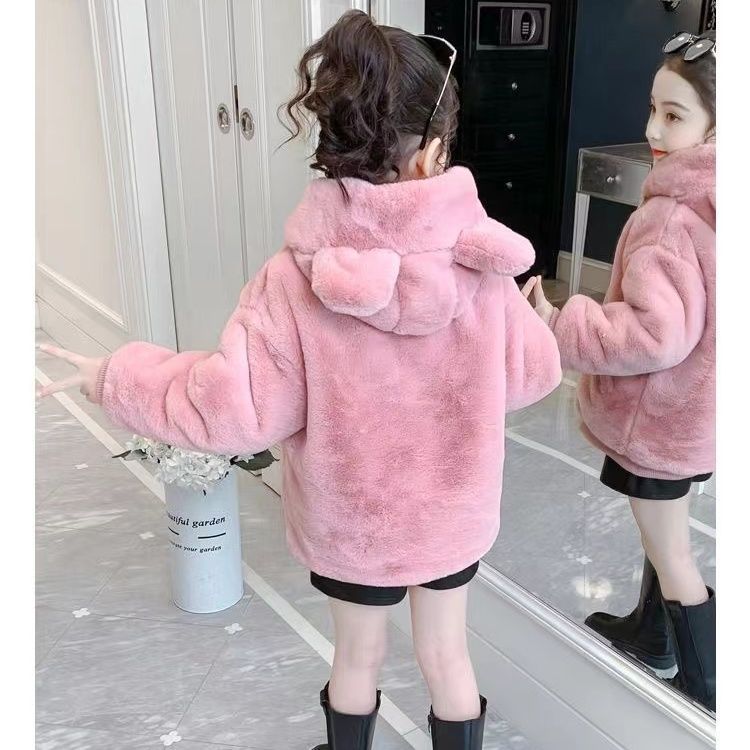 여아 코트, 모피 스웨터, 아동용 벨벳 두꺼운 모조 모피 면 코트, 여아 겨울 코트, 따뜻한 중간 길이 면 코트
