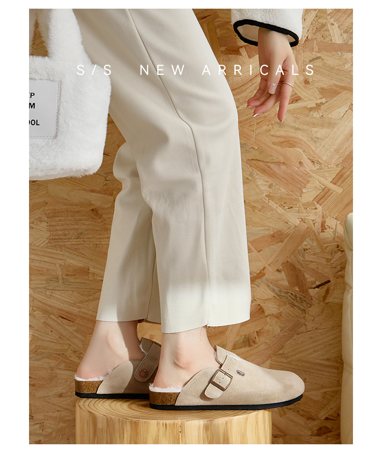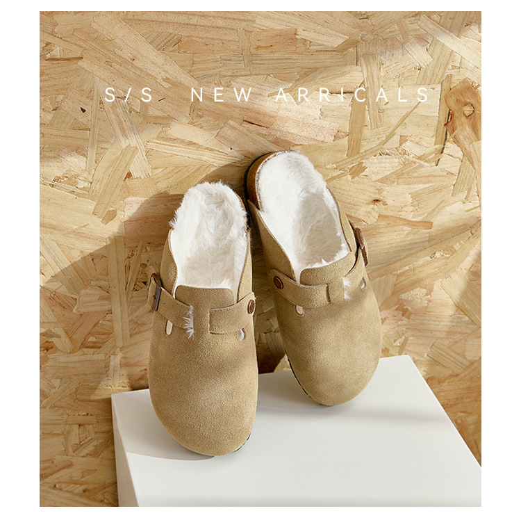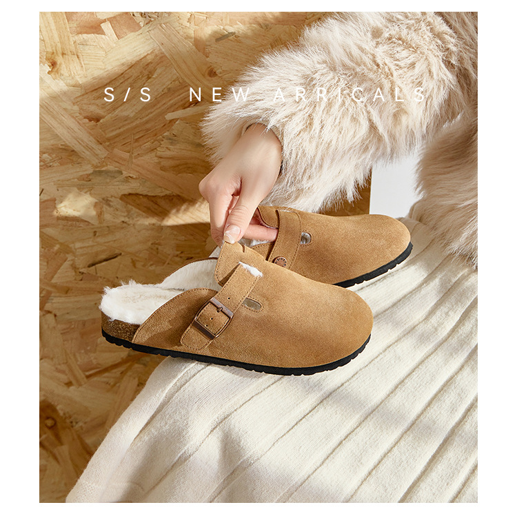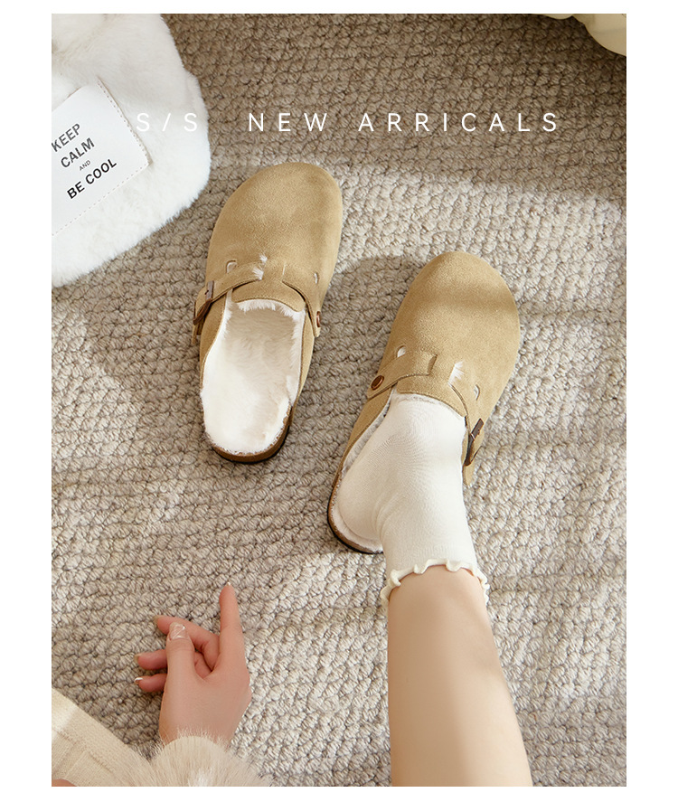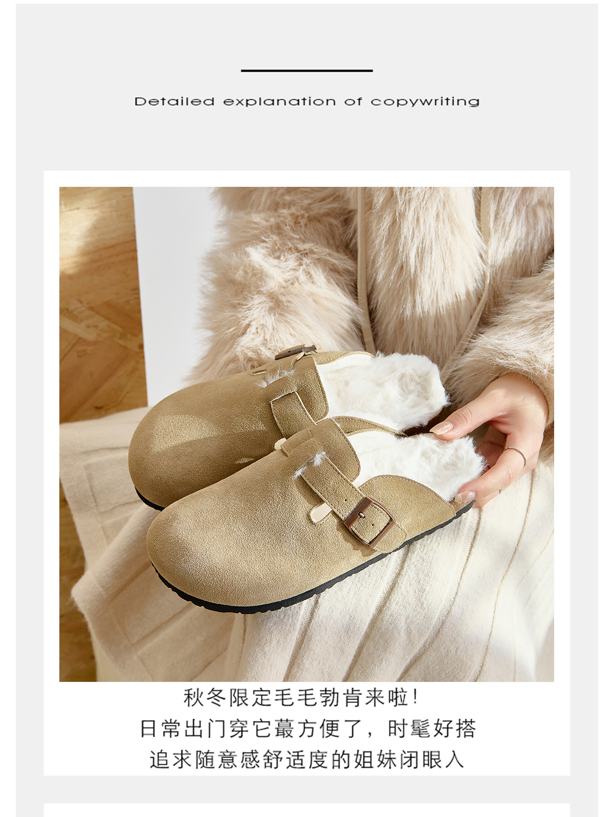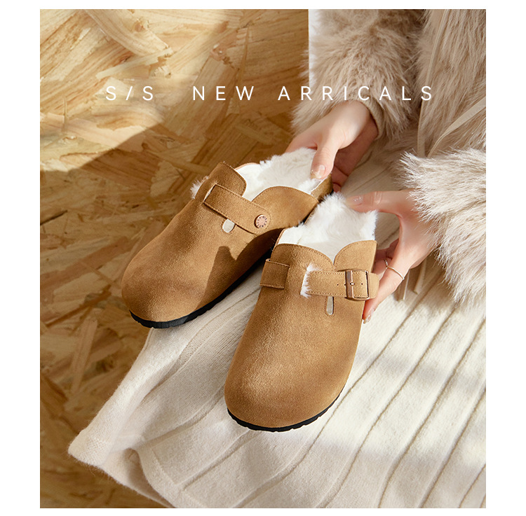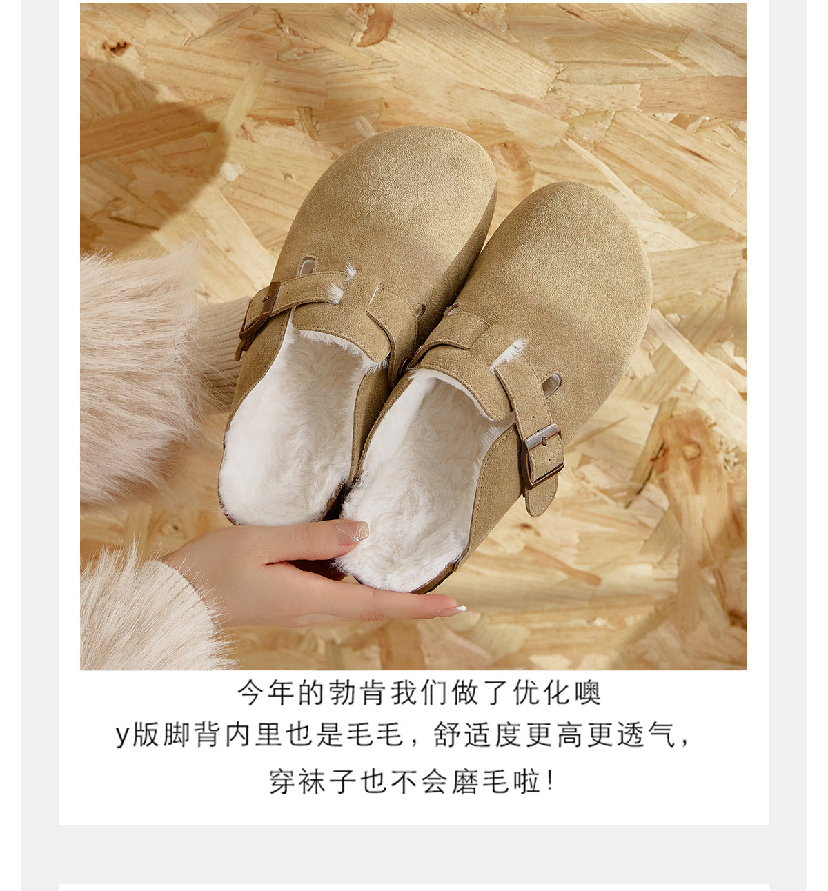 전체 정품 두꺼운 하단 Borken 신발 여성의 2024 새로운 스타일 슬립 온 기모 따뜻한 마오 마오 슬리퍼스토어 가기