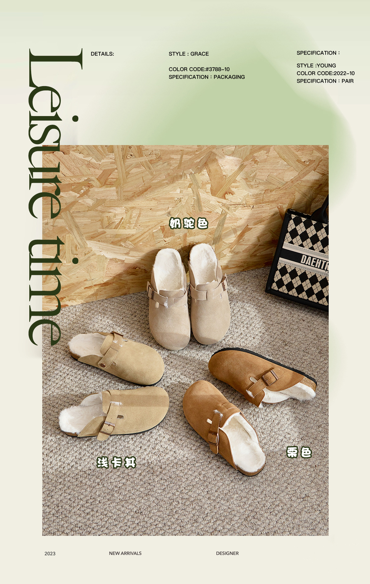 전체 정품 두꺼운 하단 Borken 신발 여성의 2024 새로운 스타일 슬립 온 기모 따뜻한 마오 마오 슬리퍼