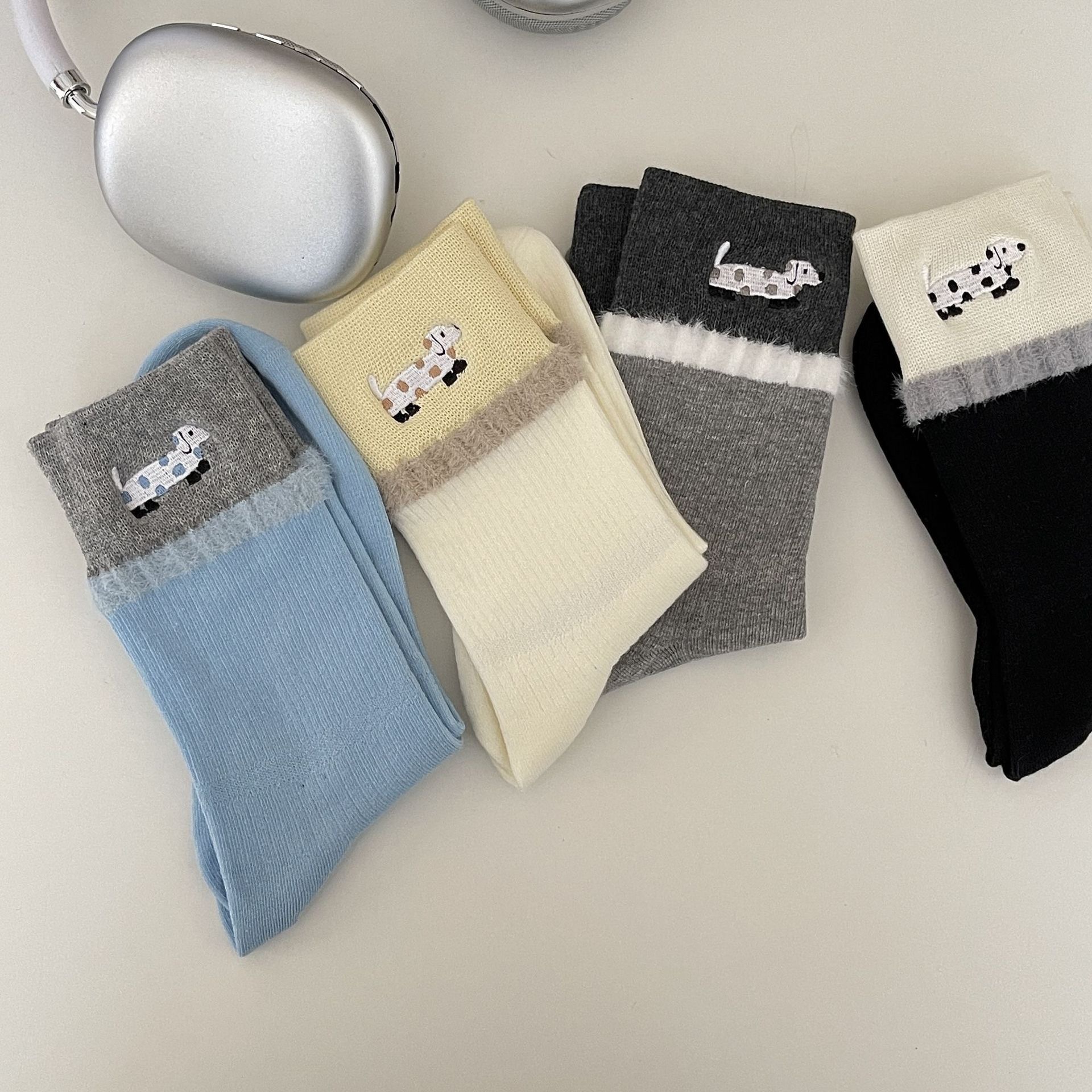 만화 잠금 달마시안 모든 경기 중간 튜브 양말 남성과 여성을위한 단색 가을과 겨울 자수 더미 양말 귀여운 틈새 디자인