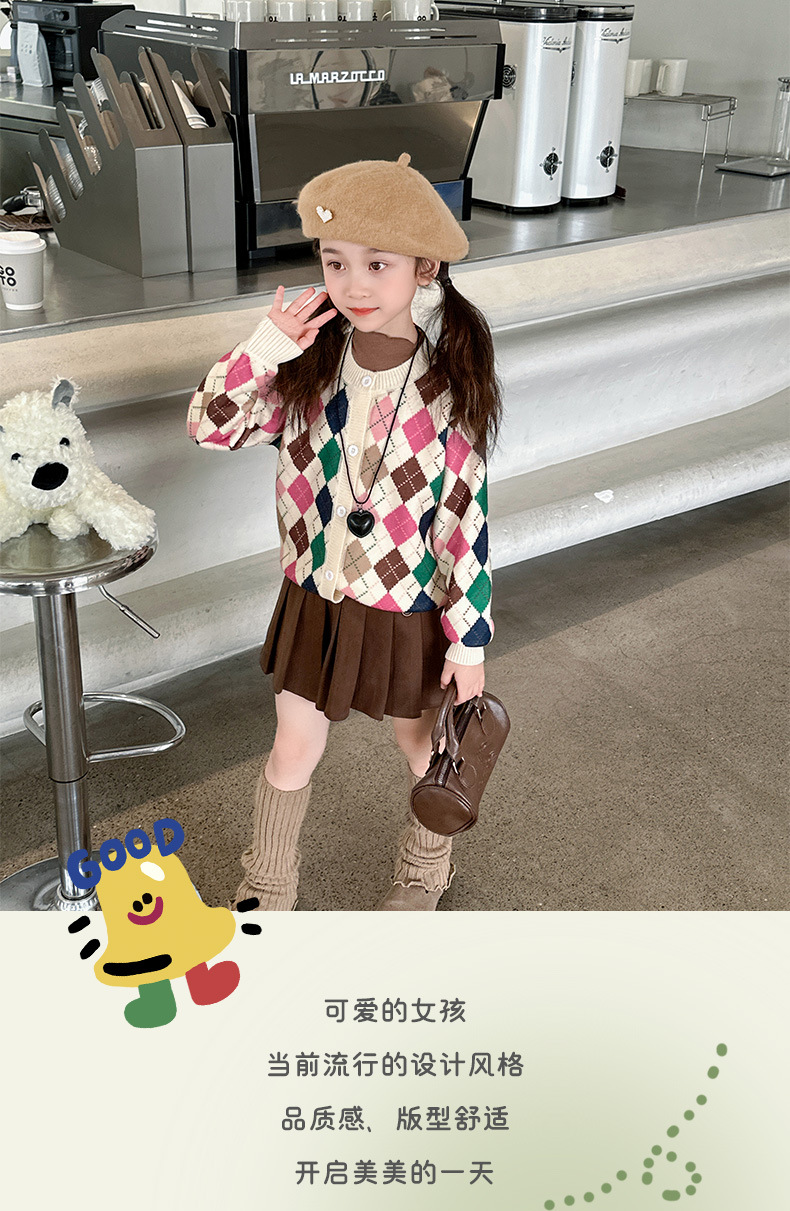 여자 니트 카디건 코트 걸스 스웨터 미드 빅 어린이 스타일 기모 올 매치 스웨터 가을과 겨울 새 도착스토어 가기