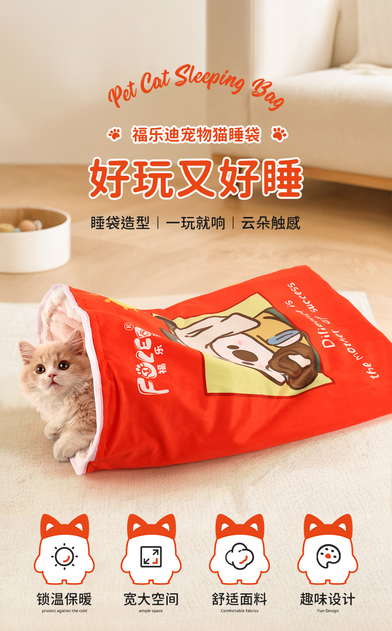 플로티 가을과 겨울 따뜻한 애완 동물 침낭 양고기 벨벳 따뜻한 키티 둥지 드릴 구멍 침대 반 폐쇄스토어 가기