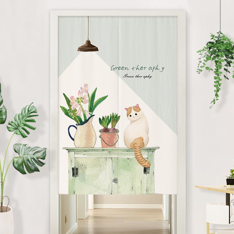 녹색 식물 문 커튼 2024 새로운 고급 욕실 천 커튼 파티션 커튼 홈 침실 절반 커튼 주방 쉼터 커튼