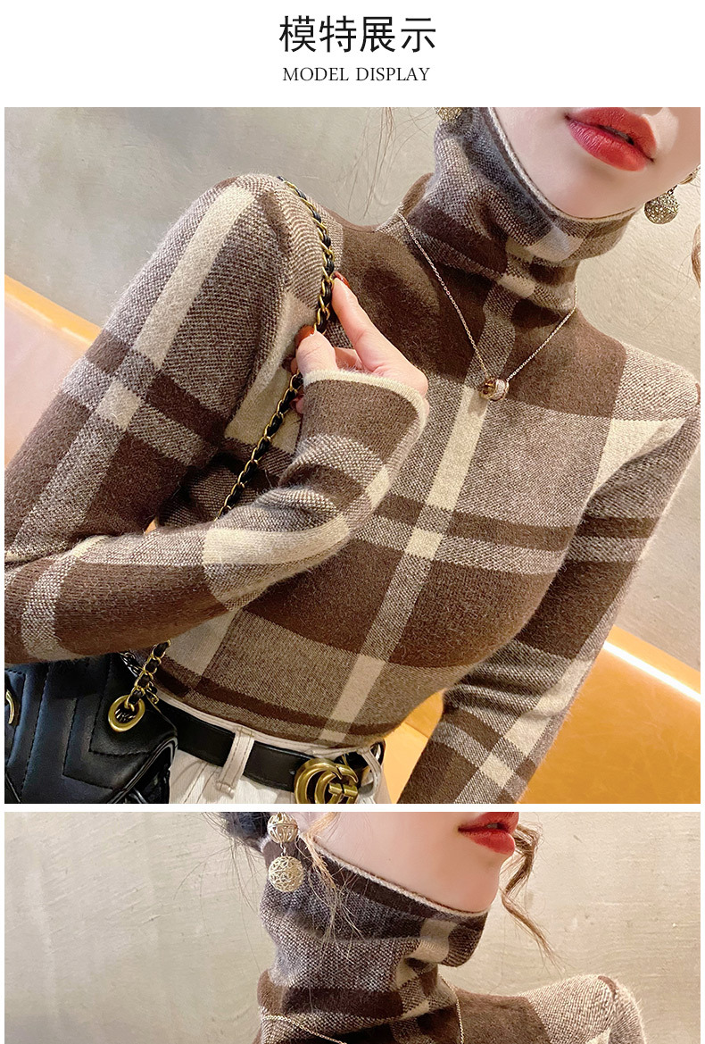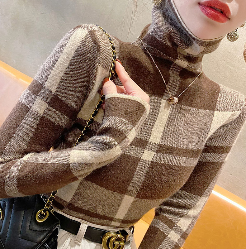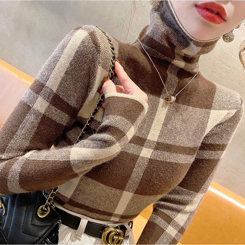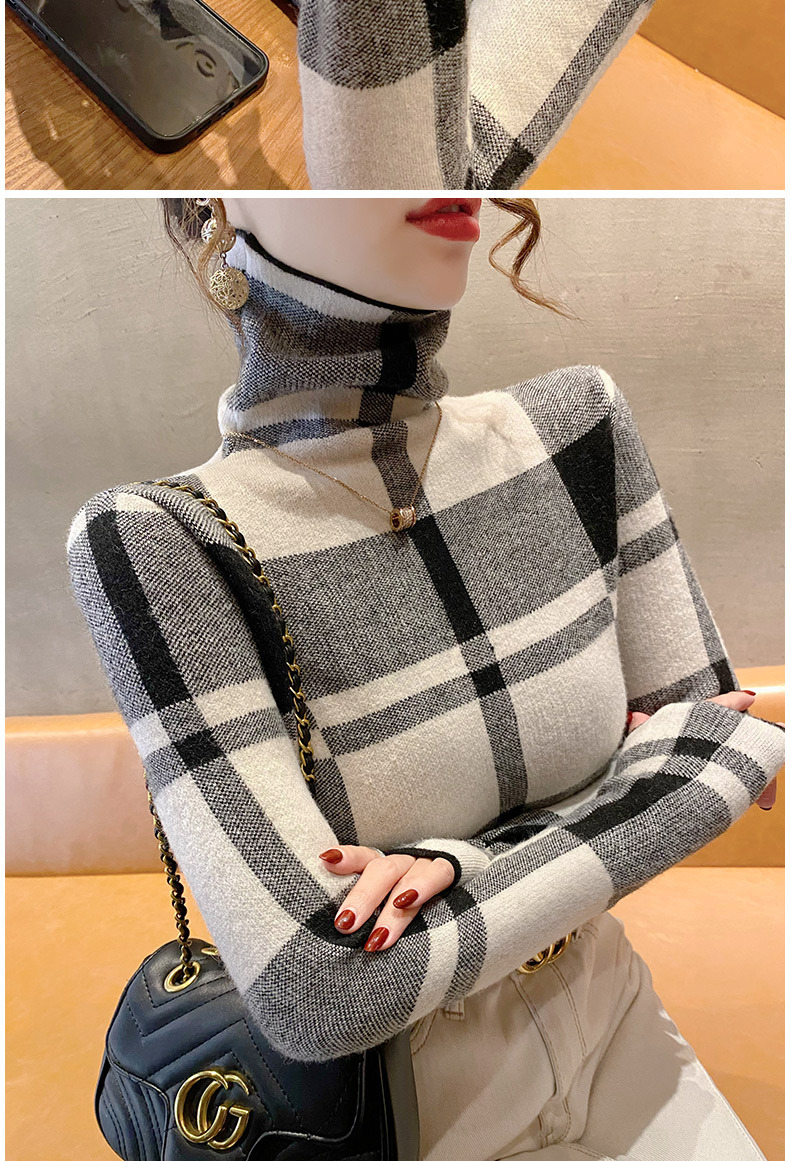 격자 무늬 터틀넥 여성 바닥 셔츠 유행 패션 2024 새로운 가을과 겨울 폭발 여성 내부스토어 가기