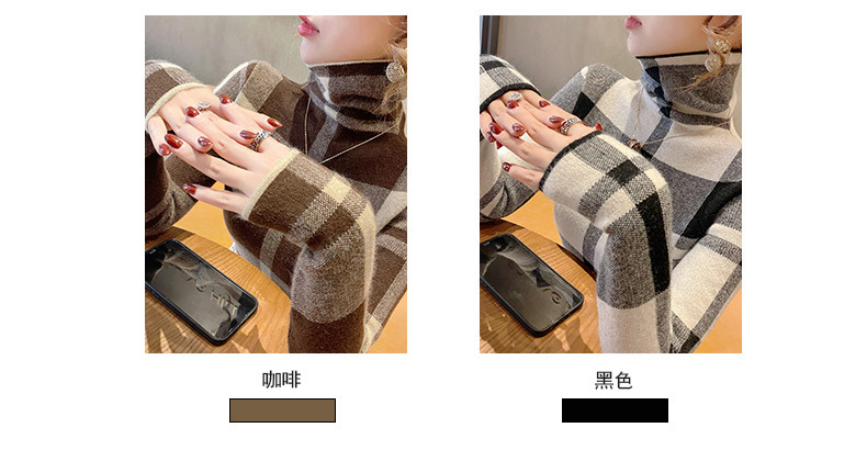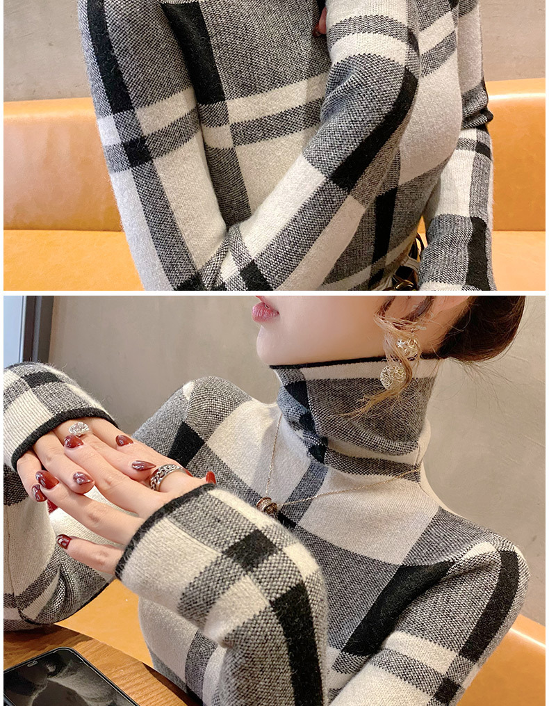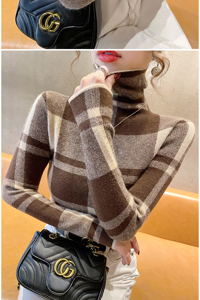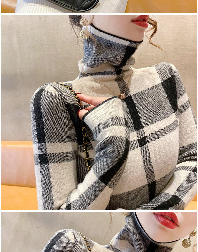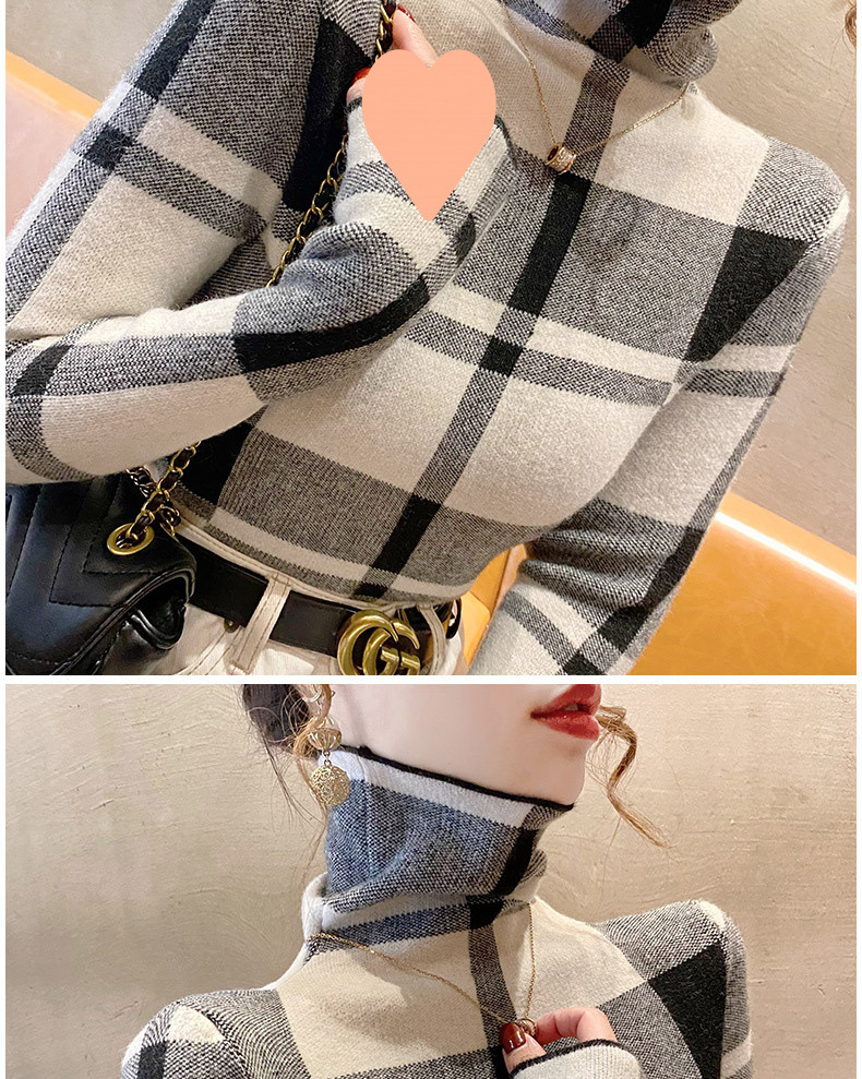 격자 무늬 터틀넥 여성 바닥 셔츠 유행 패션 2024 새로운 가을과 겨울 폭발 여성 내부스토어 가기