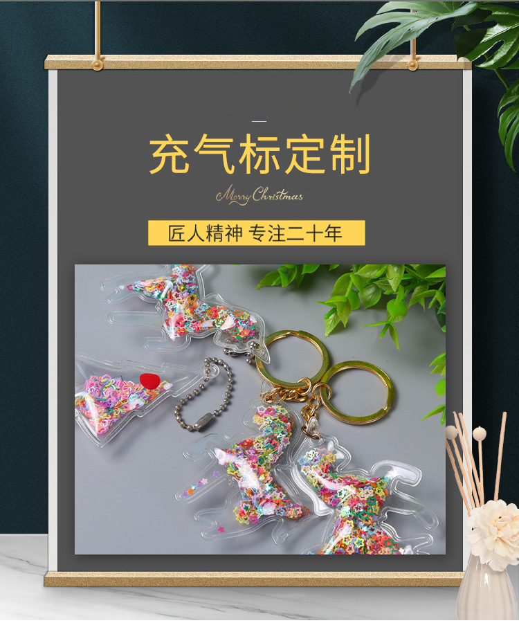맞춤형 투명 PVC 풍선 다운 로고 로고 장식 키 체인 펜던트 만화 스팽글 버블 볼