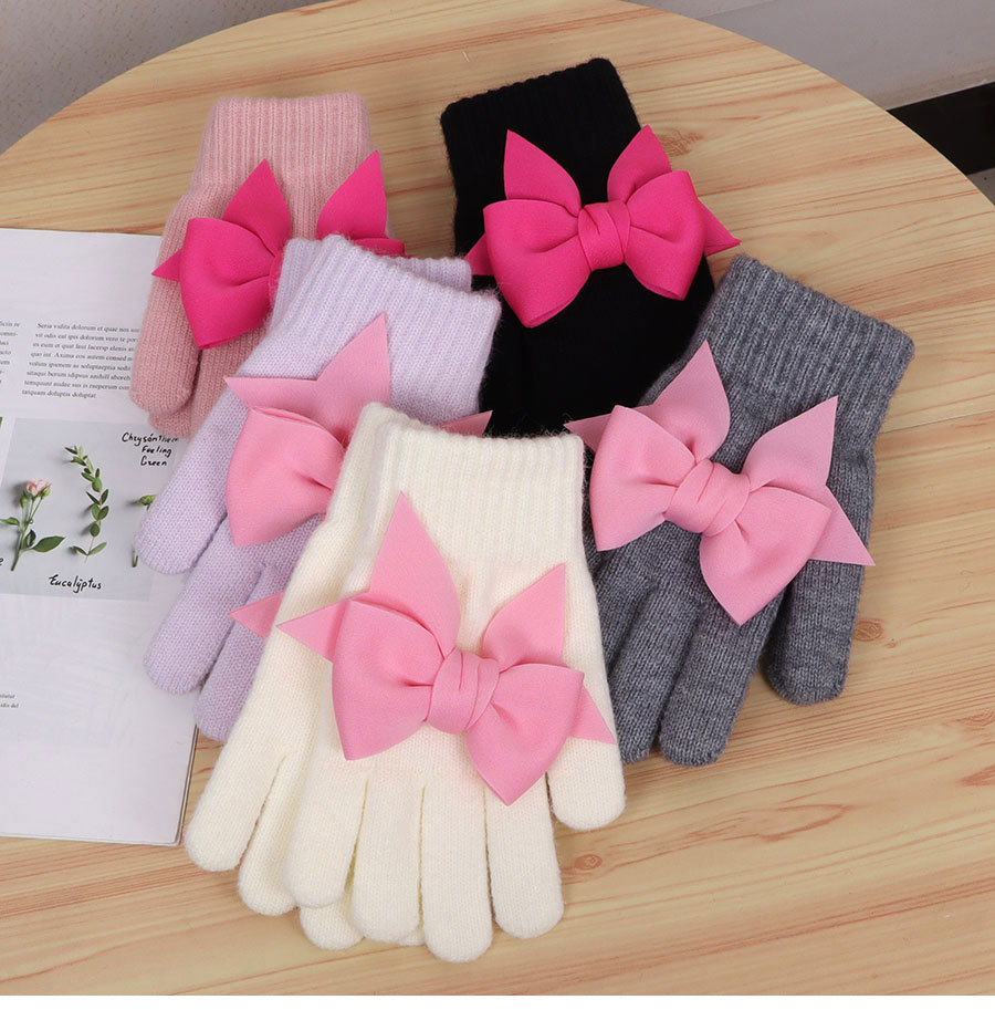 새로운 활 장갑 여성의 겨울 따뜻한 한국식 올 매치 터치 스크린 5 손가락 양모 니트 냉방형 핸드 양말