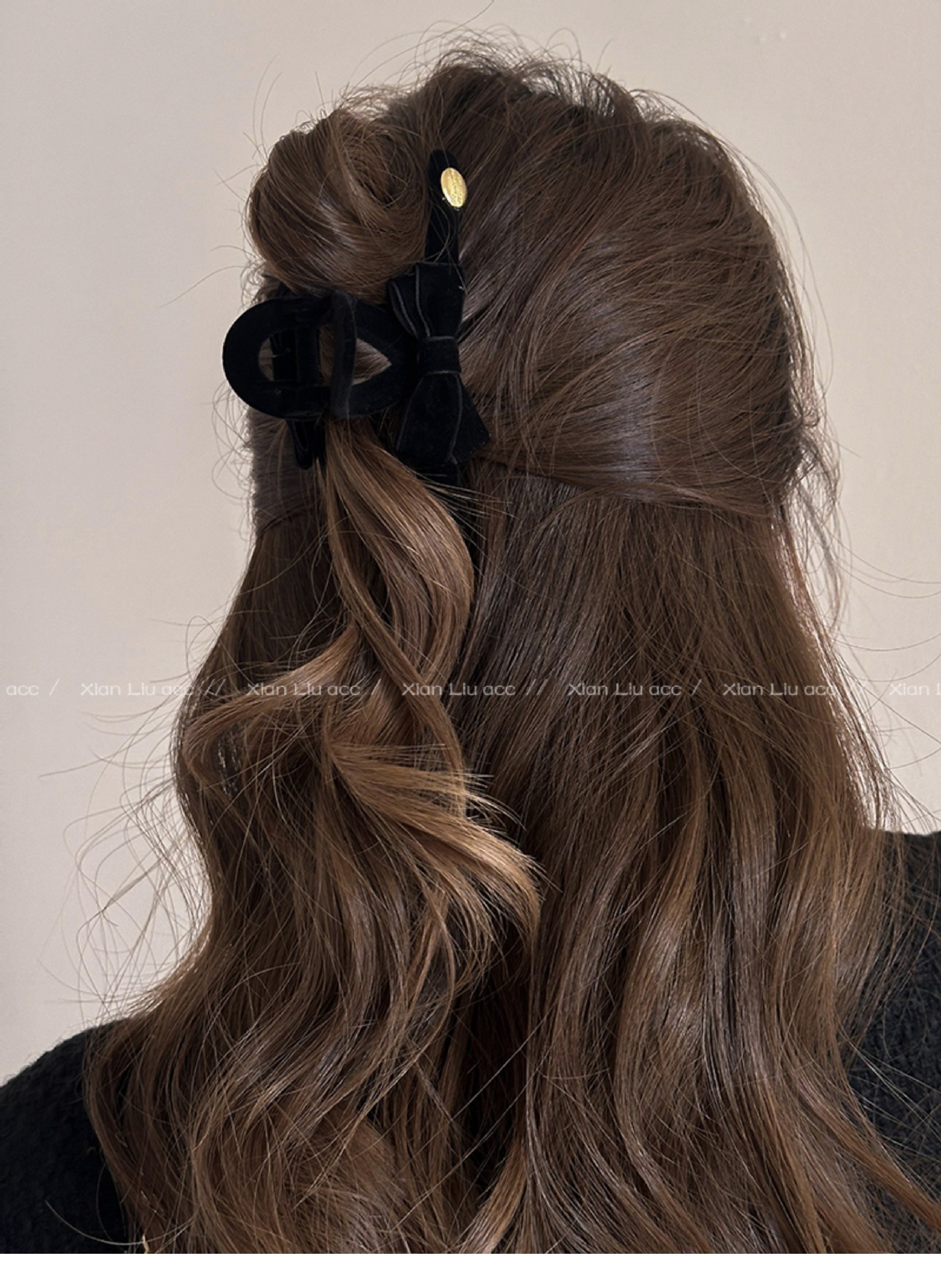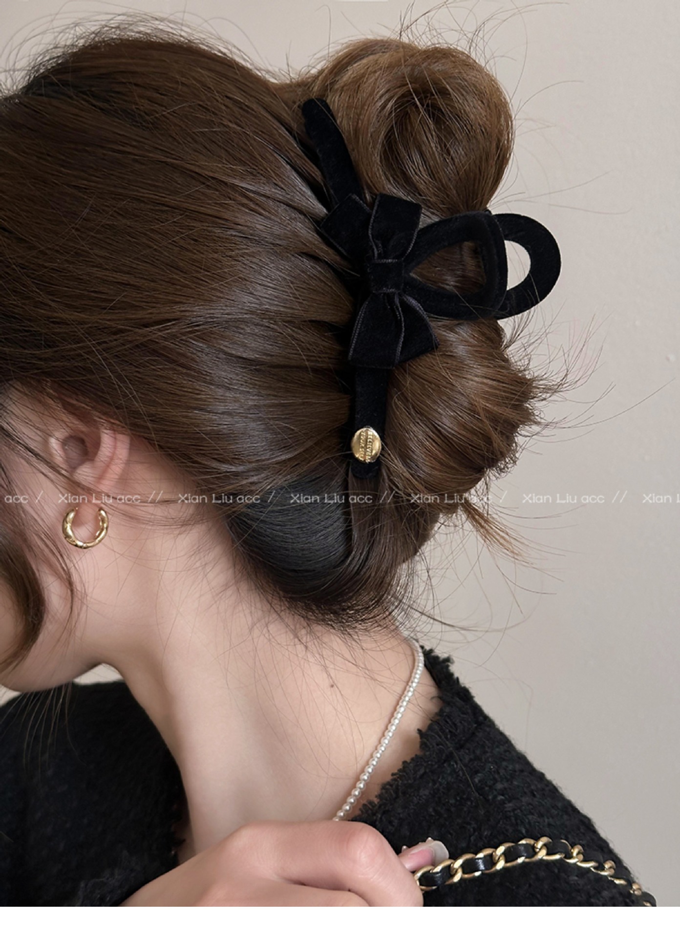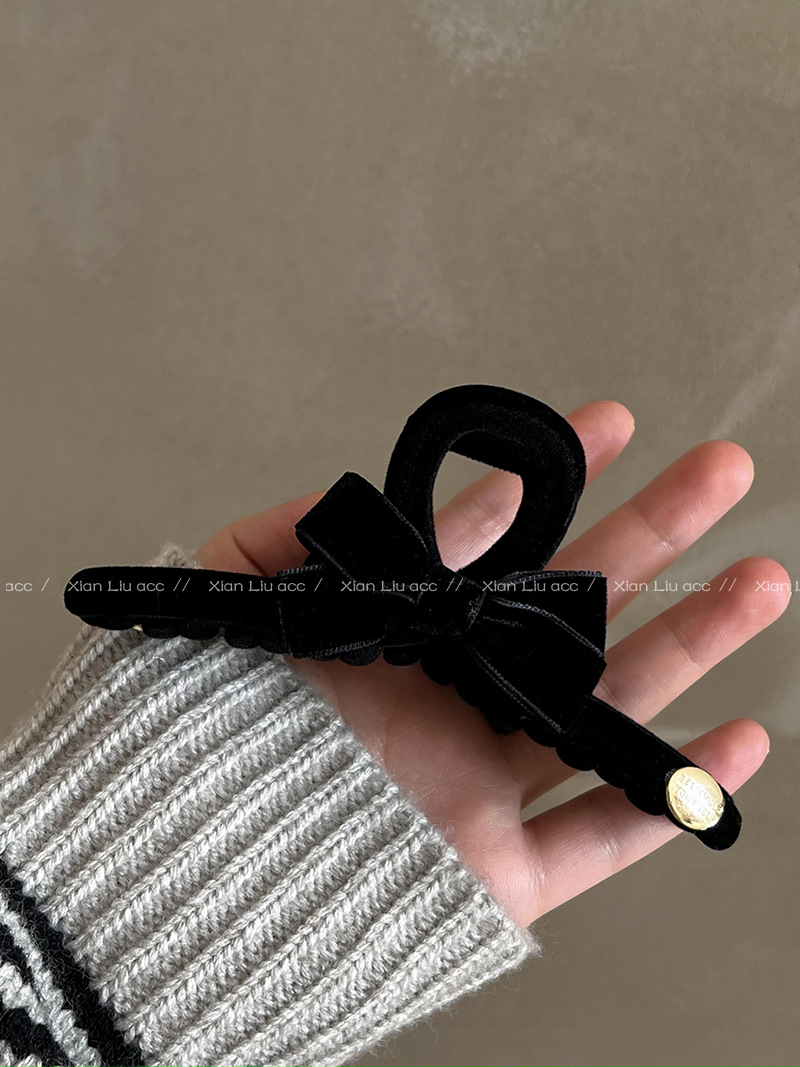 블랙 벨벳 활 그랩 클립 여성의 우아한 등 머리 상어 클립 2024 새로운 하이 엔드 센스 헤어 클립 헤드웨어스토어 가기