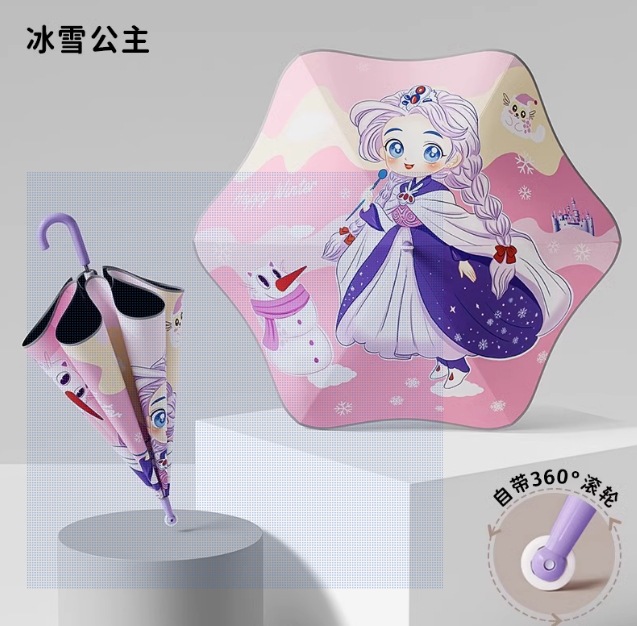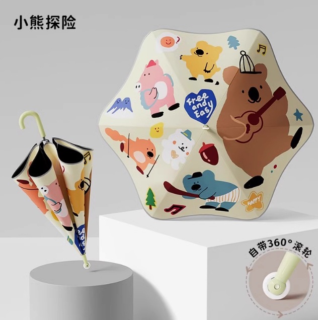 어린이용 둥근 모서리 롤러 긴 손잡이 우산, 남녀 학생용 특수 안전 블랙 글로시 자외선 차단 도매 맞춤 제작스토어 가기