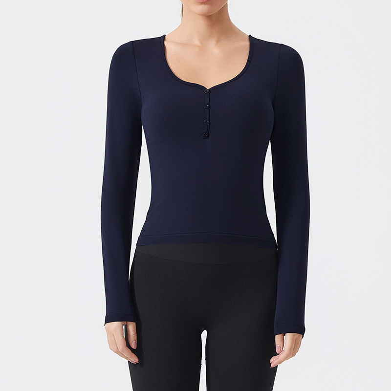 여성용 긴팔 운동복 슬림핏 러닝 티셔츠 타이트 핏 인기 요가복 헨리넥