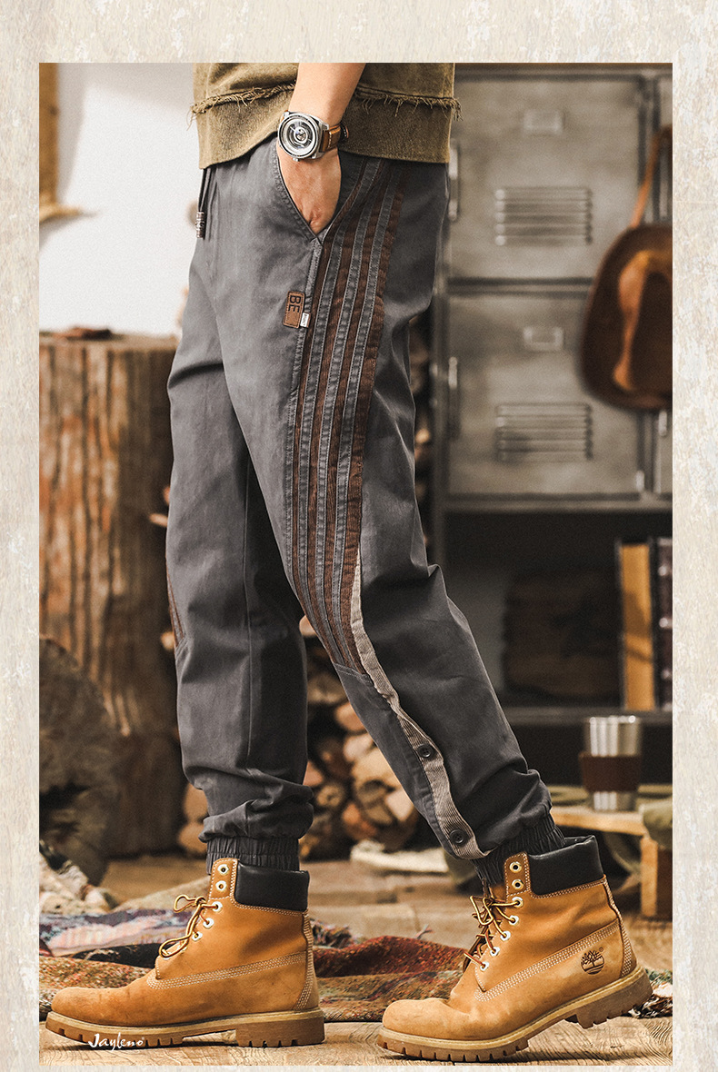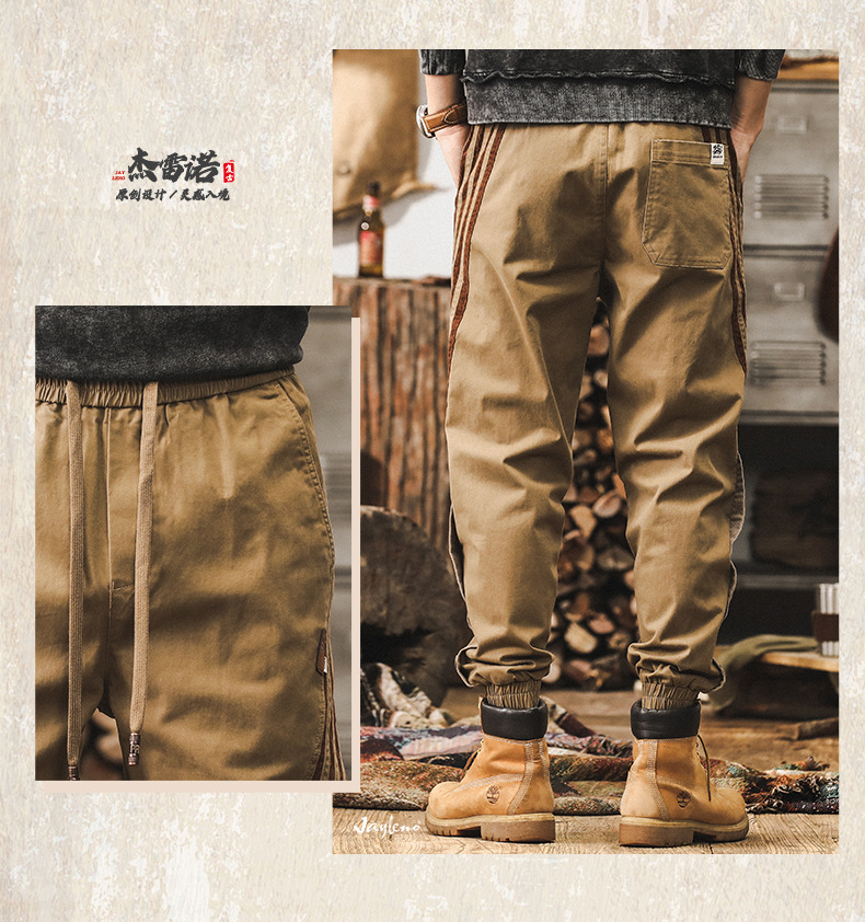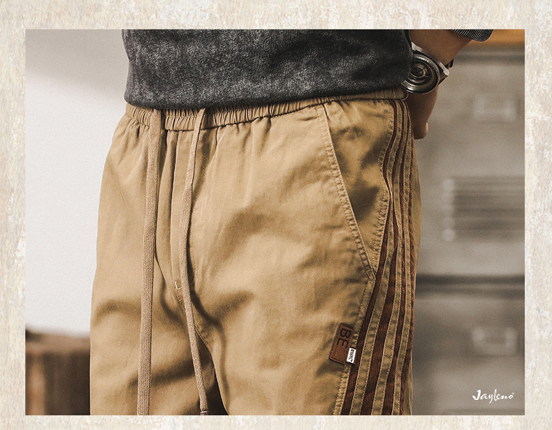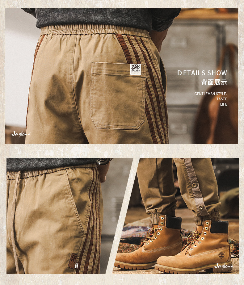 아메리칸 스타일 레트로 스트라이프 바느질 툴링 바지 남성 가을 패션 브랜드 느슨한 카키 다리 남성 캐주얼 바지