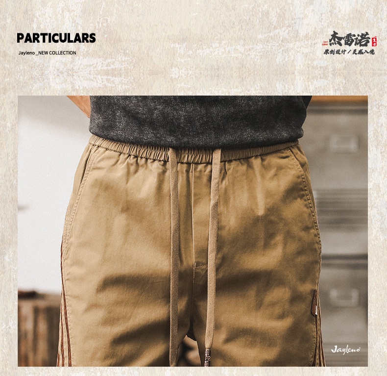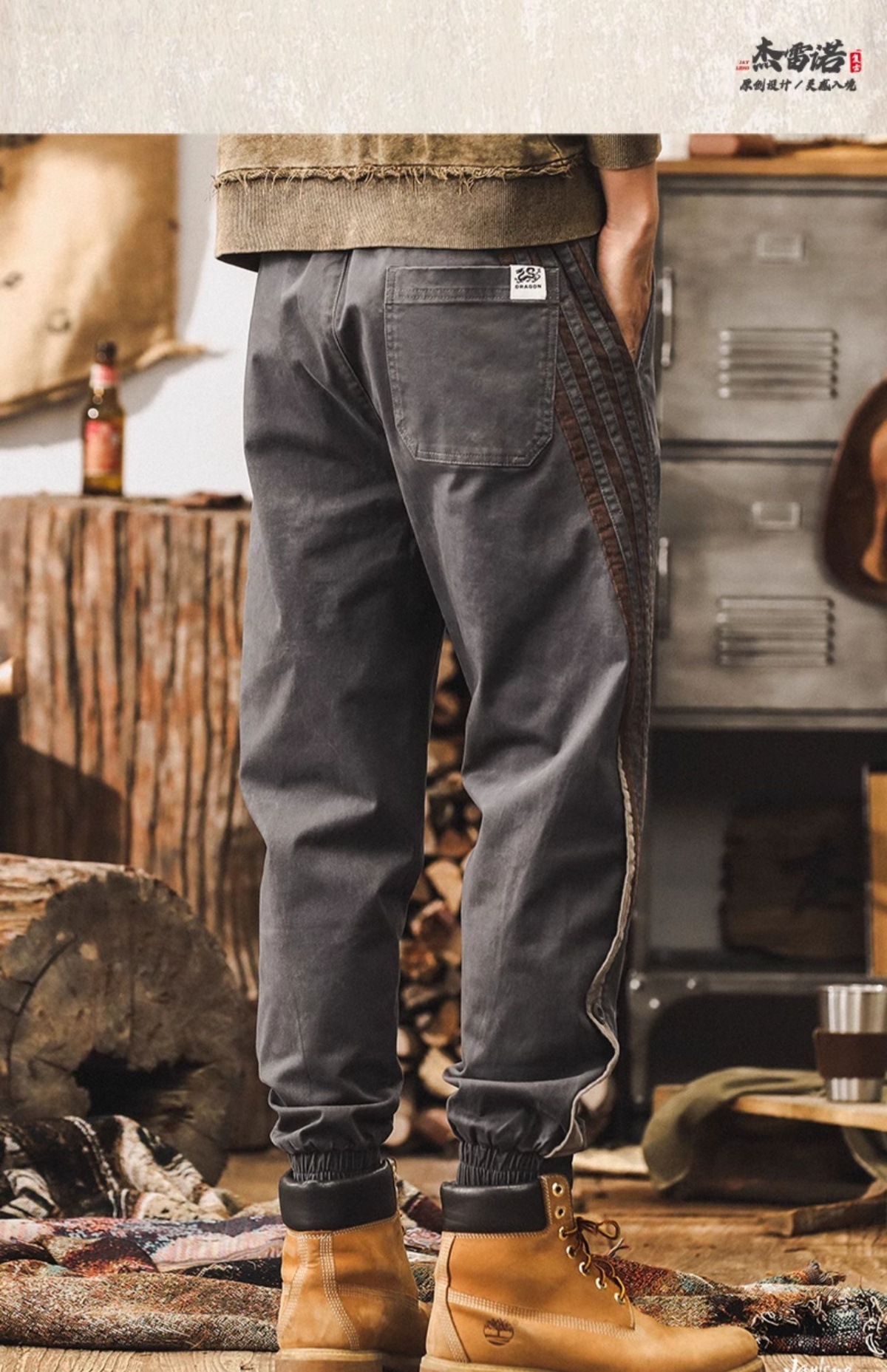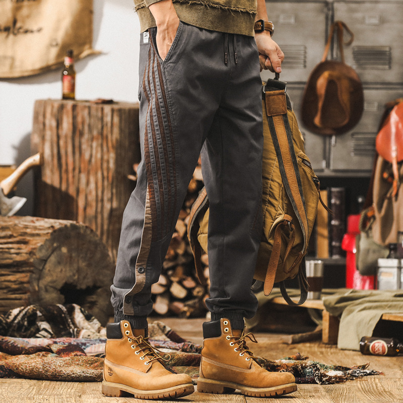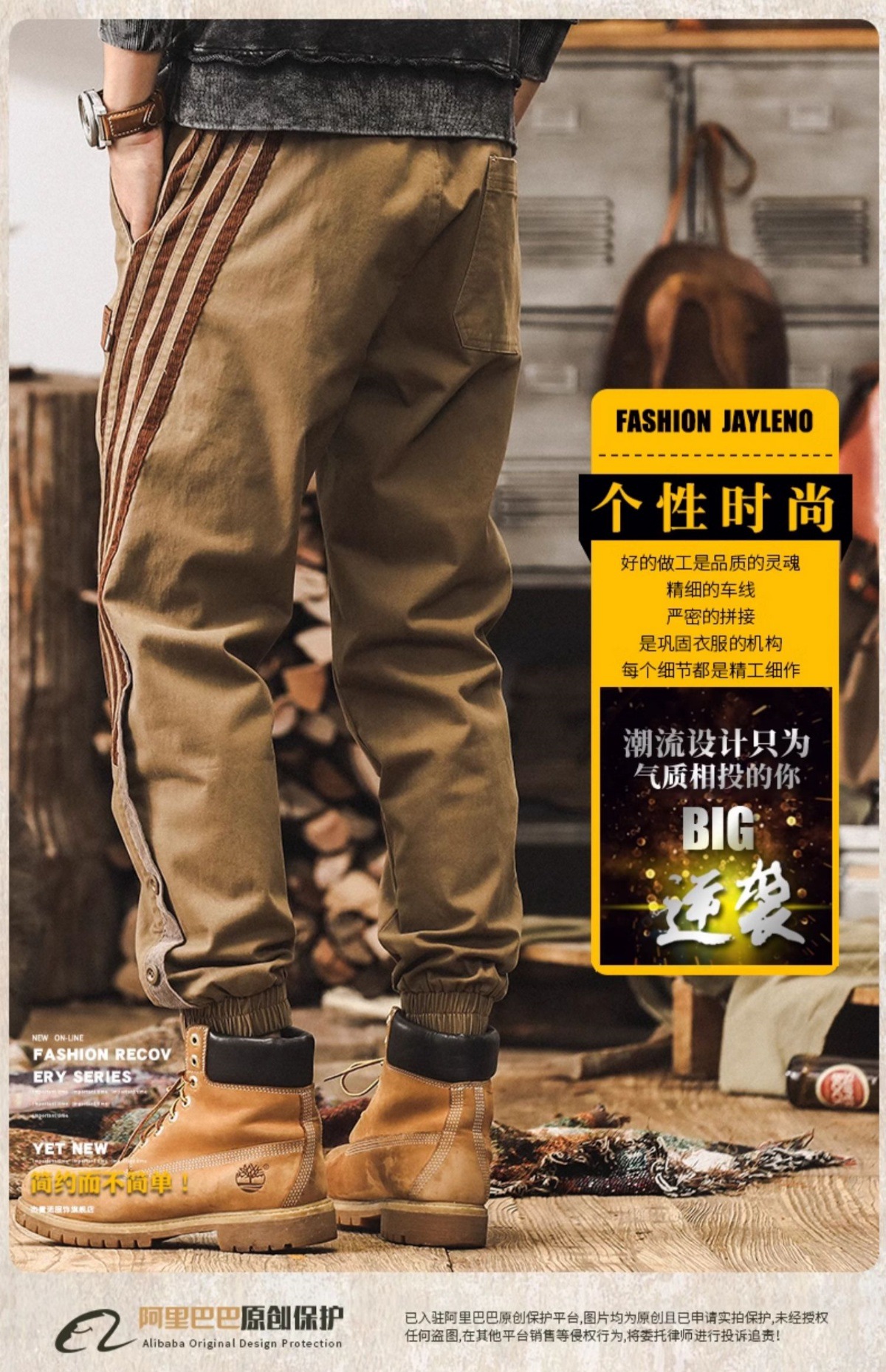 아메리칸 스타일 레트로 스트라이프 바느질 툴링 바지 남성 가을 패션 브랜드 느슨한 카키 다리 남성 캐주얼 바지