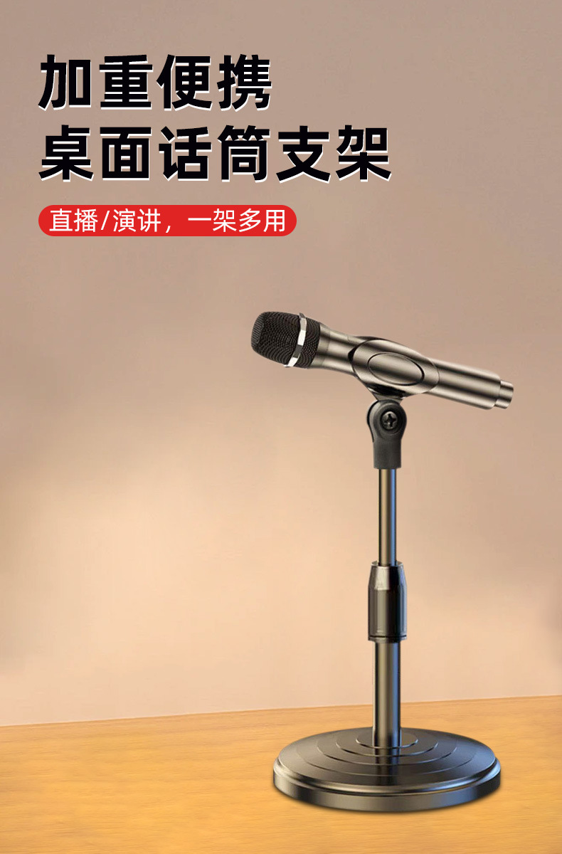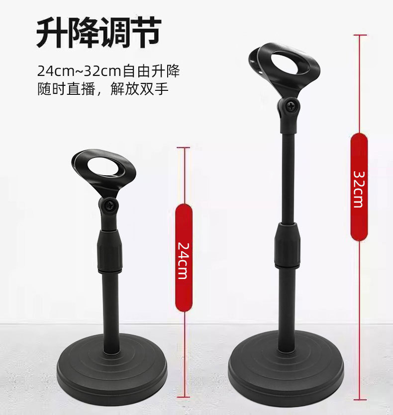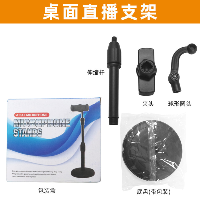 공장 직접 공급 범용 데스크탑 마이크 스탠드 Douyin Kuaishou 라이브 방송 리프팅 가능한 데스크탑 디스크 마이크 스탠드