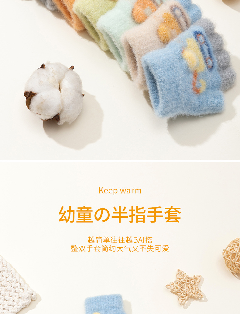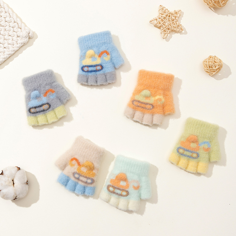 눈 꽃 쇼 아기 반 손가락 장갑 굴삭기 0-3 년 된 아기 겨울 귀여운 5 손가락 감기 방지 따뜻한 장갑