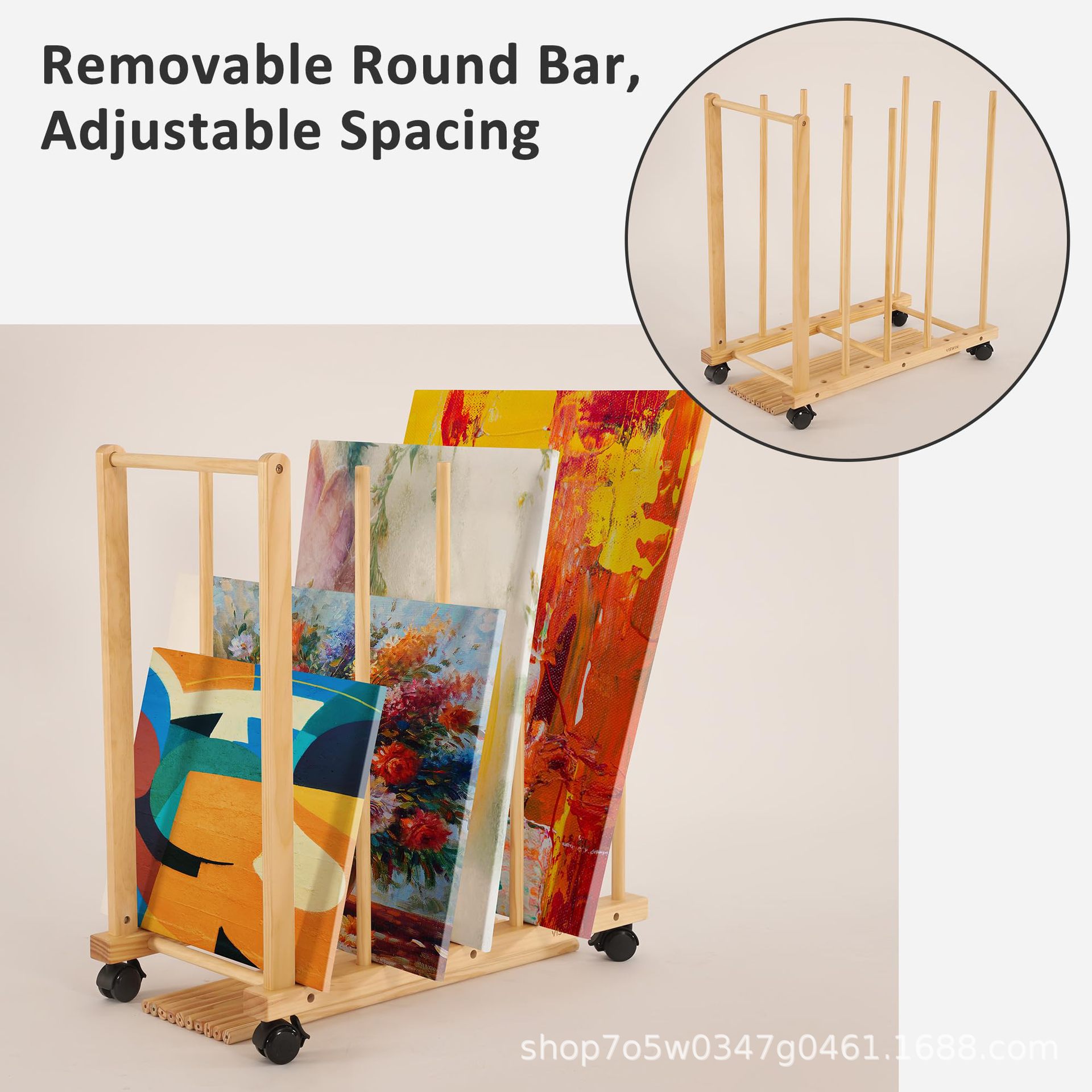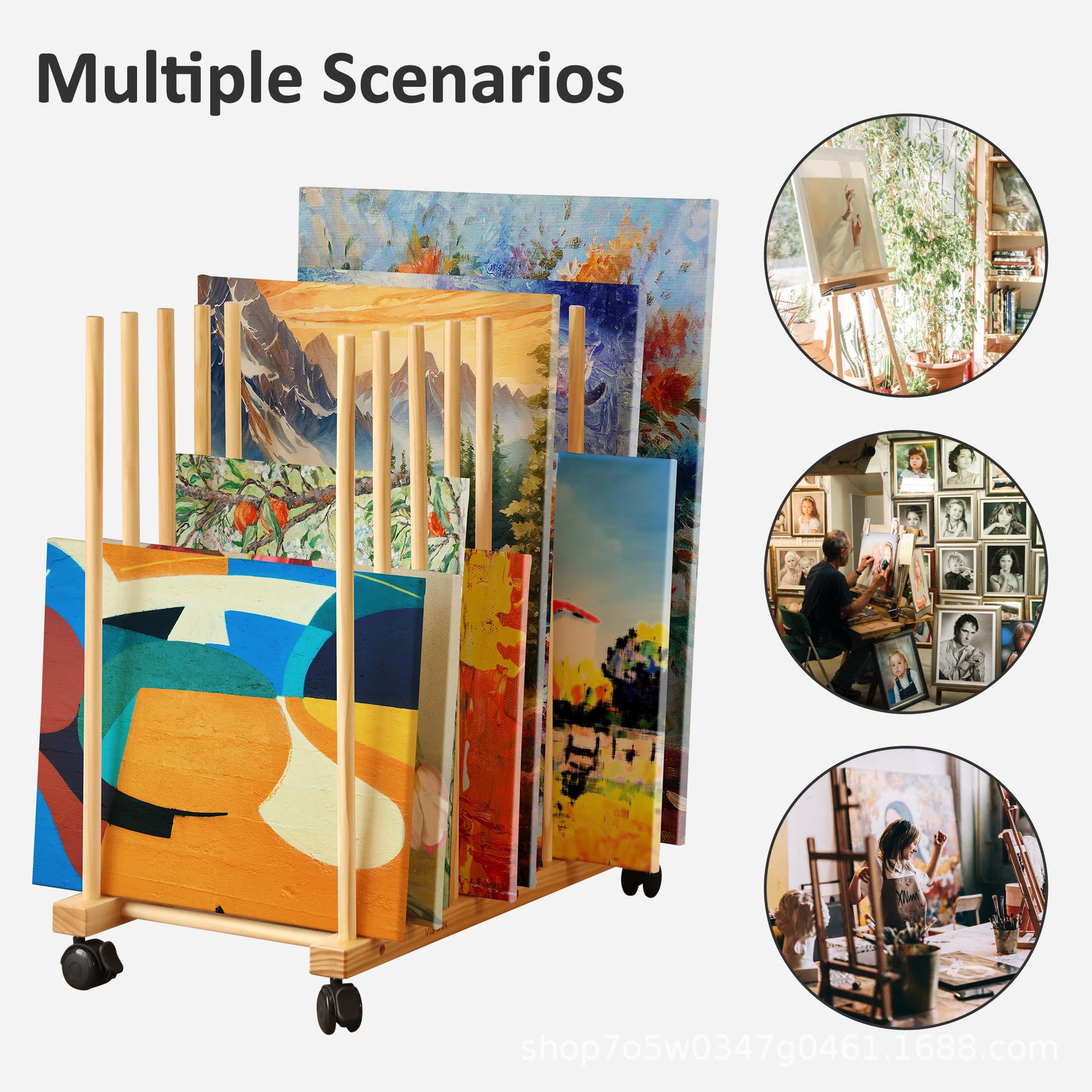 나무 유화 스토리지 랙 캐스터 멀티 그리드 아트 캔버스 페인팅 스토리지 랙 유화 보관 건조 랙스토어 가기