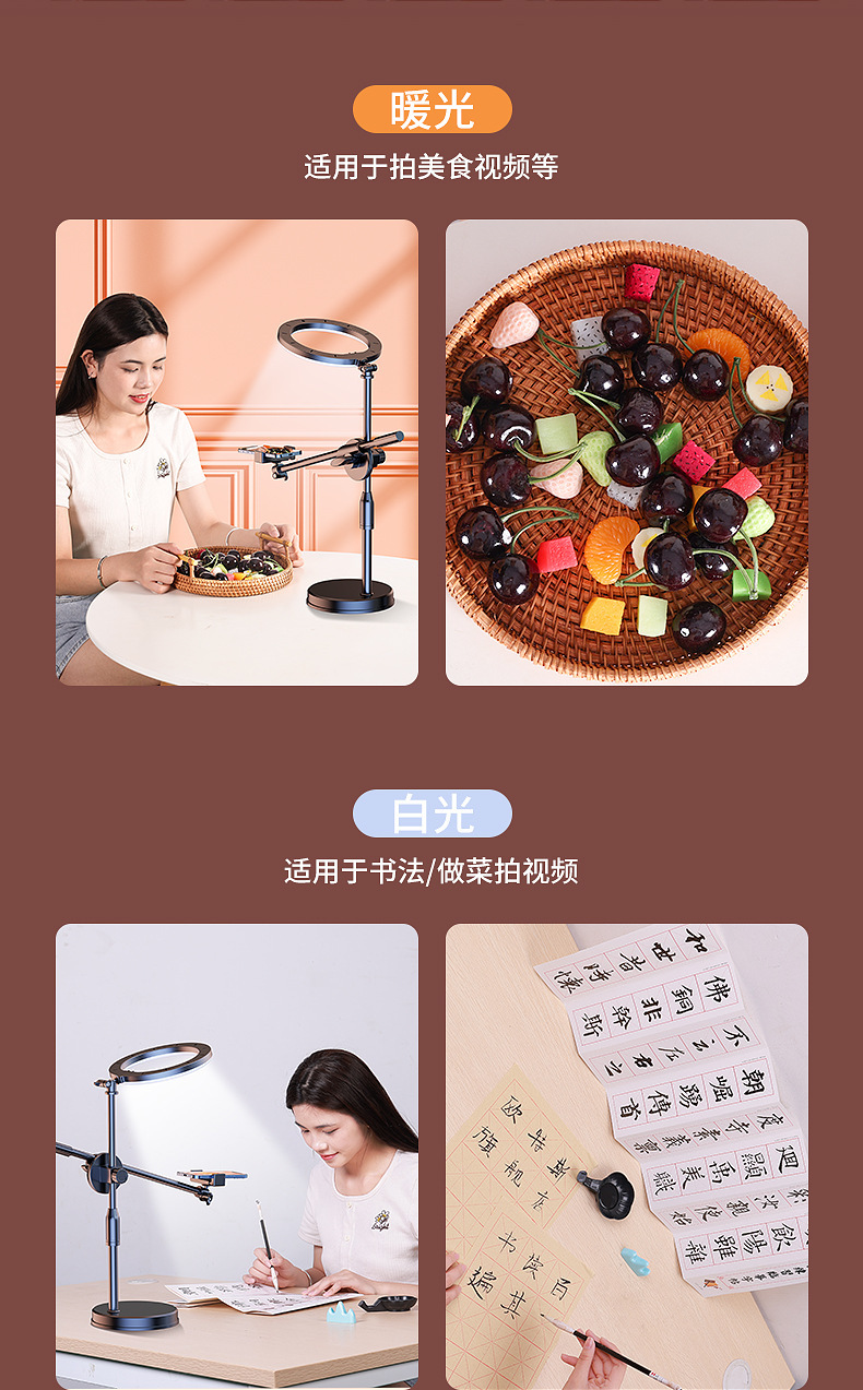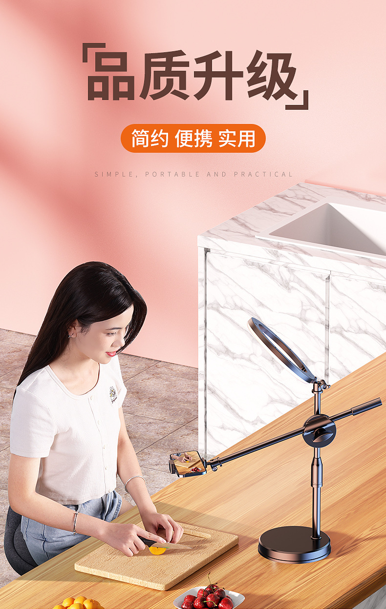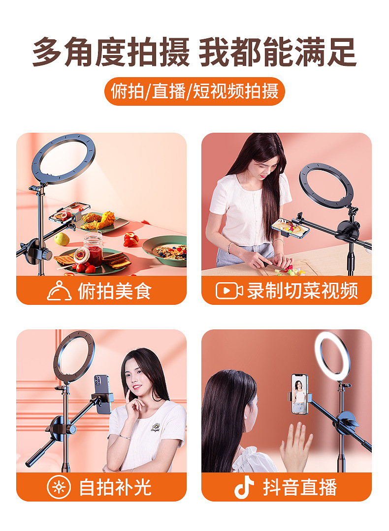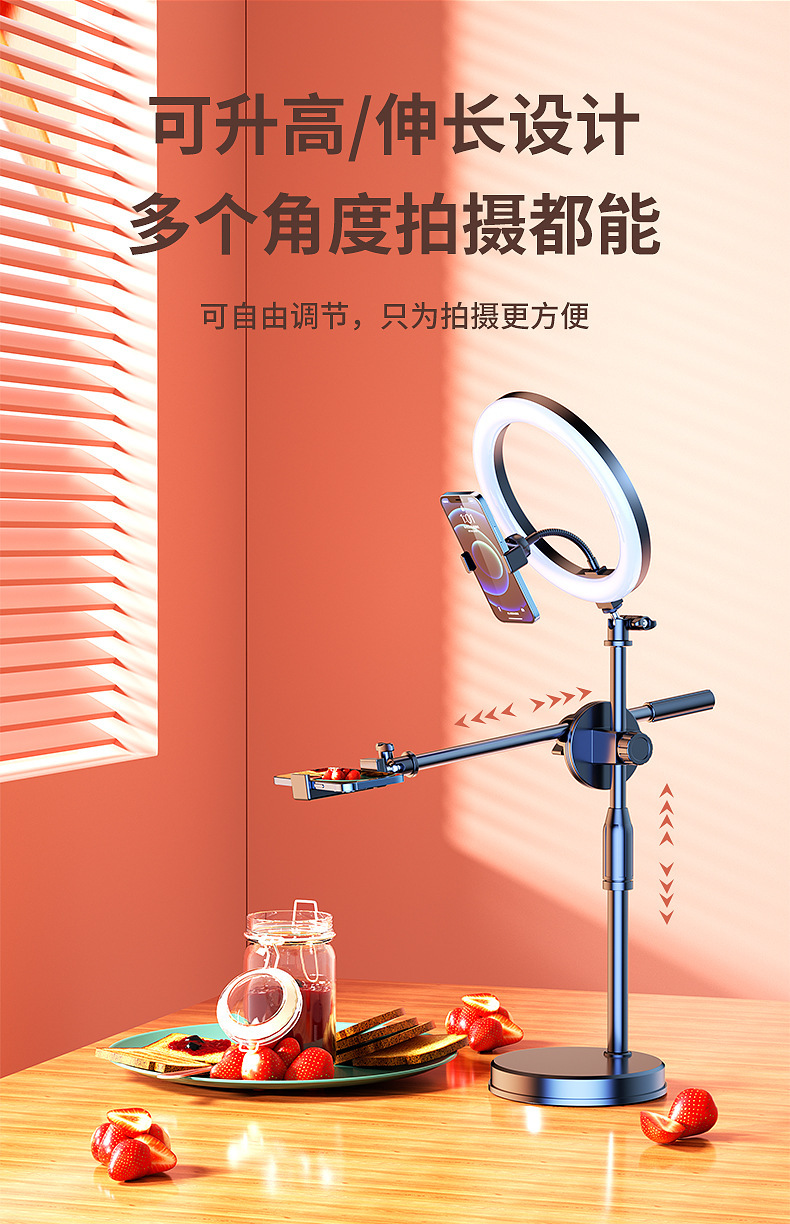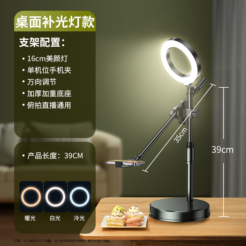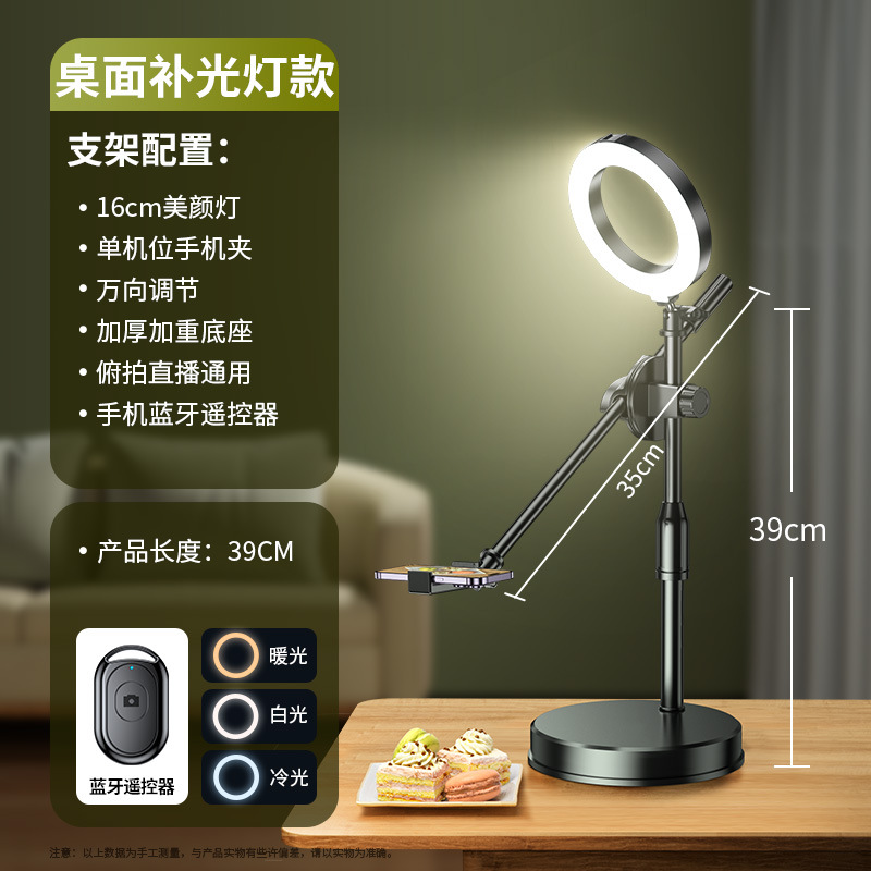 휴대 전화 오버 헤드 촬영 스탠드 미식가 그림 촬영 라이브 방송 스탠드 개폐식 듀얼 머신 데스크탑 휴대 전화 스탠드 보충 조명