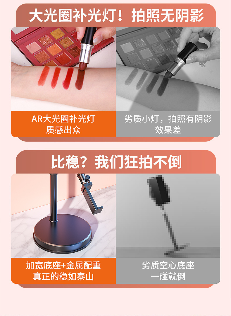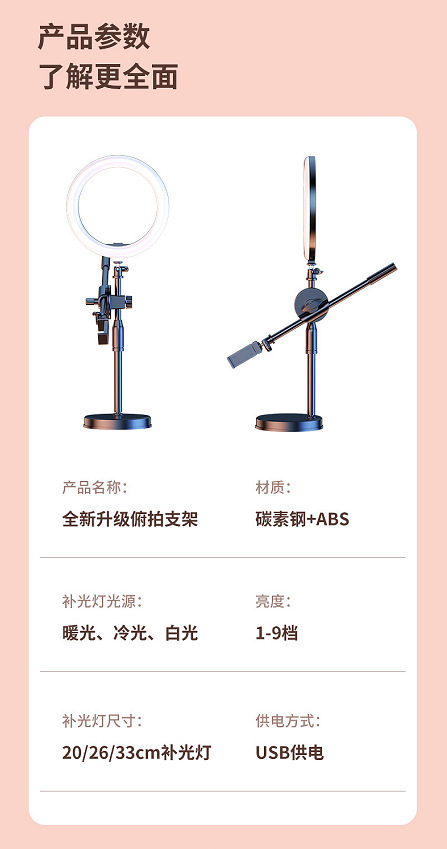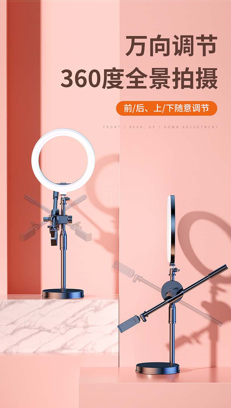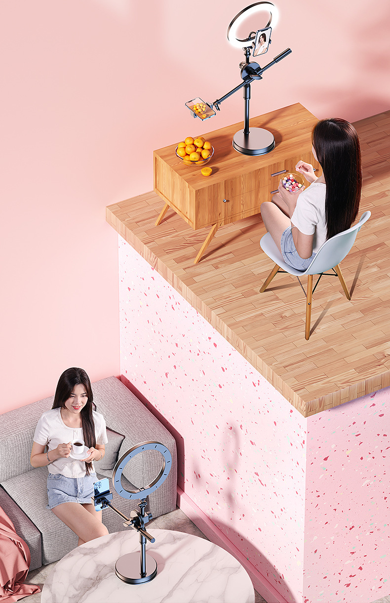 • 가중 베이스 [26cm 뷰티 램프 + 듀얼 카메라 위치] 범용 회전 오버헤드 샷