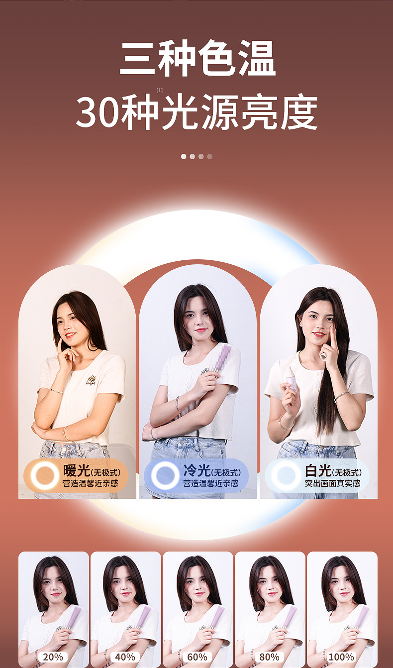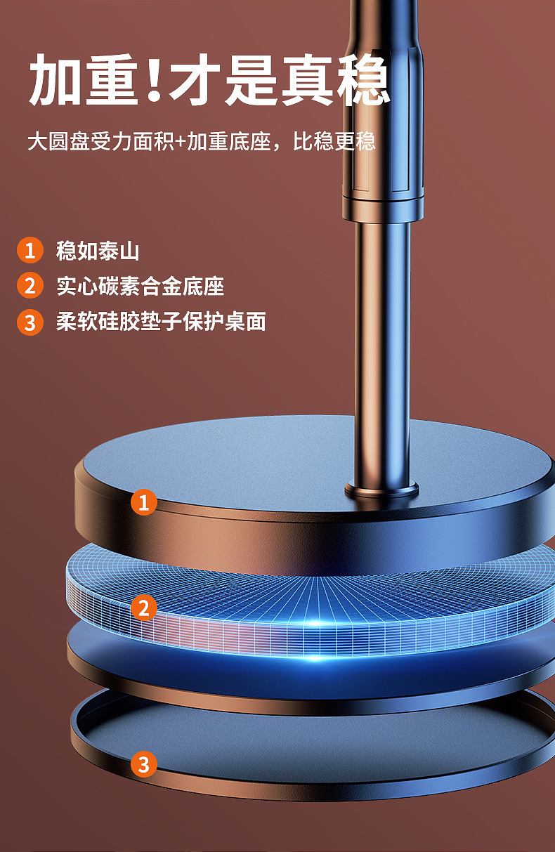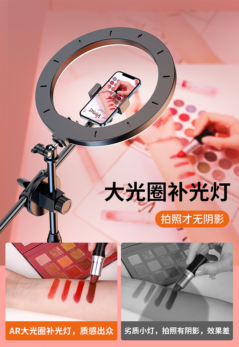 • 가중 베이스 [26cm 뷰티 램프 + 듀얼 카메라 위치] 범용 회전 오버헤드 샷