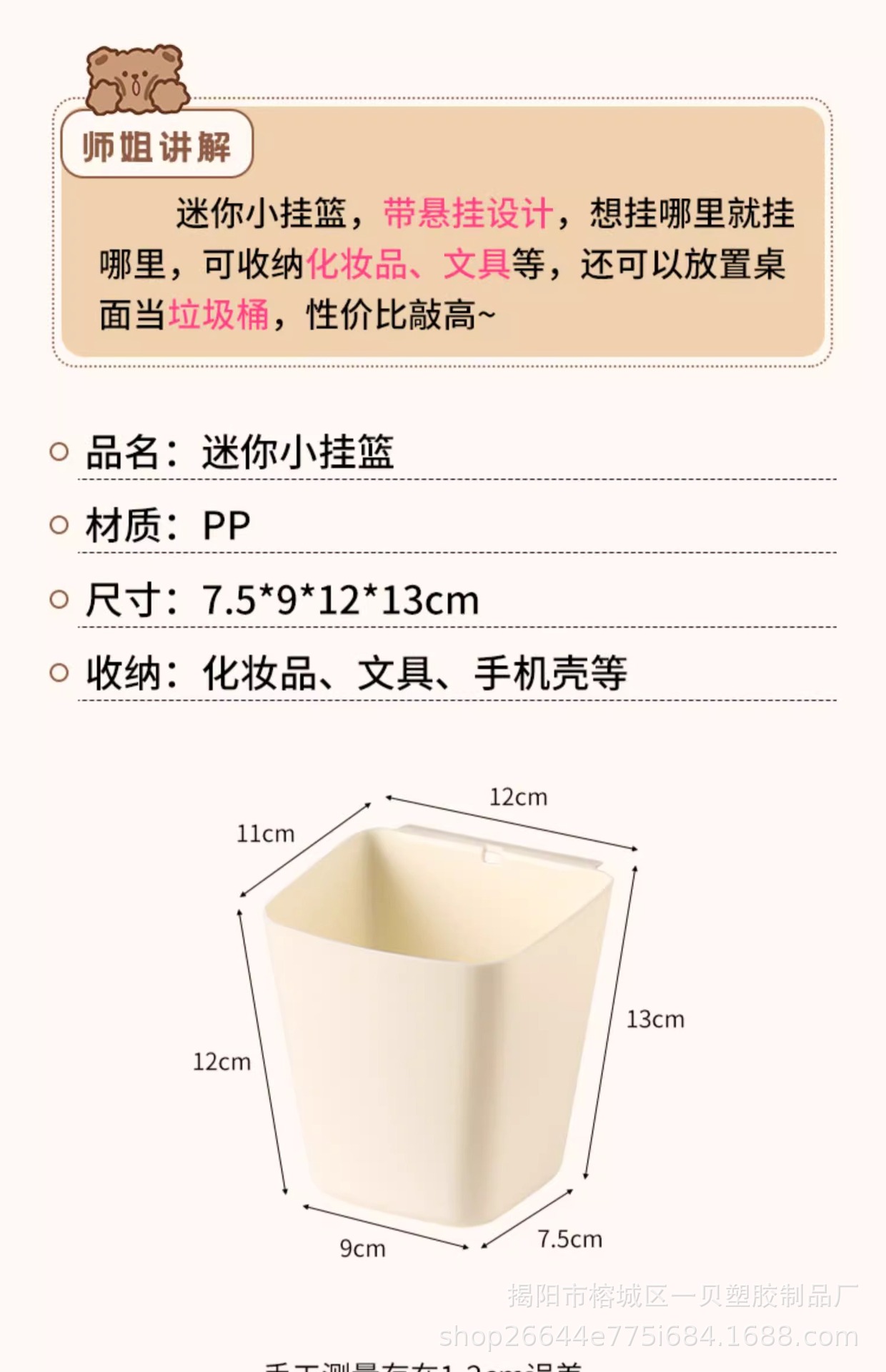 테이블 사이드 트롤리 교수형 바구니 기숙사 데스크탑 교수형 뷰티 자동차 보관 상자 교수형 튜브 데스크 펜 스토리지 버킷