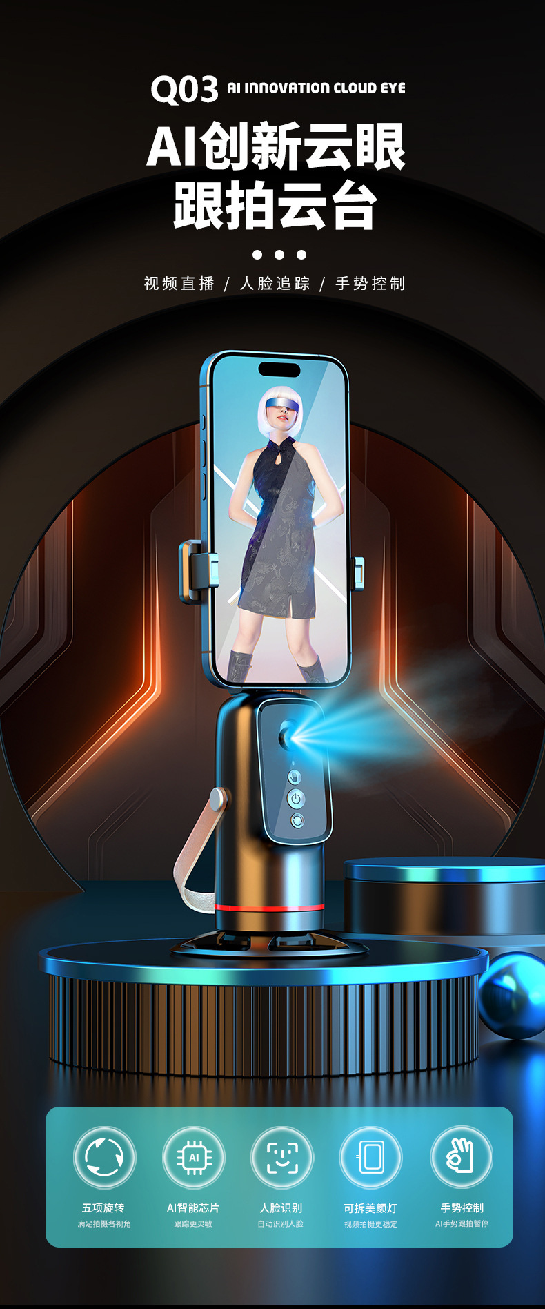 새로운 Q03 휴대 전화 후속 PTZ 360 도 회전 AI 얼굴 인식 라이브 추적 촬영 휴대 전화 브래킷스토어 가기