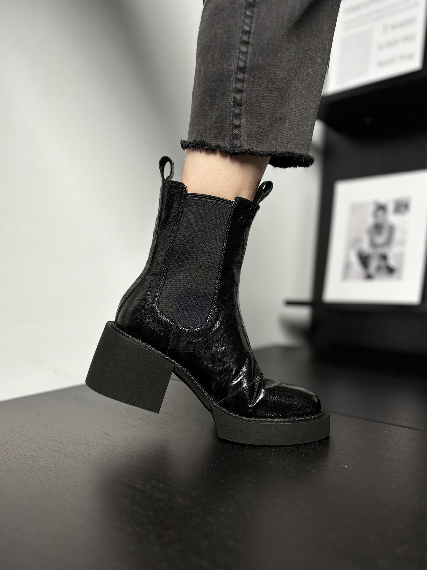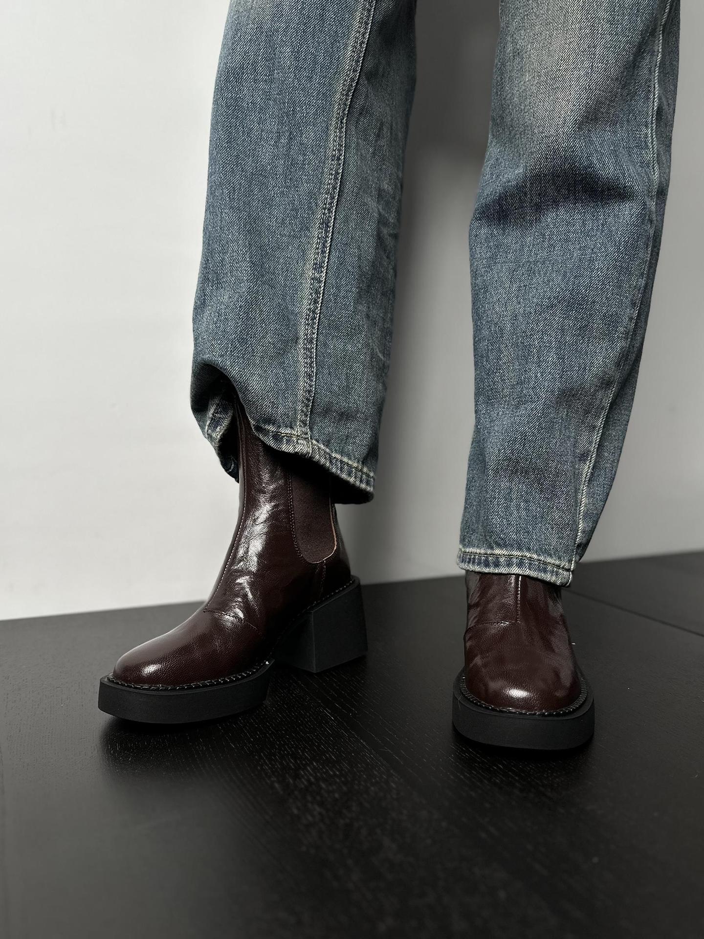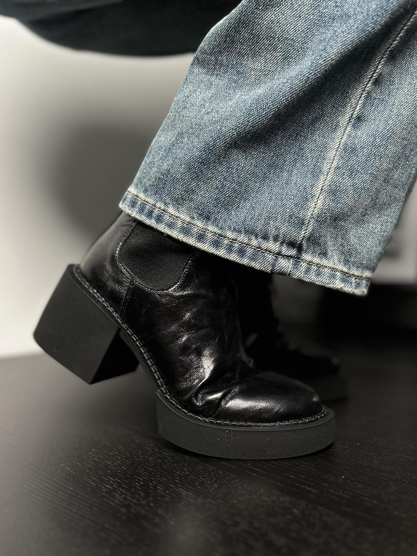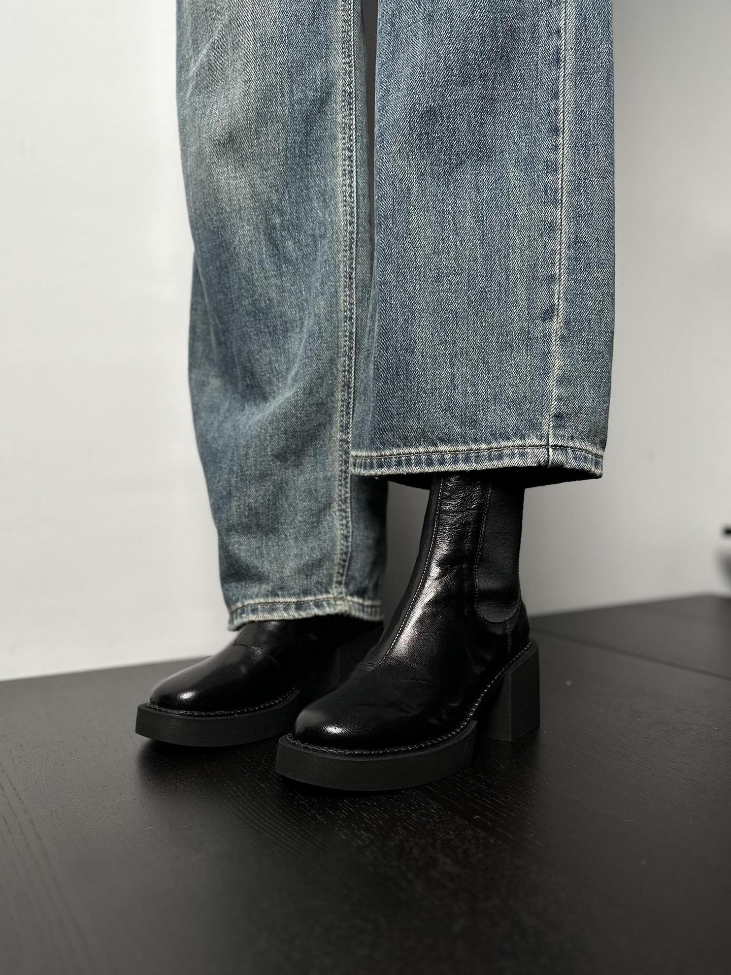 나이 파이 두꺼운 힐 발목 부츠 여자 하이힐 첼시 부츠 짧은 2024 가을 새 스타일 작은 높이 두꺼운 바닥 부츠스토어 가기