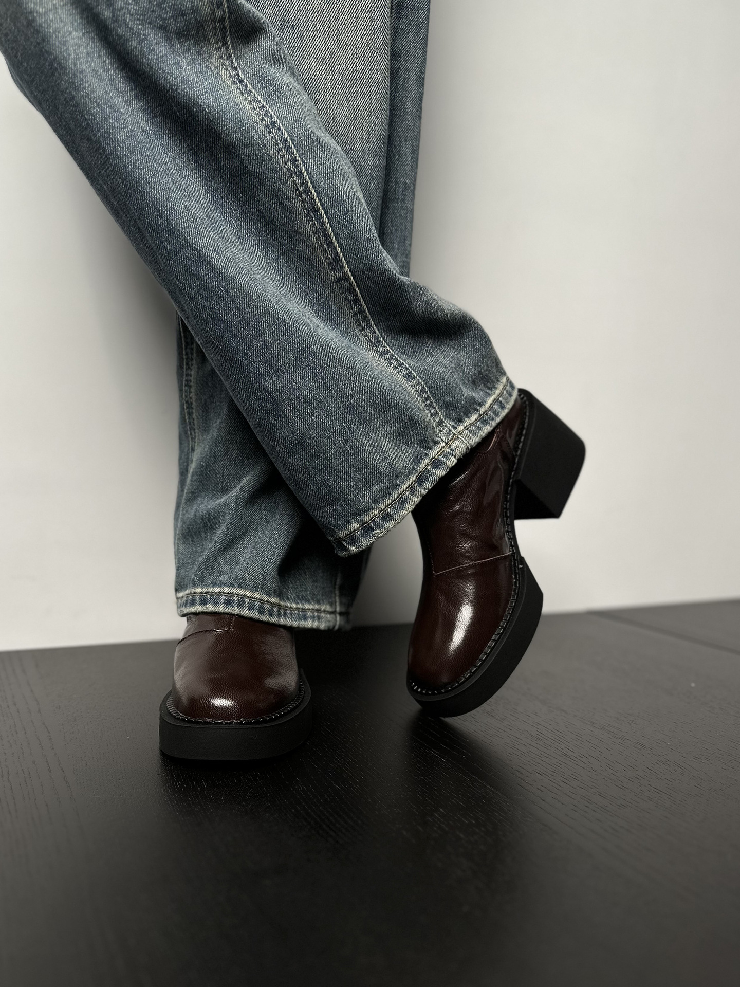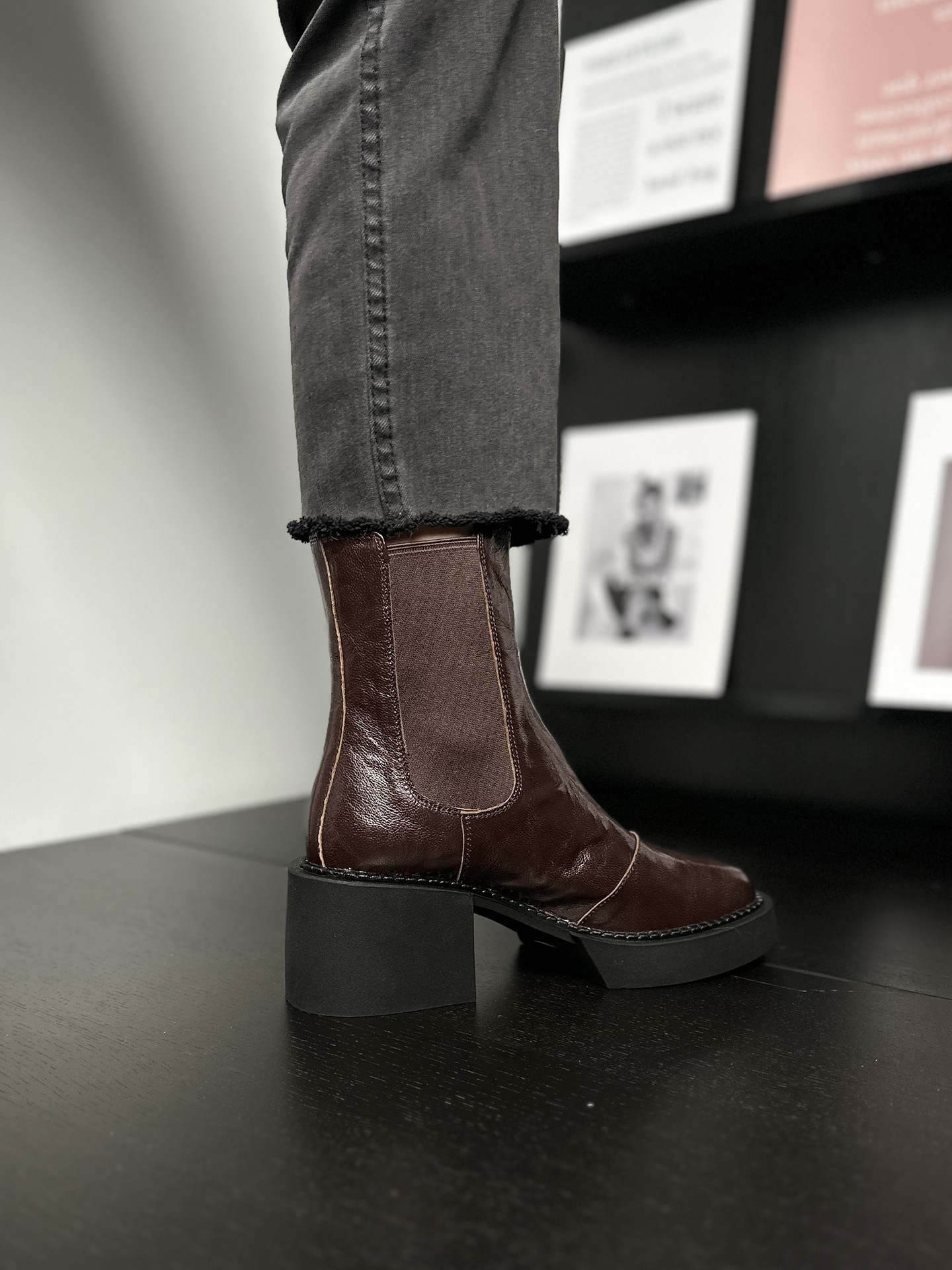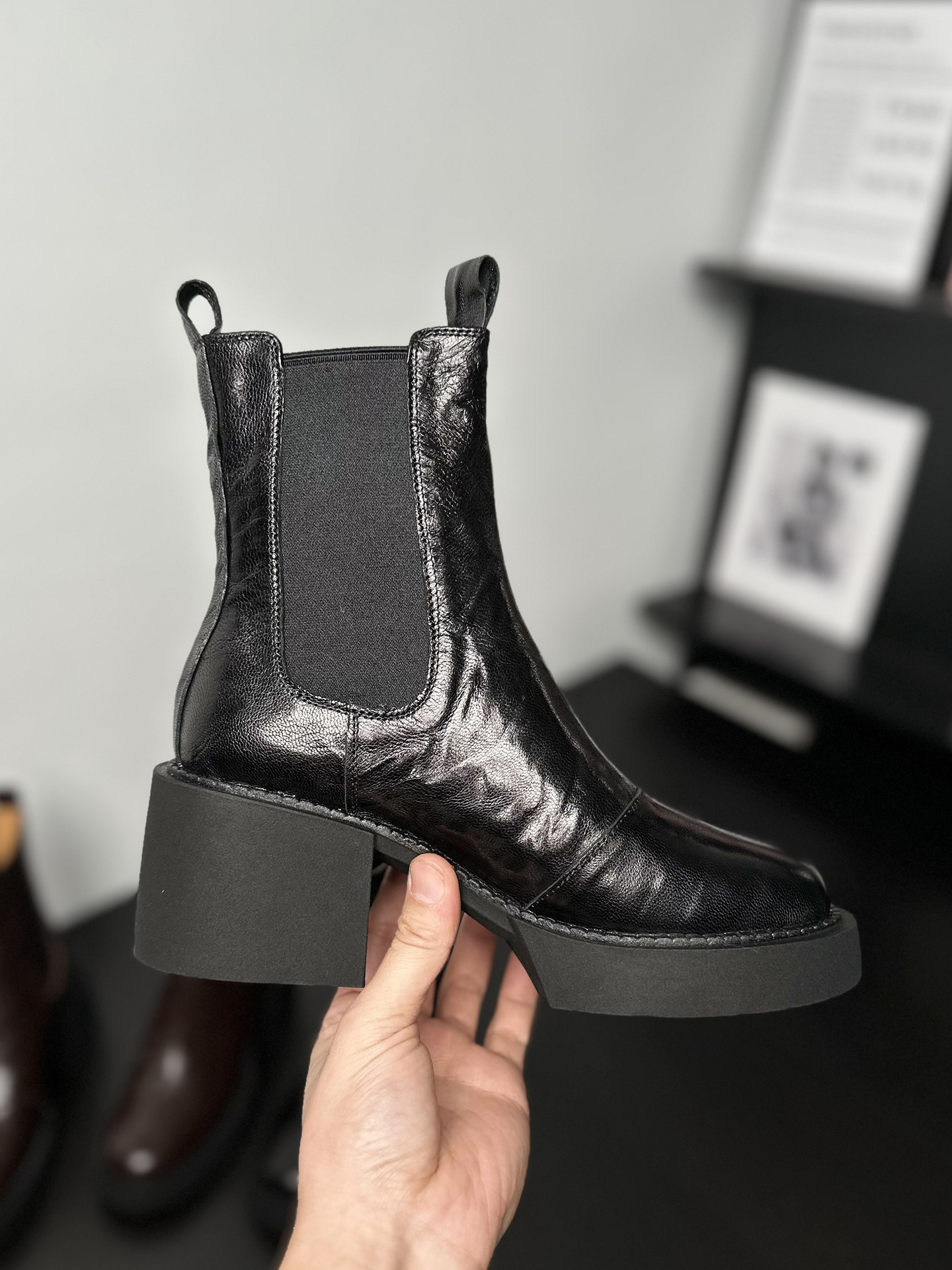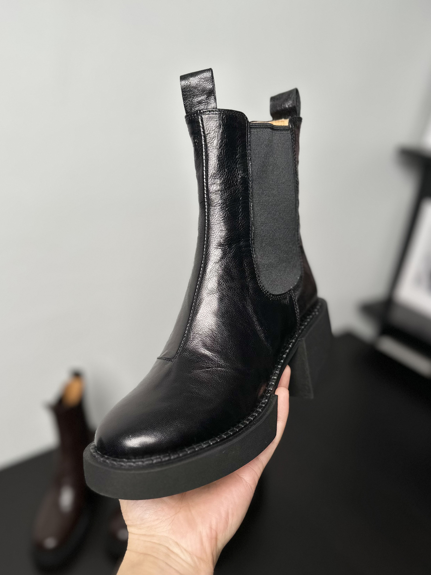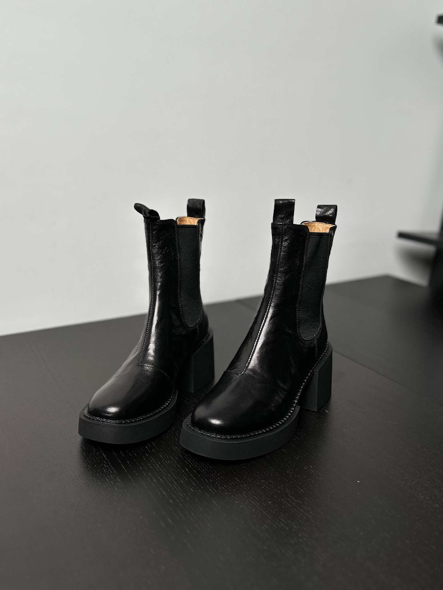 나이 파이 두꺼운 힐 발목 부츠 여자 하이힐 첼시 부츠 짧은 2024 가을 새 스타일 작은 높이 두꺼운 바닥 부츠스토어 가기