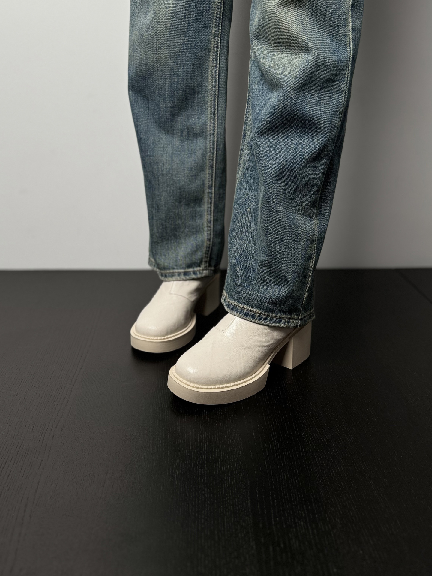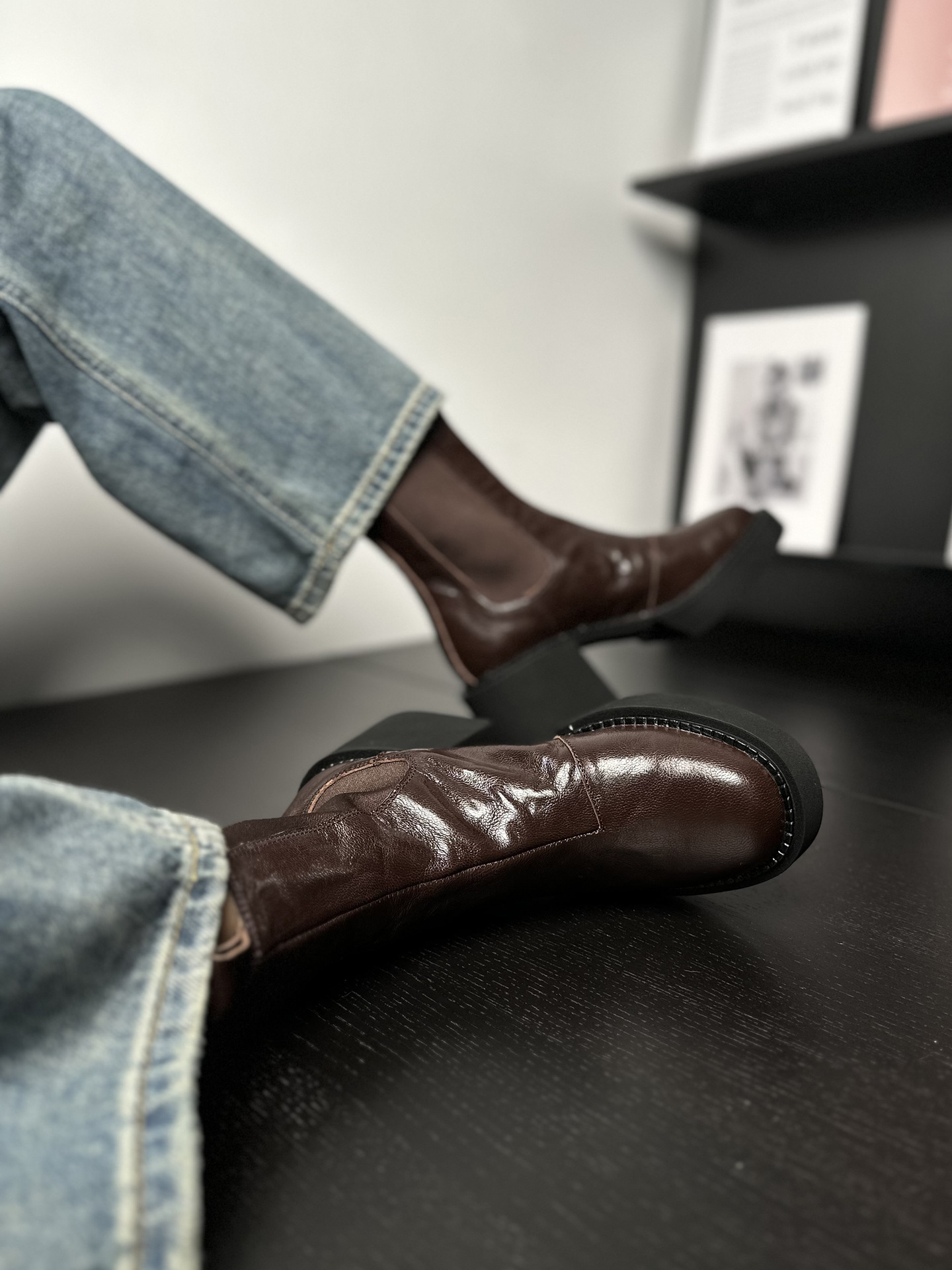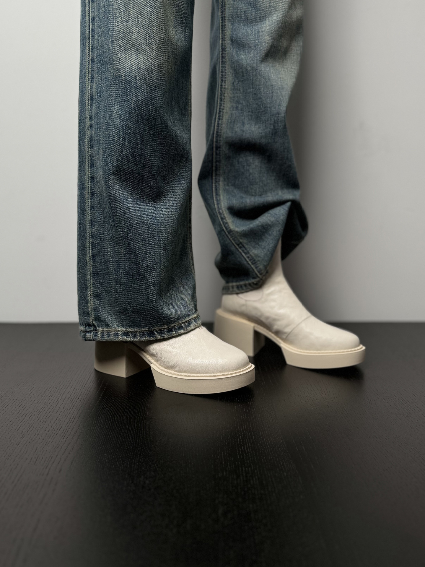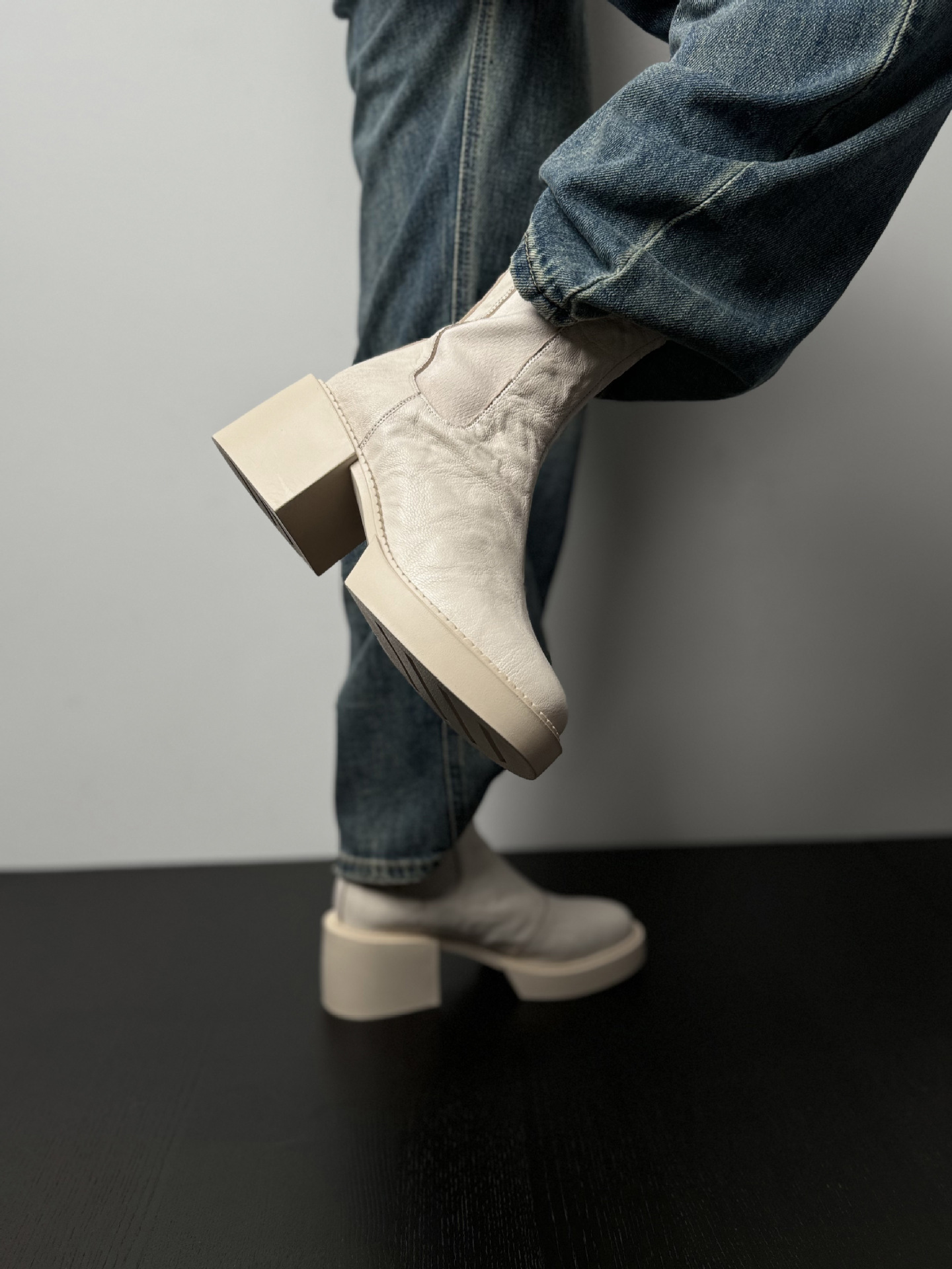 나이 파이 두꺼운 힐 발목 부츠 여자 하이힐 첼시 부츠 짧은 2024 가을 새 스타일 작은 높이 두꺼운 바닥 부츠스토어 가기